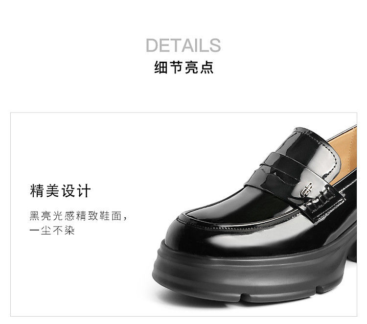 百丽女鞋厚底JK乐福鞋女春夏开口笑深口单鞋子 633114