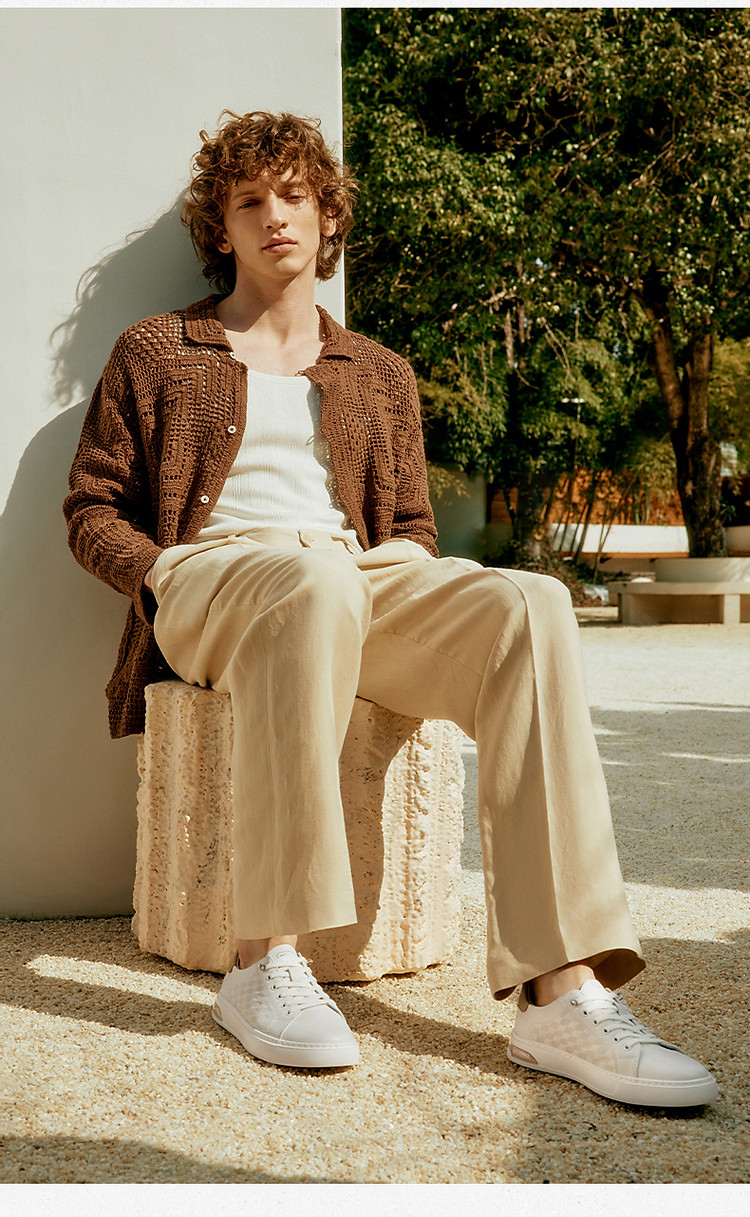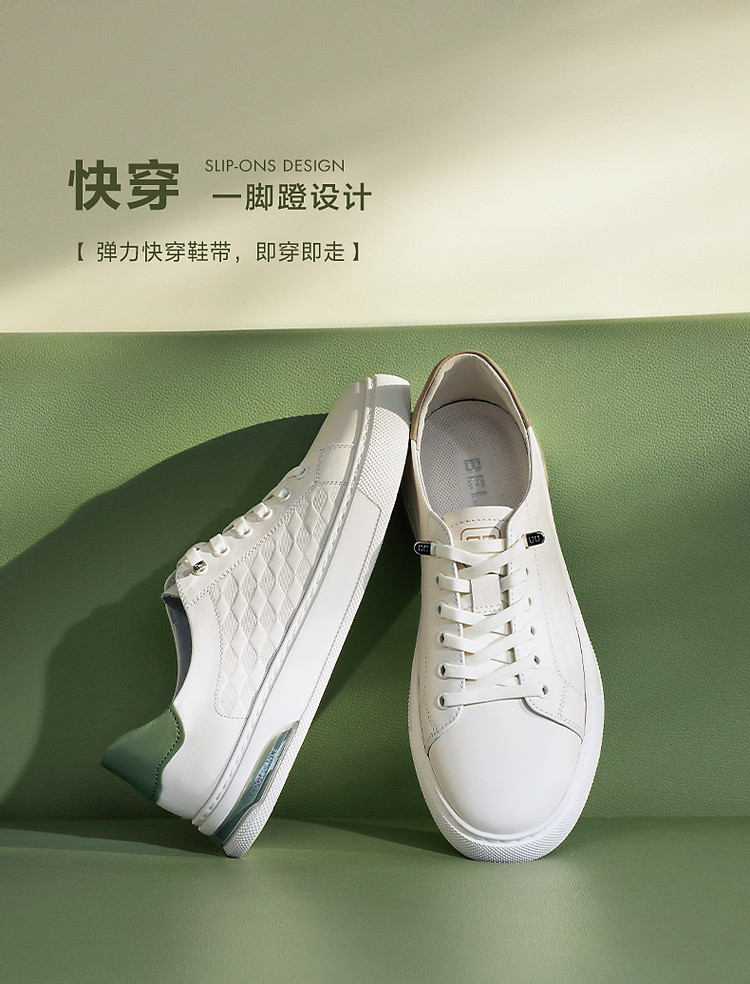 商品名称:百丽男鞋真皮印花低帮小白鞋夏季款轻便一脚蹬休闲板鞋子 673434