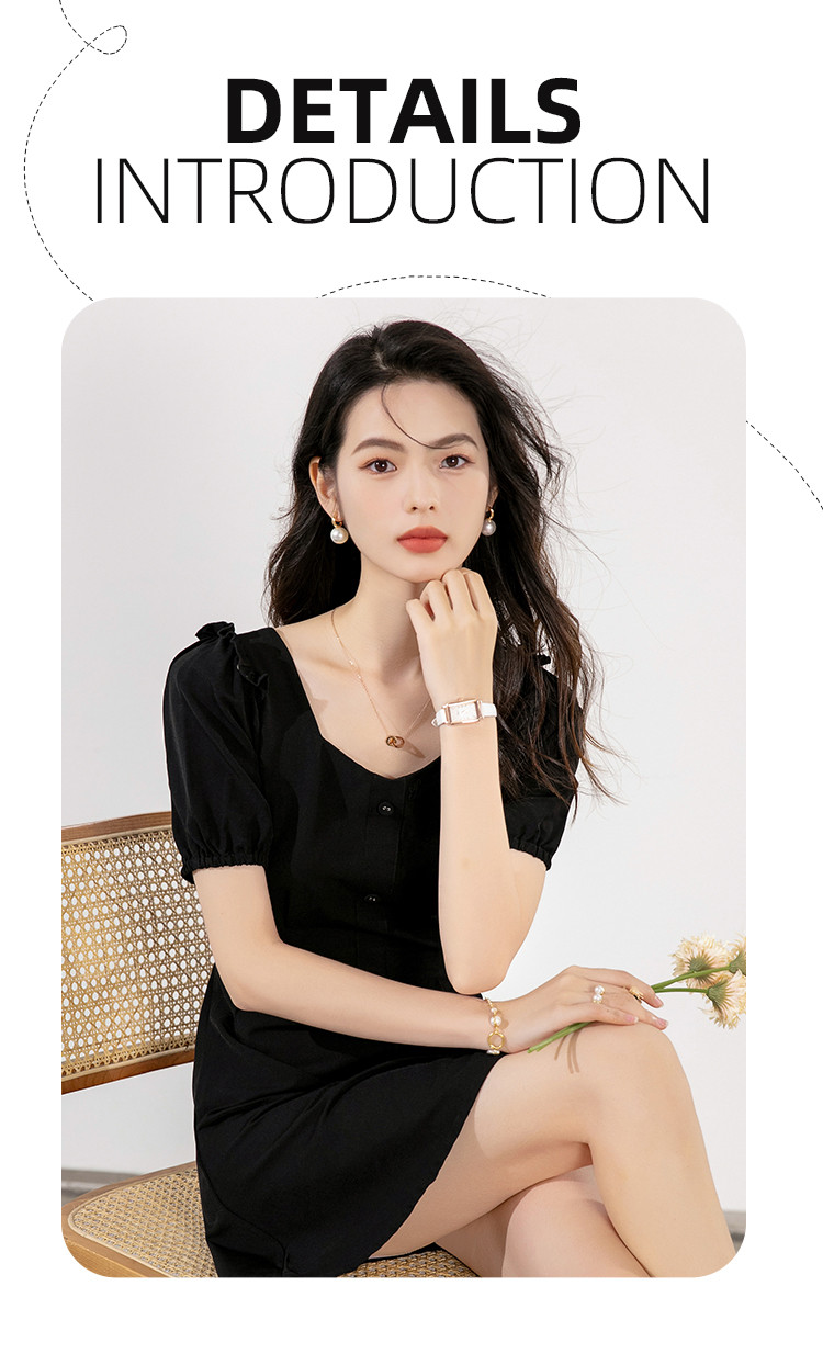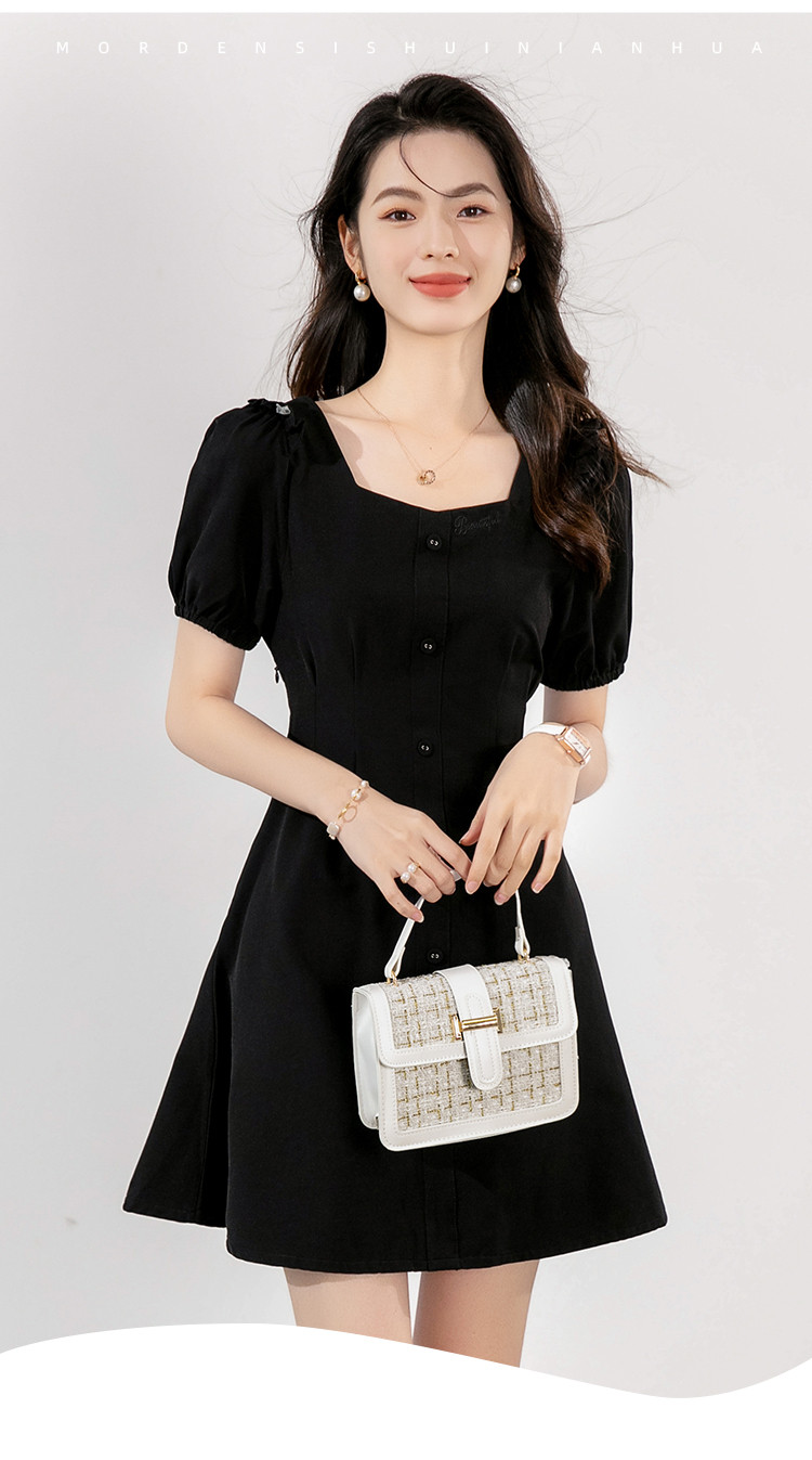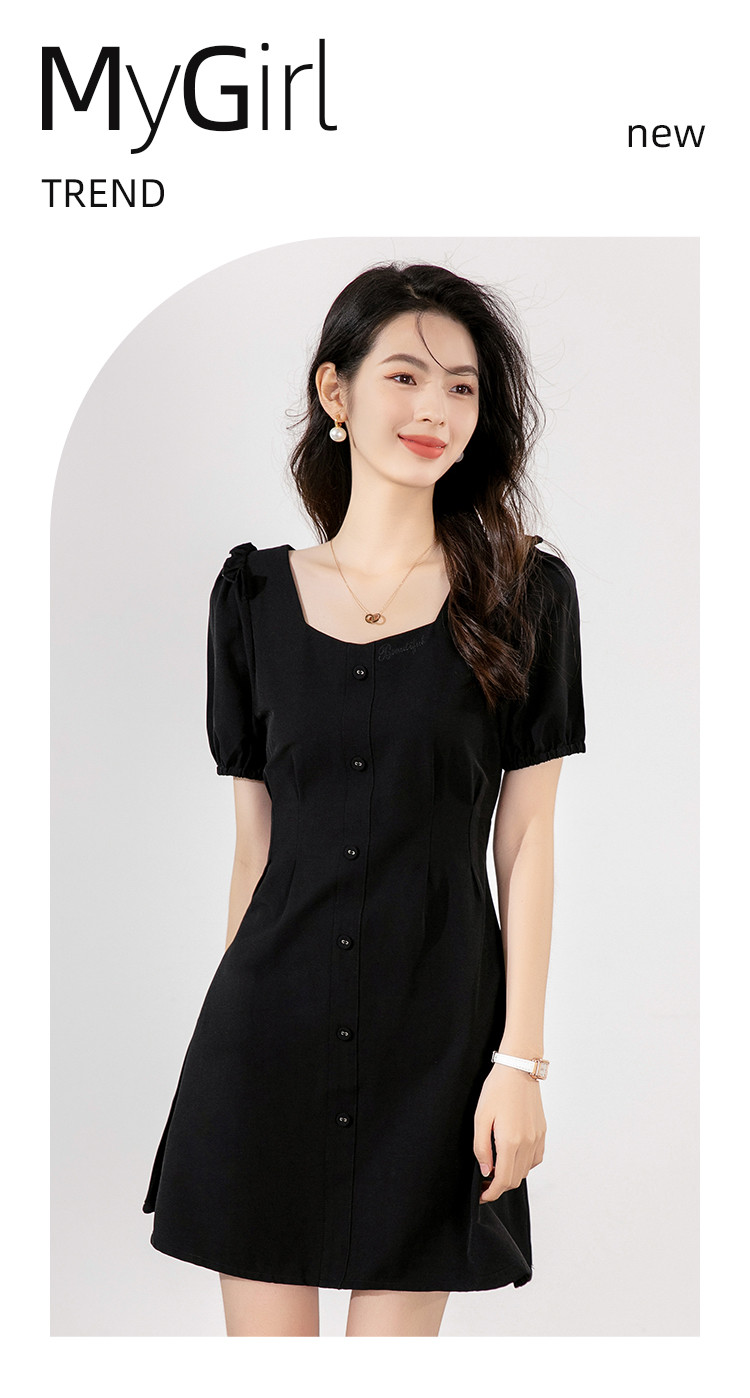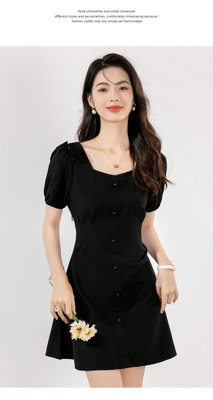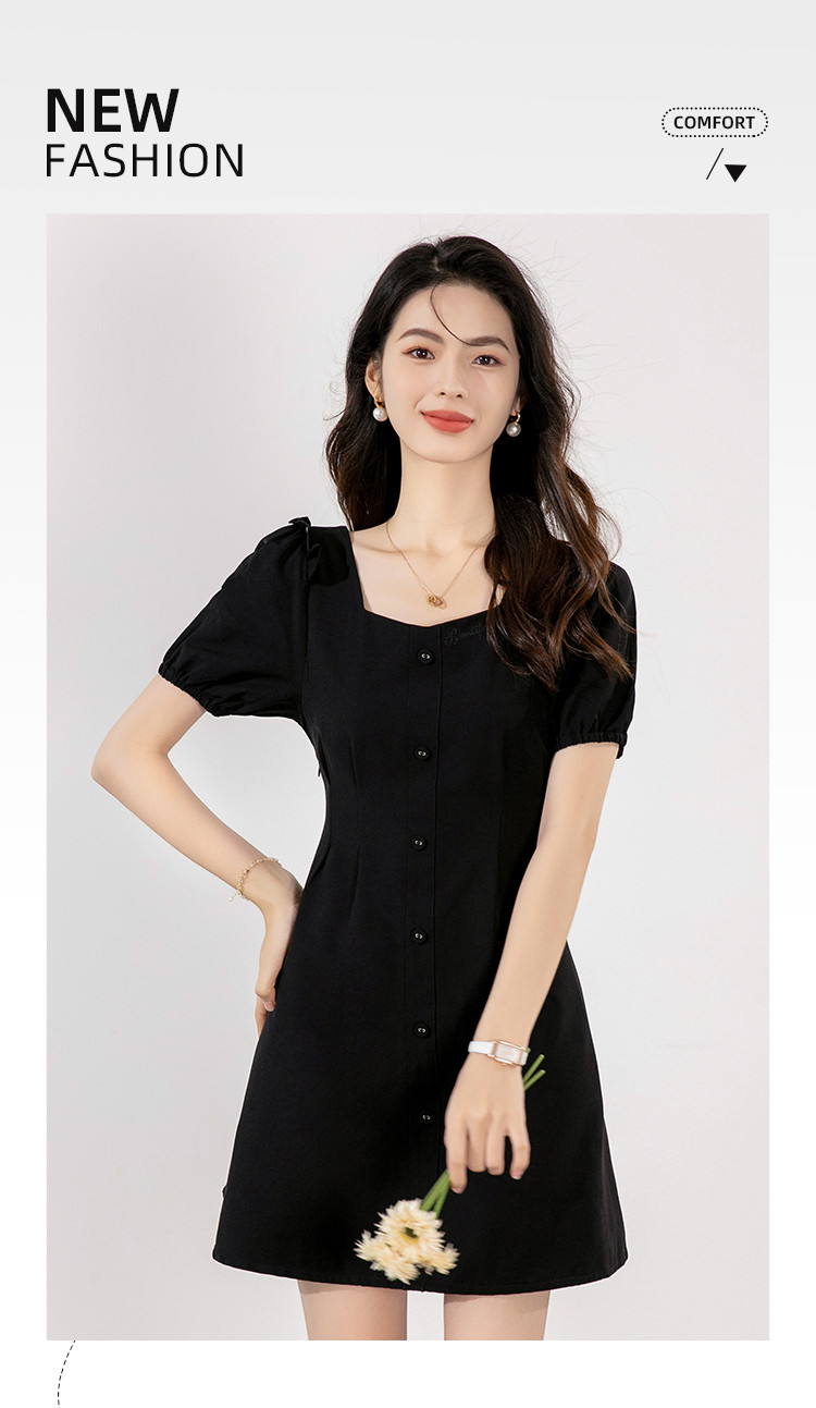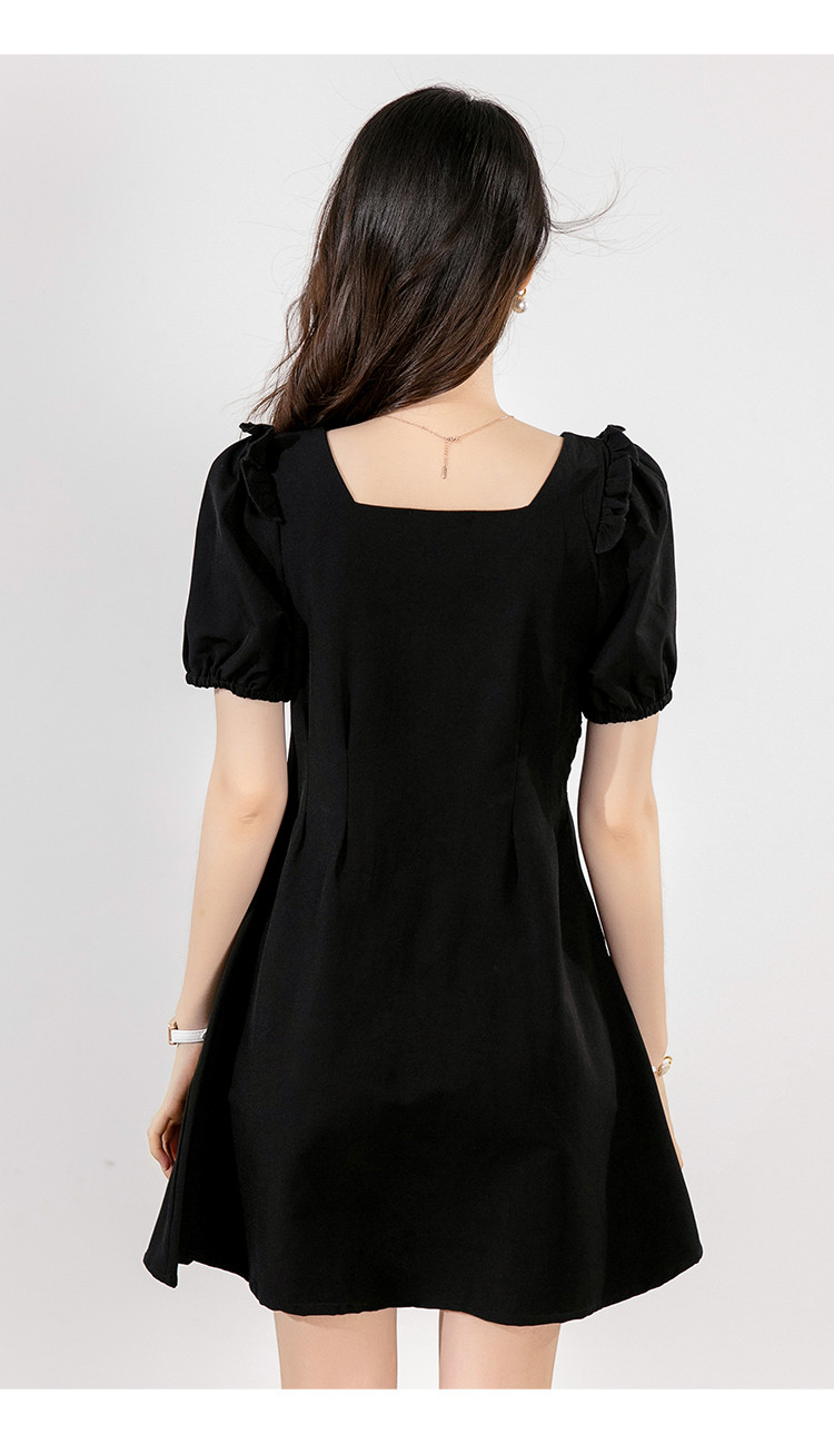 商品名称:【泡泡袖小黑裙】年夏季减龄短袖纯色设计显瘦短袖连衣裙 466776