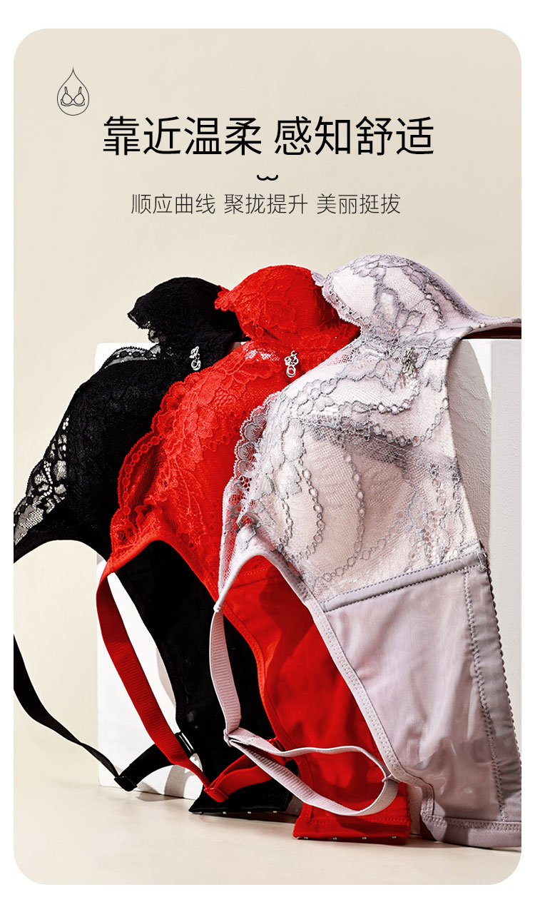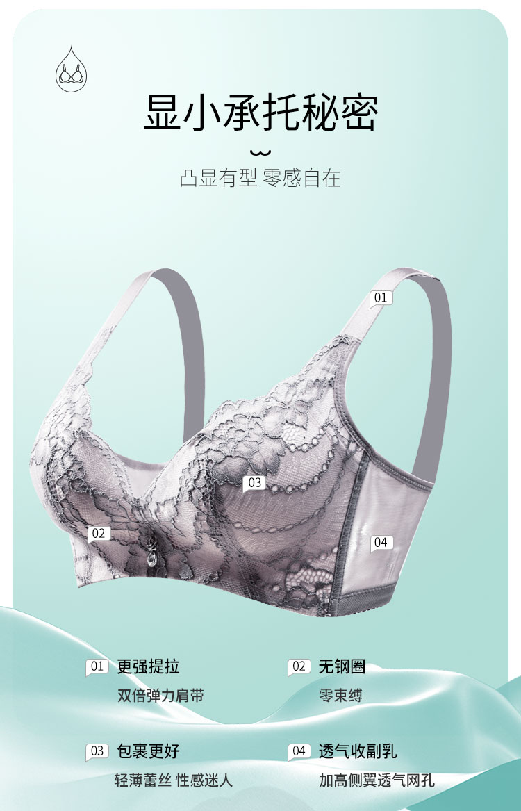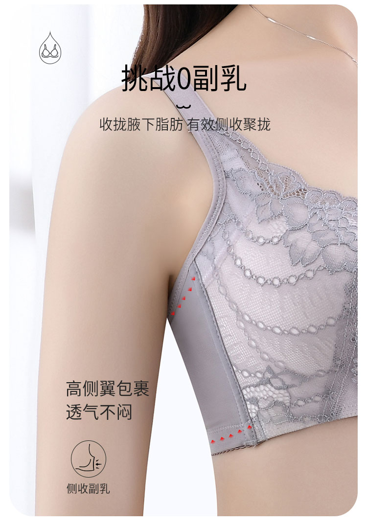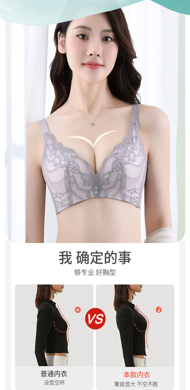 商品名称:【AB聚拢无痕升杯 圆润有型】蕾丝美背调整型侧收内衣女文胸罩 040606