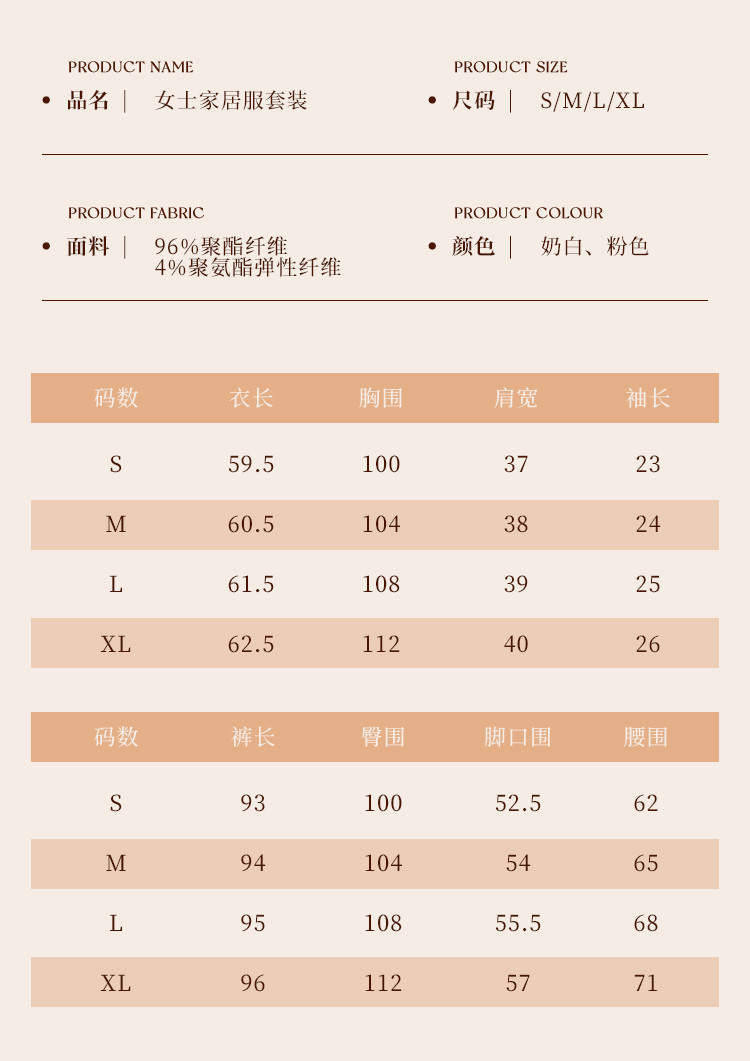 | 尺码 | 肩宽(cm) | 袖长(cm) | 下装号型 | 衣长(cm) | 身高(cm) | 腰围(cm) | 裤长(cm) | 体重(kg) | 臀围(cm) | 胸围(cm) | 号型 |