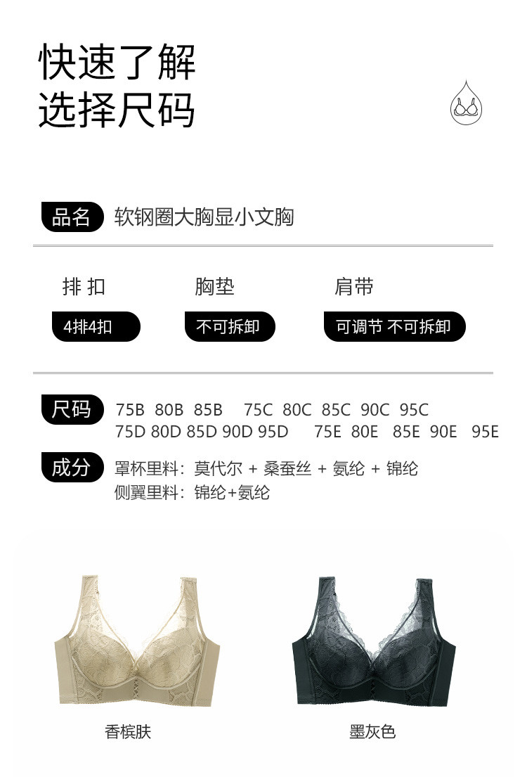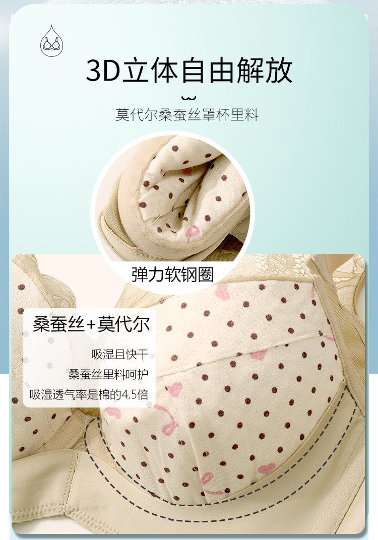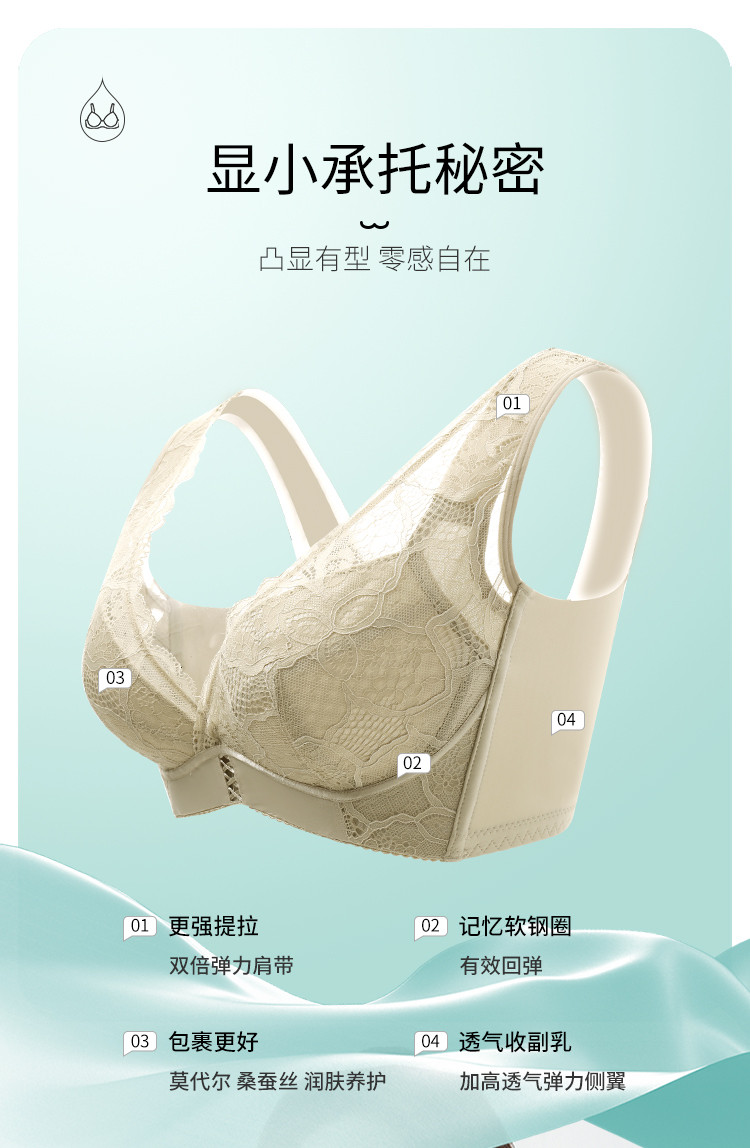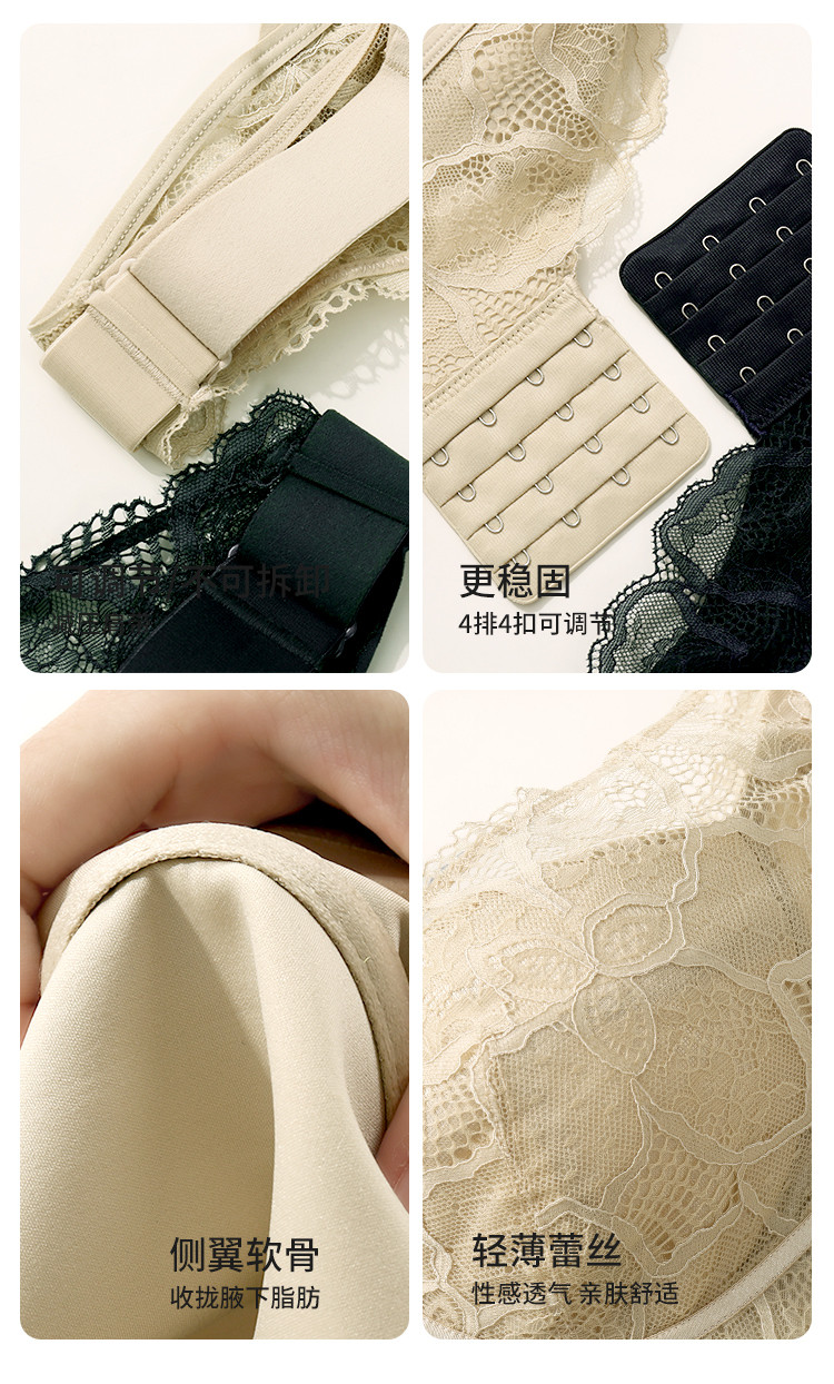 商品名称:【捡漏量少不补】含桑蚕丝轻奢蕾丝聚拢上托调整型收副乳内衣文胸 985822