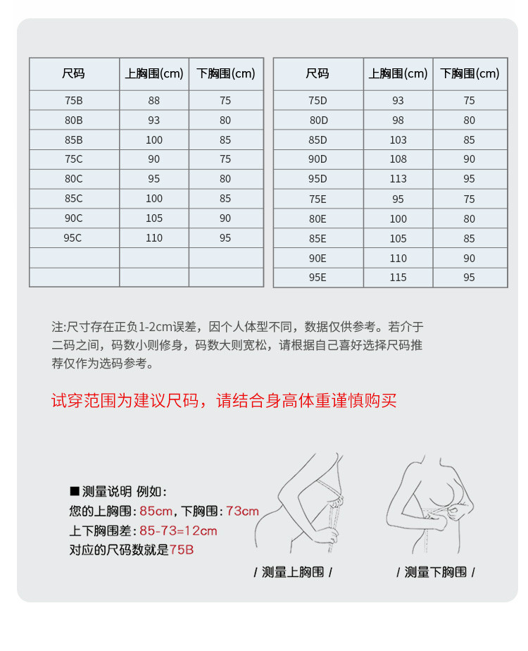 尺码 下胸围(cm) 上胸围(cm)