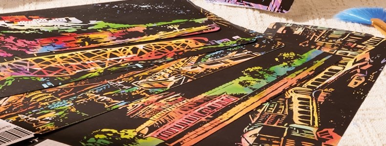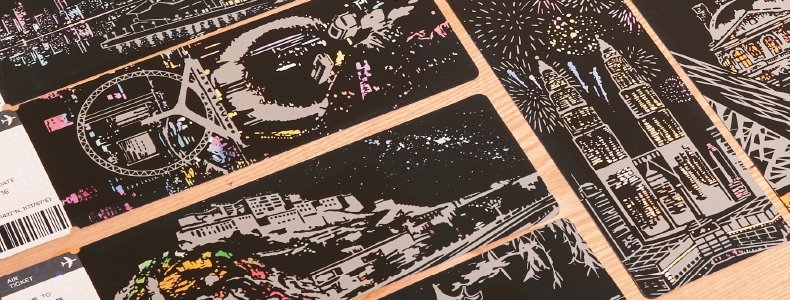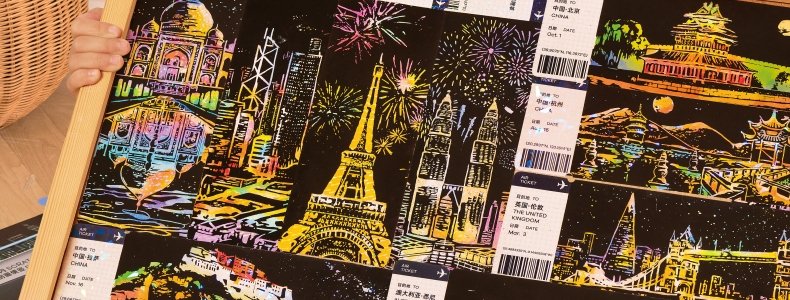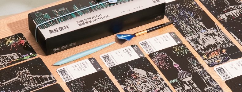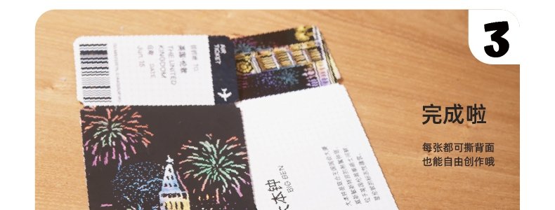 商品名称:美乐童年 闪闪刮画便签(夜色名城)机票刮画x20、刮画笔x1、刷子x1