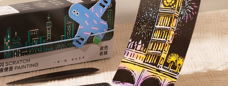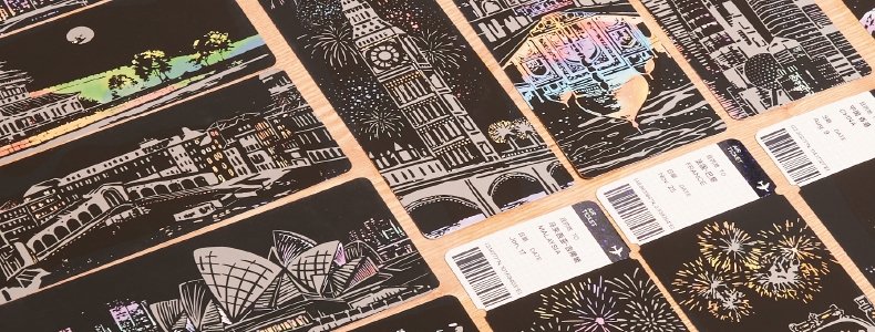 美乐童年 闪闪刮画便签(夜色名城)机票刮画x20、刮画笔x1、刷子x1