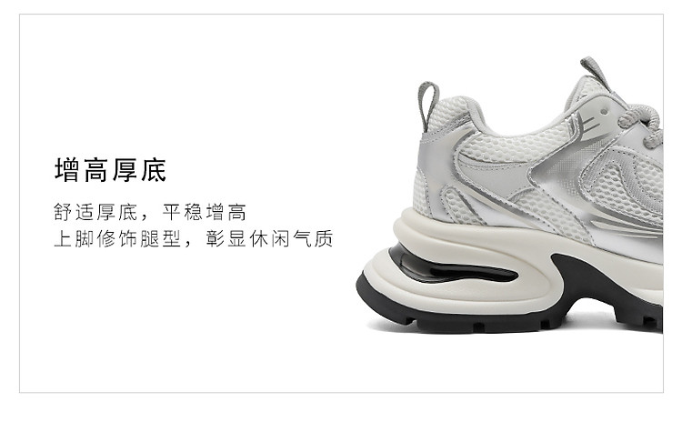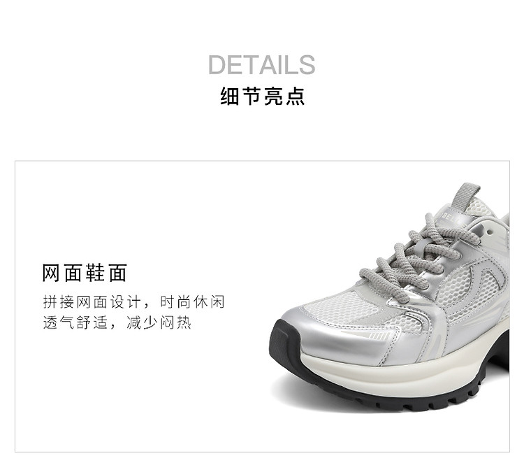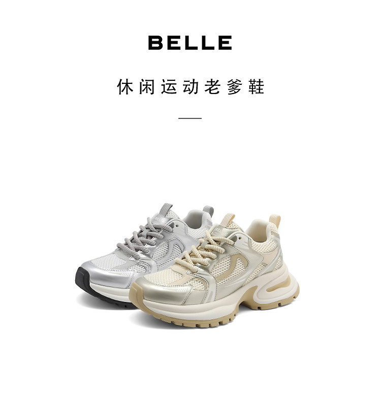 商品名称:百丽银色月光复古银色厚底老爹鞋子女鞋休闲运动鞋 178650