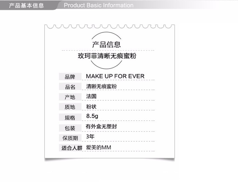 商品名称:MAKE UP FOR EVER/玫珂菲 清晰无痕蜜粉 定妆控油散粉 8.5g