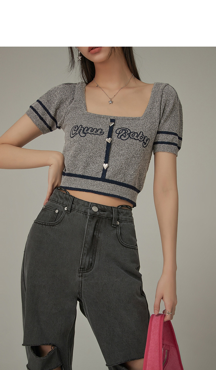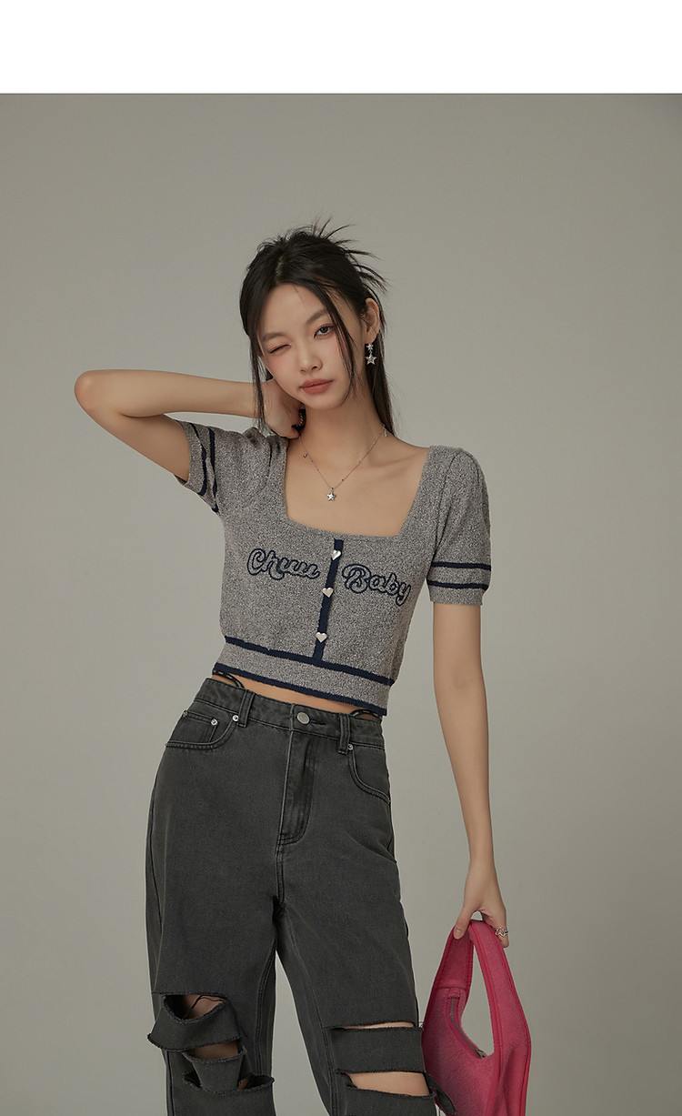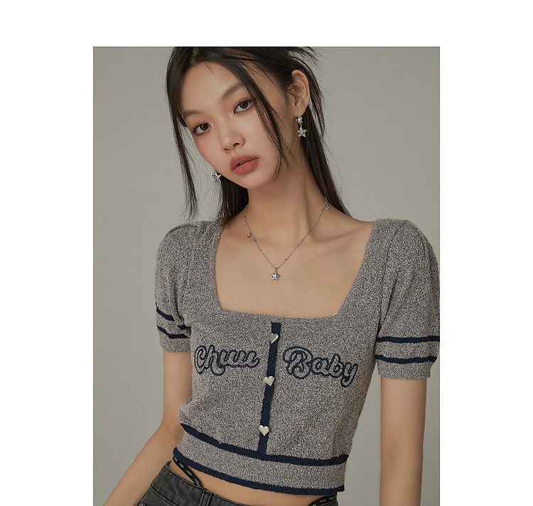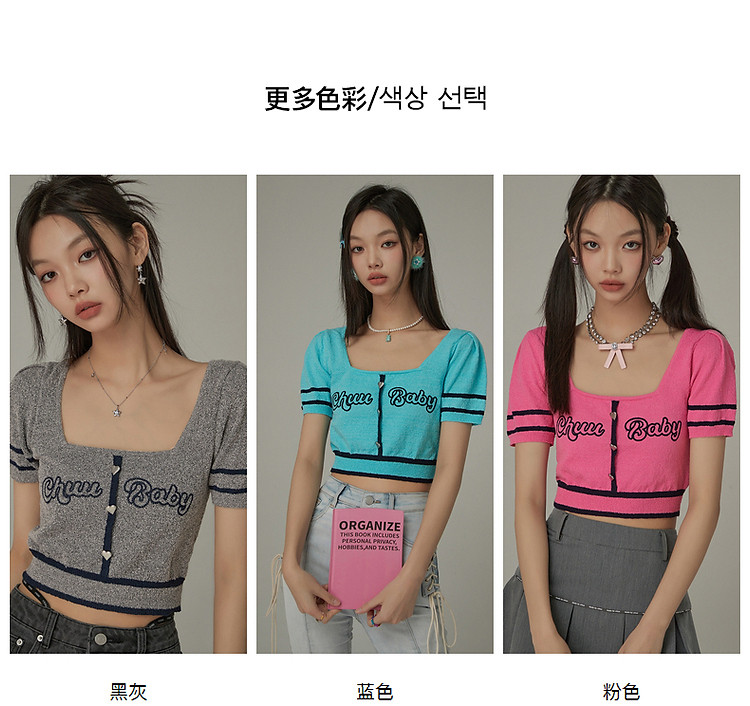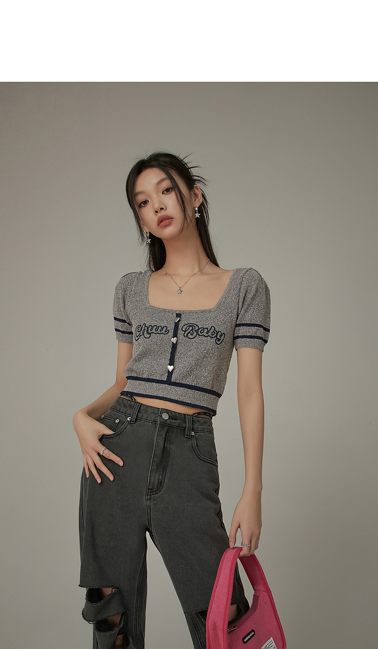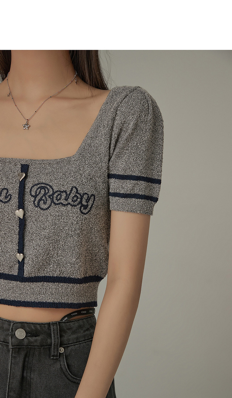商品名称:甜辣字母针织衫女夏小众洋气减龄短袖显瘦短款上衣 171091