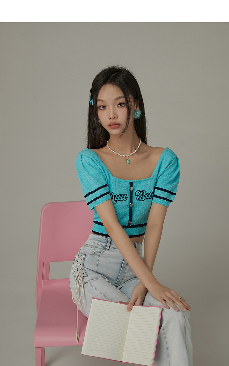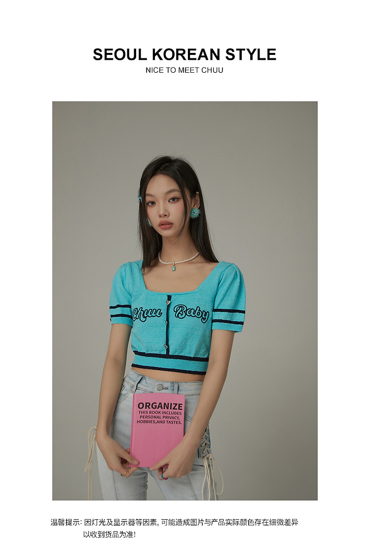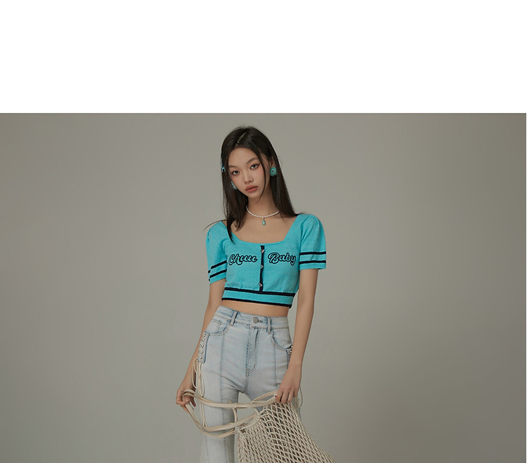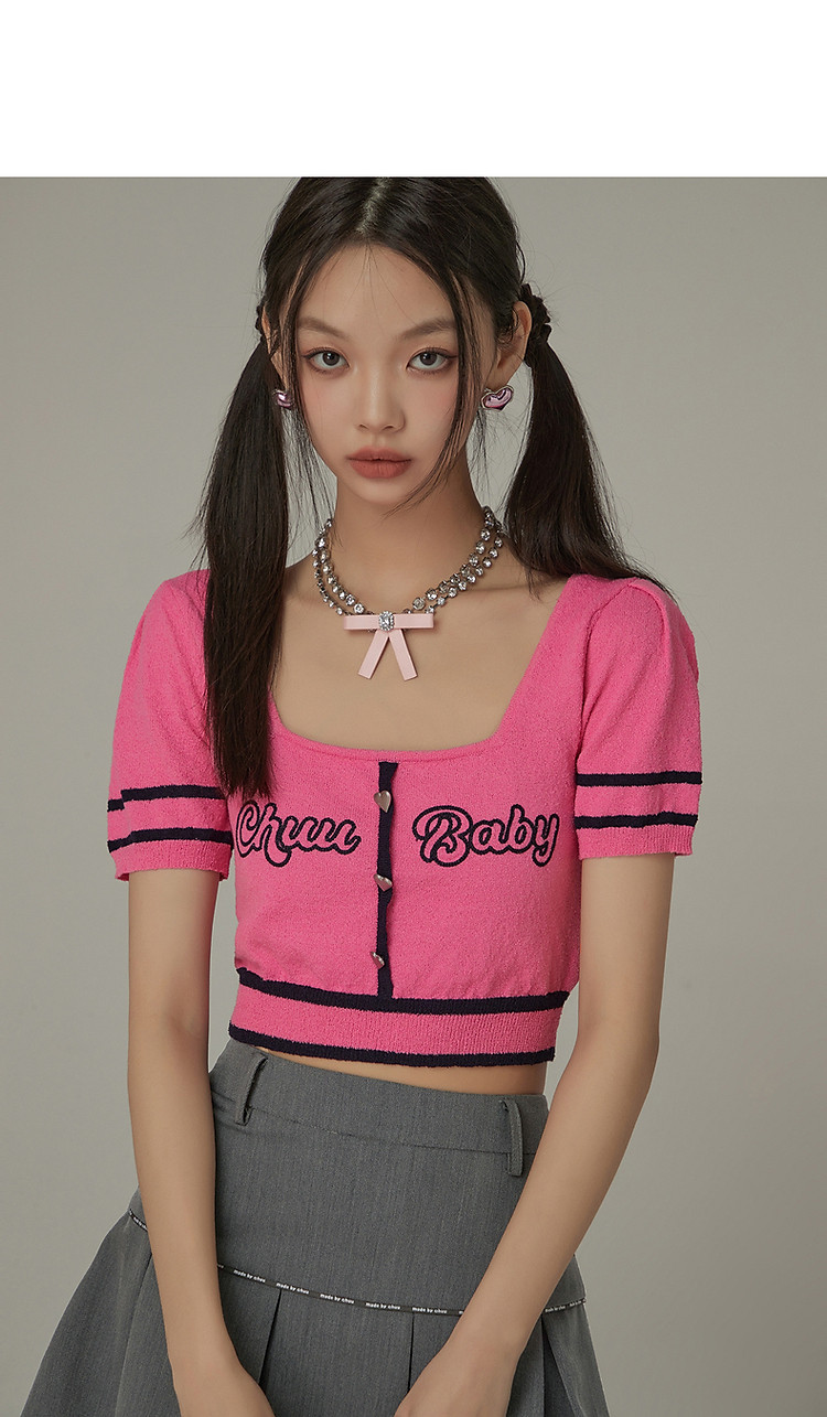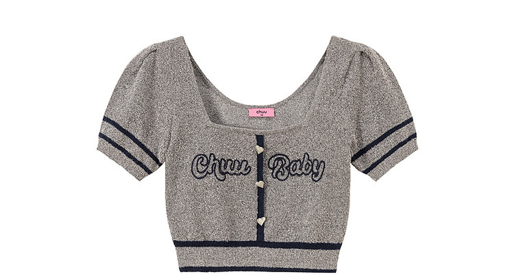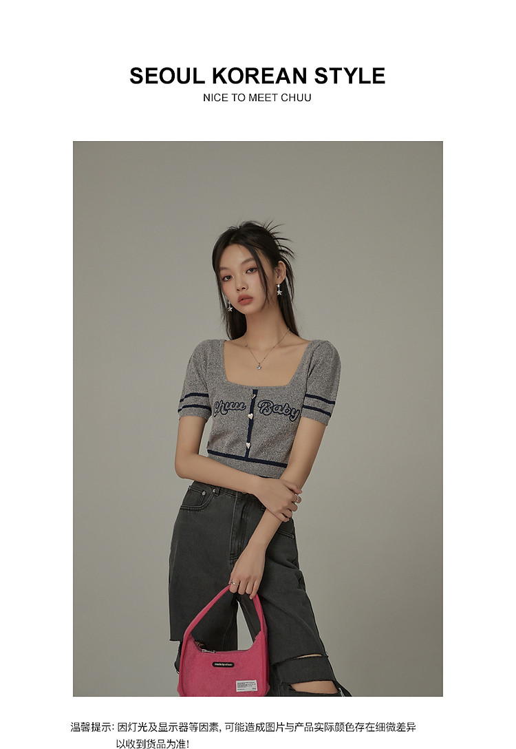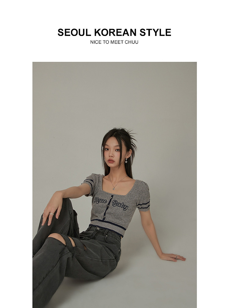 商品名称:甜辣字母针织衫女夏小众洋气减龄短袖显瘦短款上衣 171091