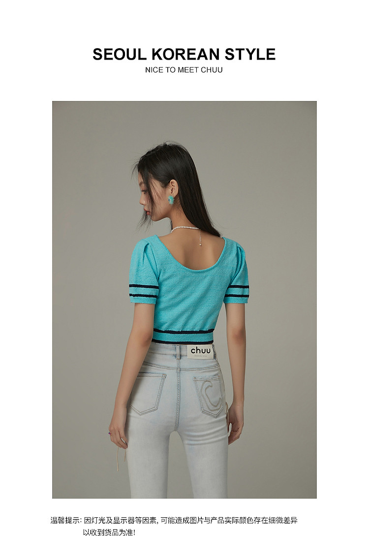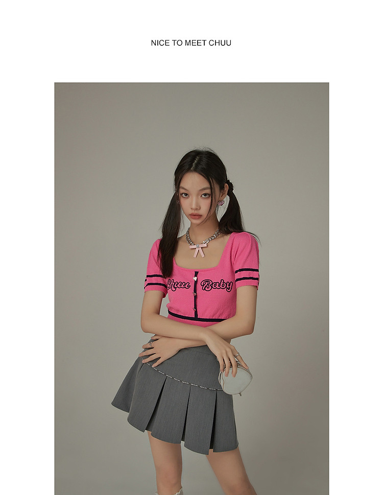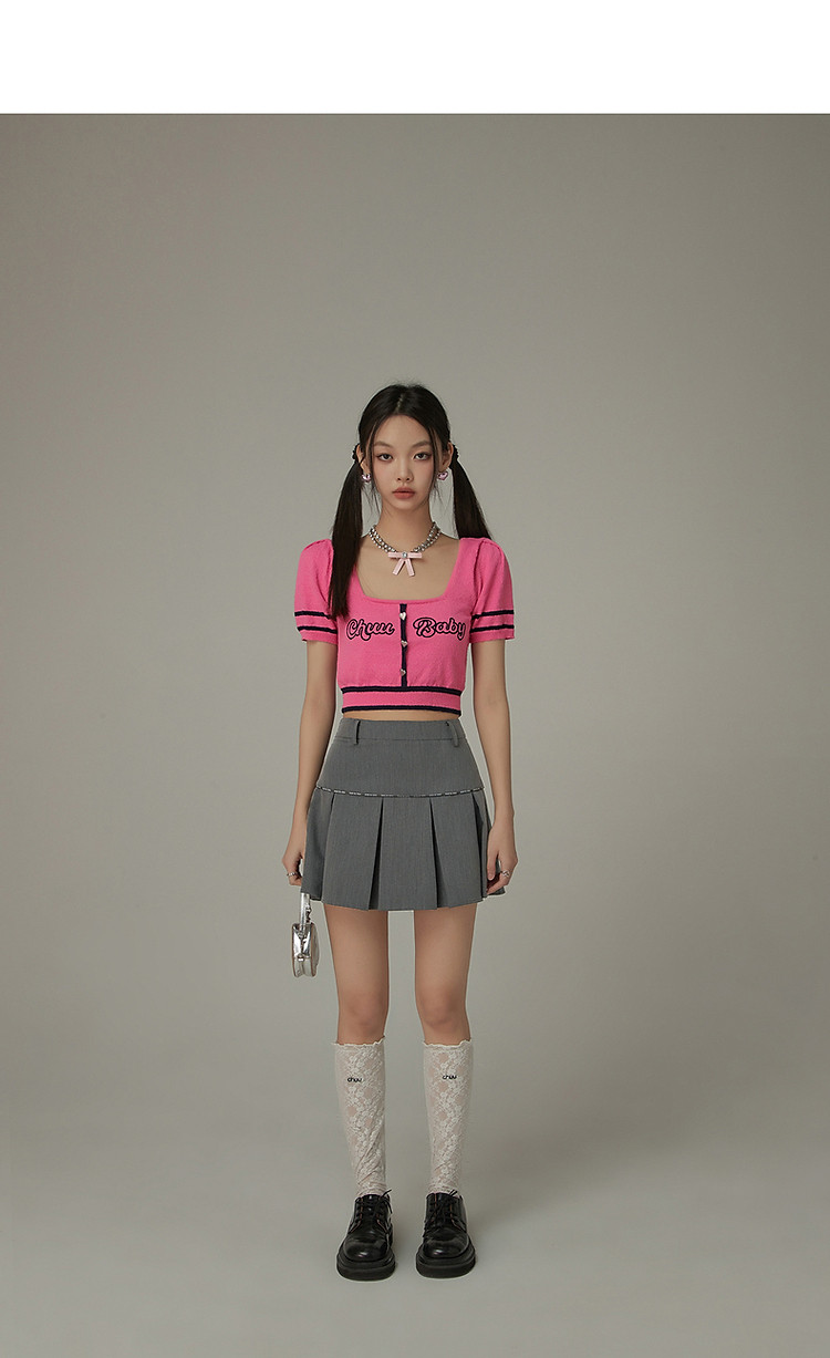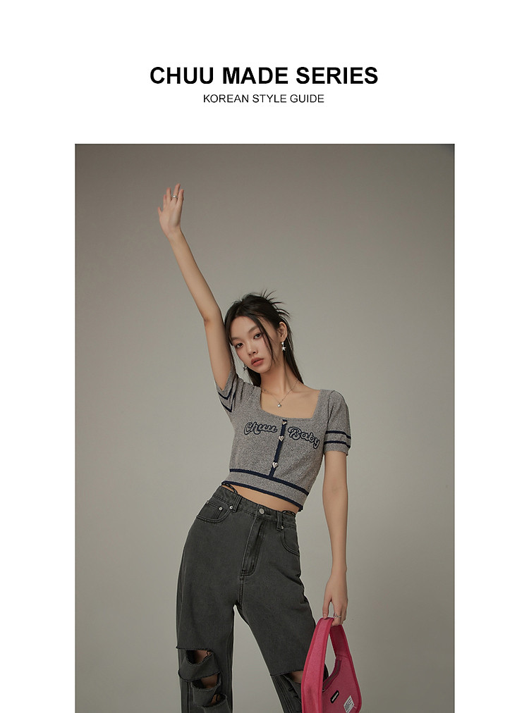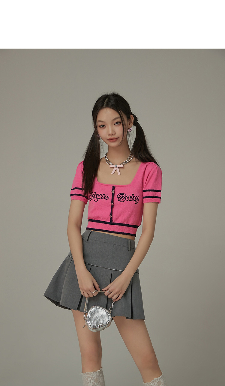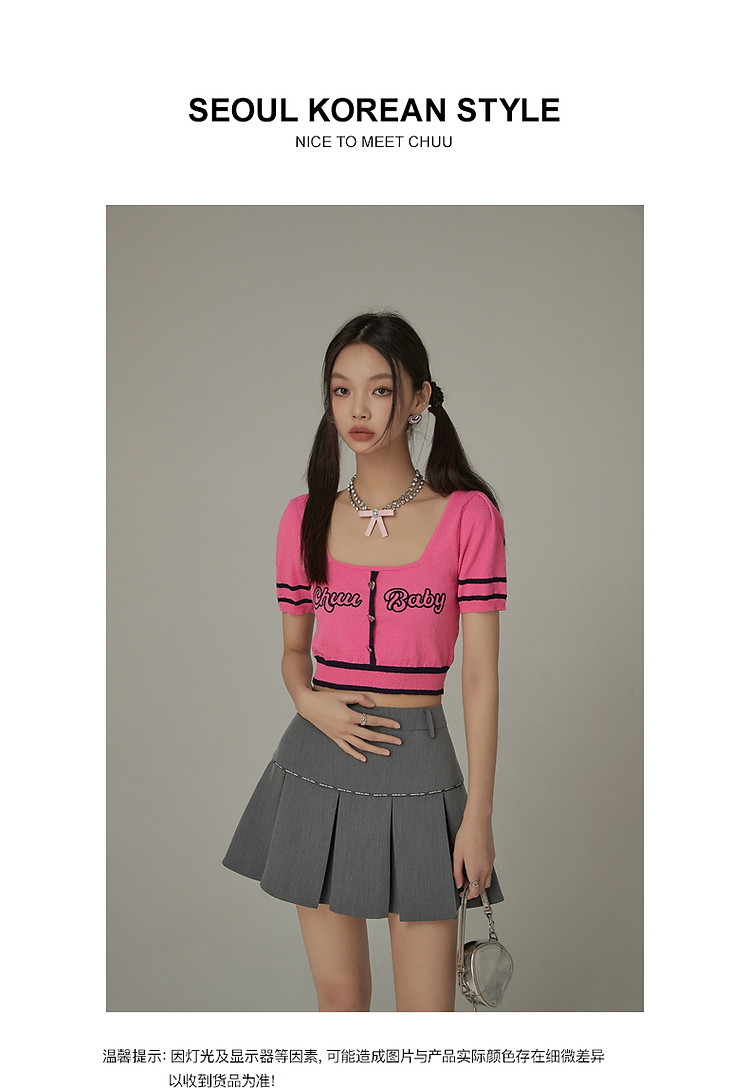 商品名称:甜辣字母针织衫女夏小众洋气减龄短袖显瘦短款上衣 171091