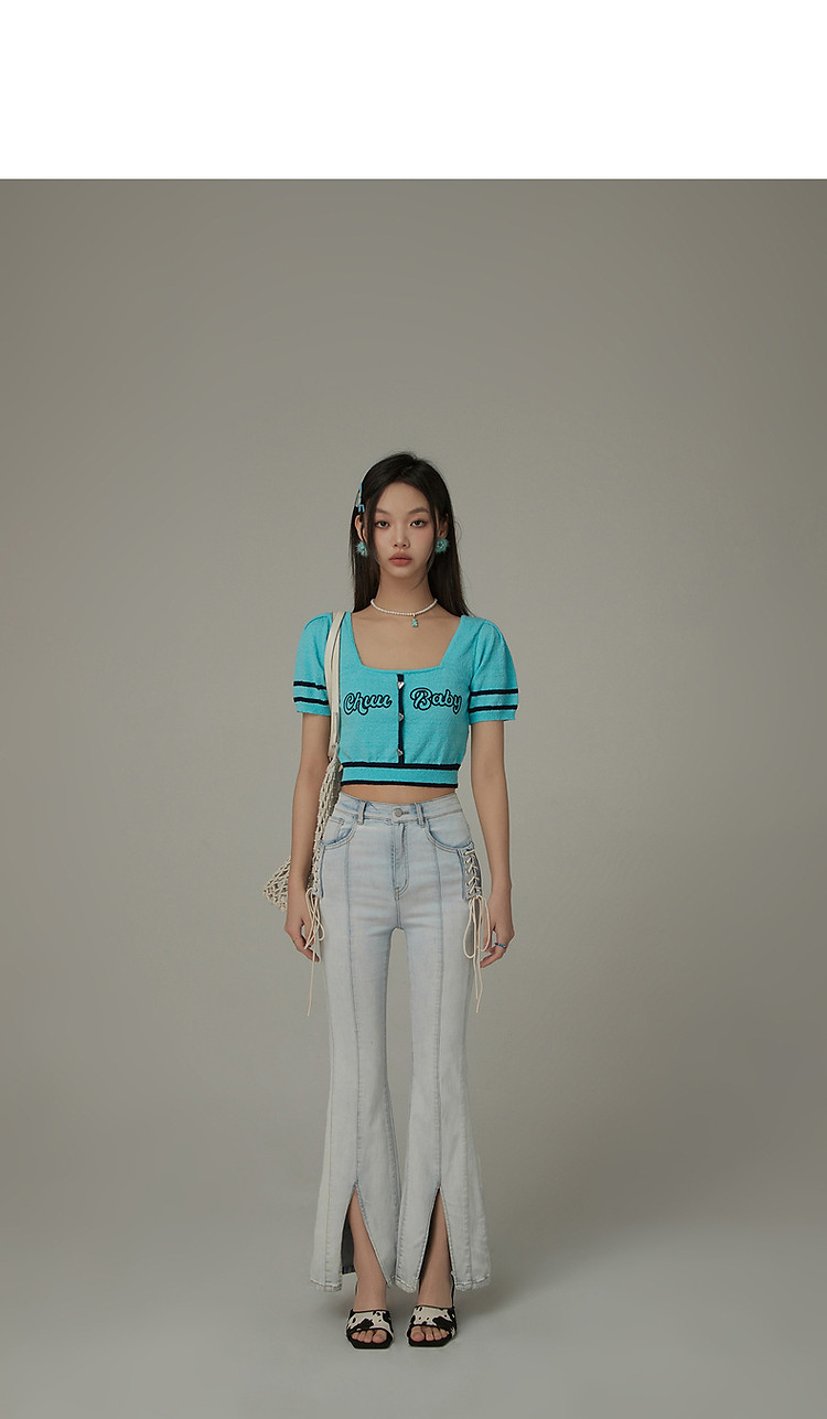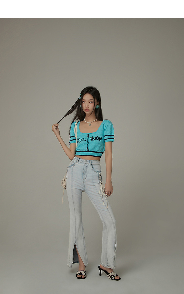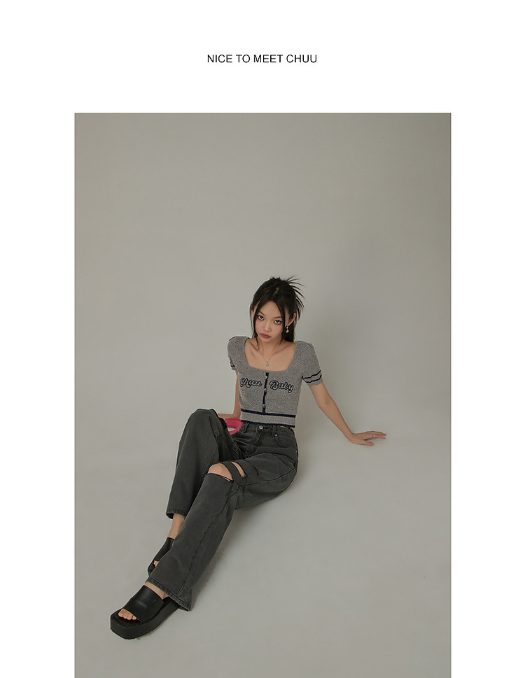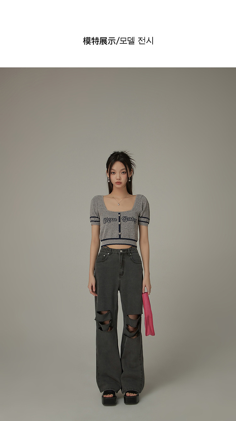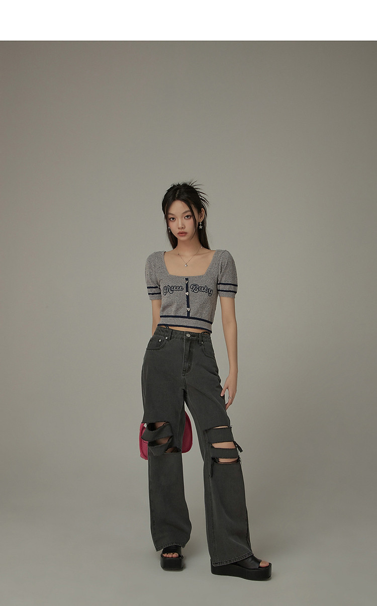商品名称:甜辣字母针织衫女夏小众洋气减龄短袖显瘦短款上衣 171091