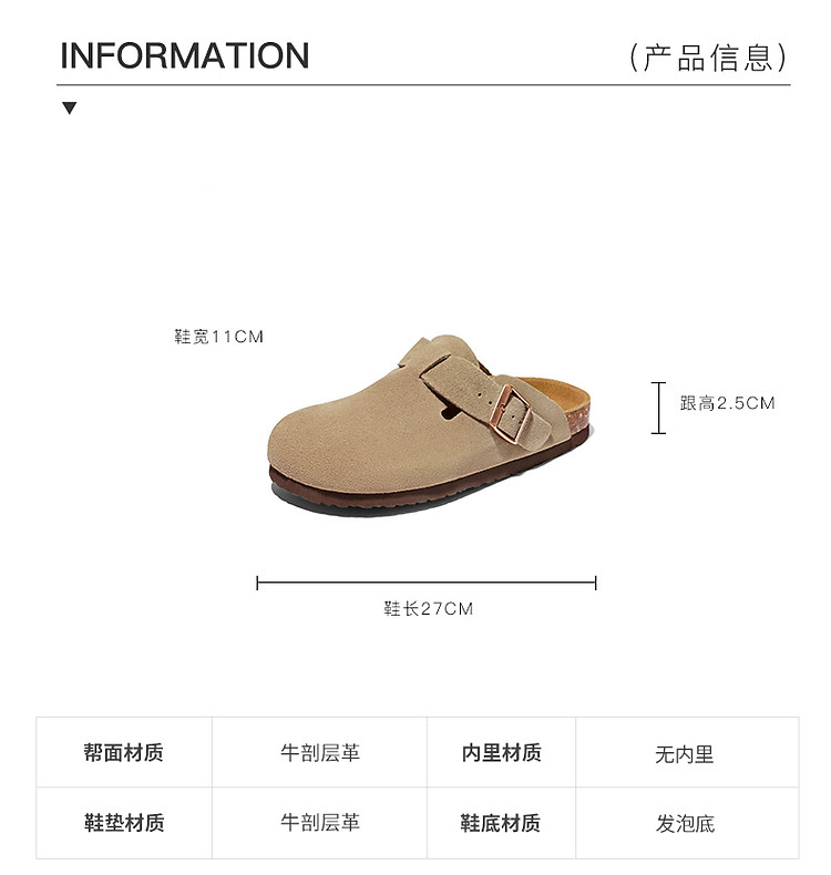 商品名称:百丽慵懒勃肯鞋男鞋夏季透气款外穿一脚蹬包头拖 026074