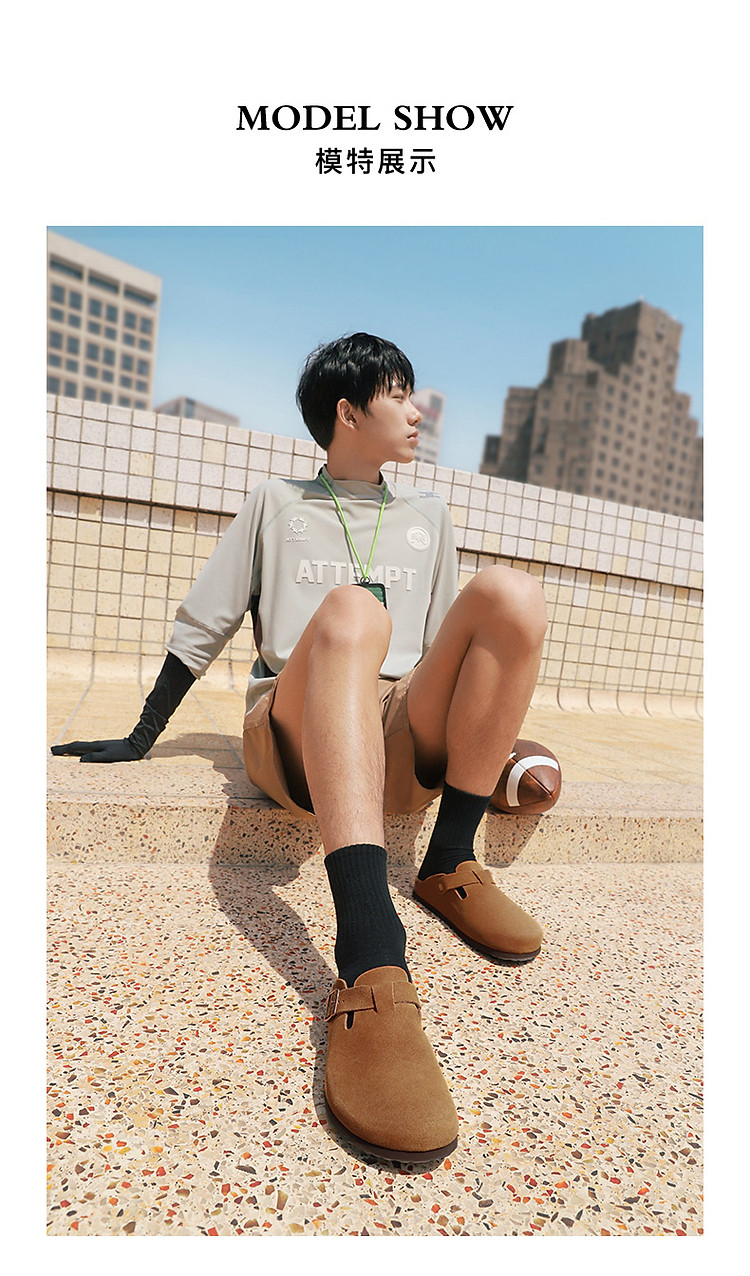 百丽慵懒勃肯鞋男鞋夏季透气款外穿一脚蹬包头拖 026074