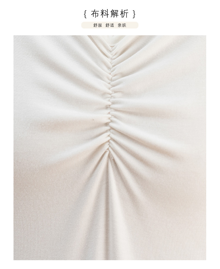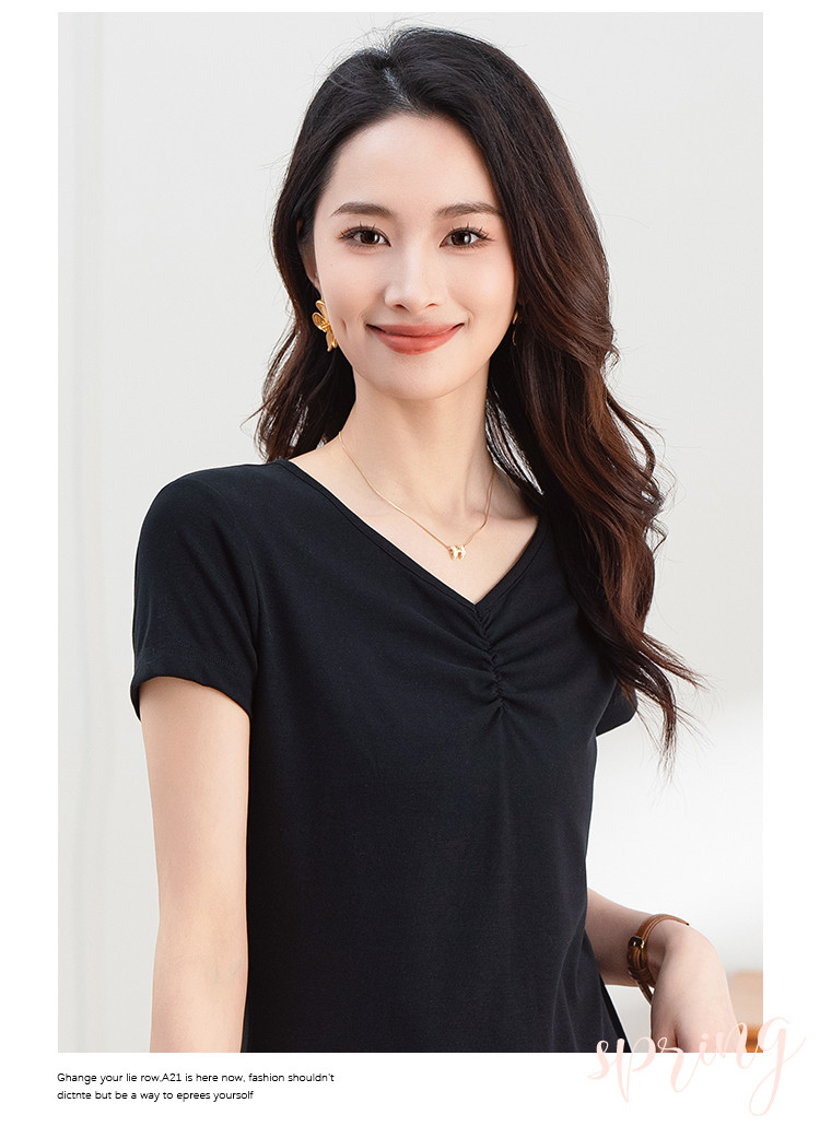 商品名称:抽褶纯色短款上衣女夏季爆款修身舒适休闲简约气质V领短袖T恤女 430593
