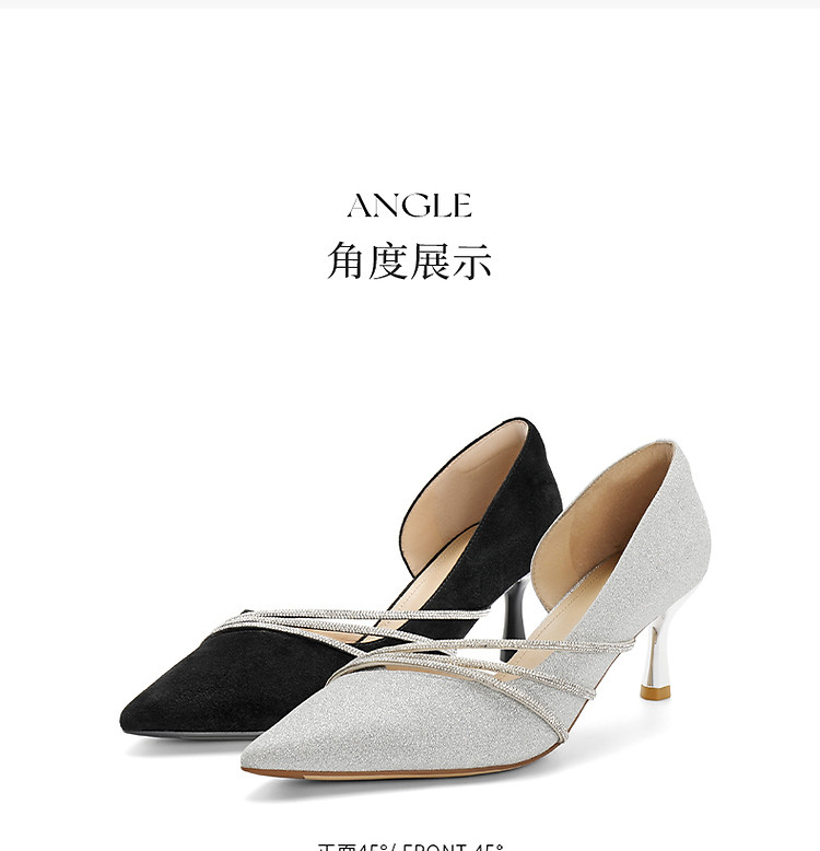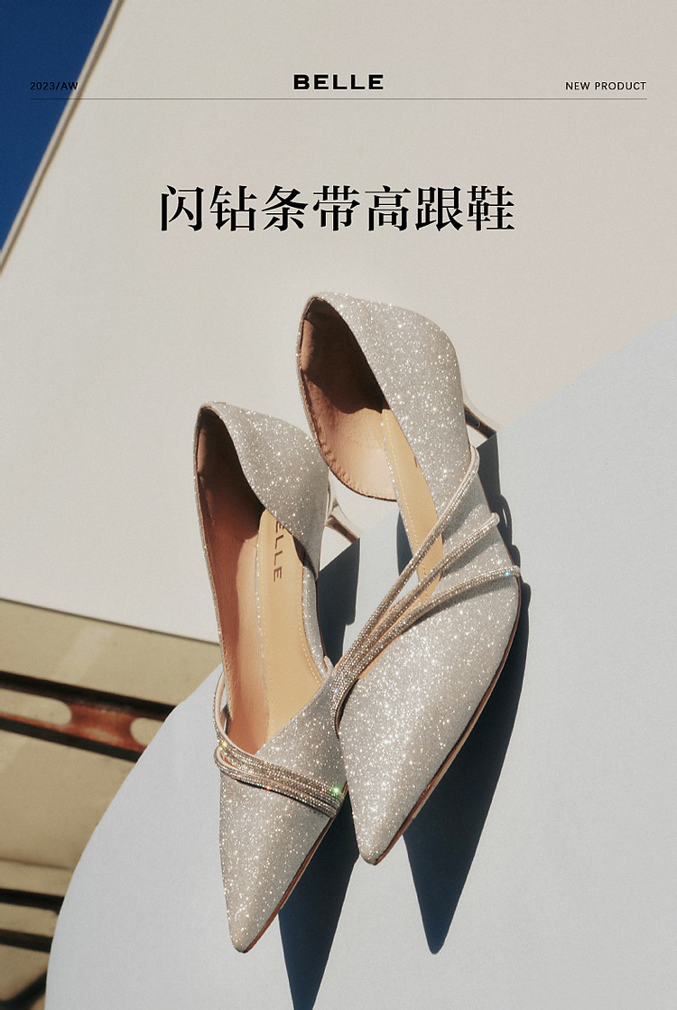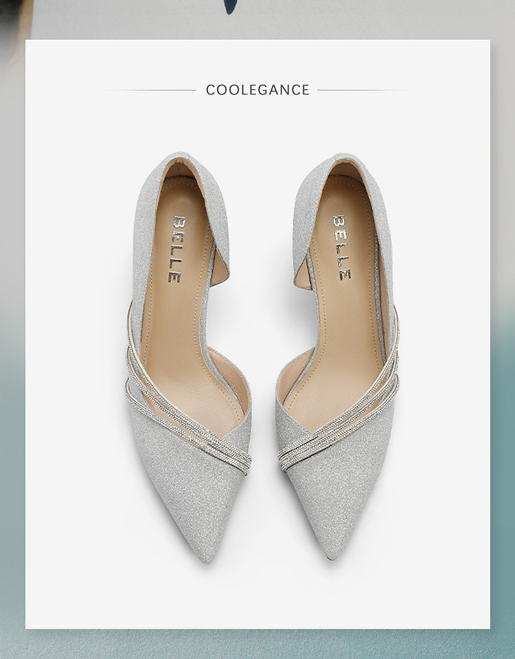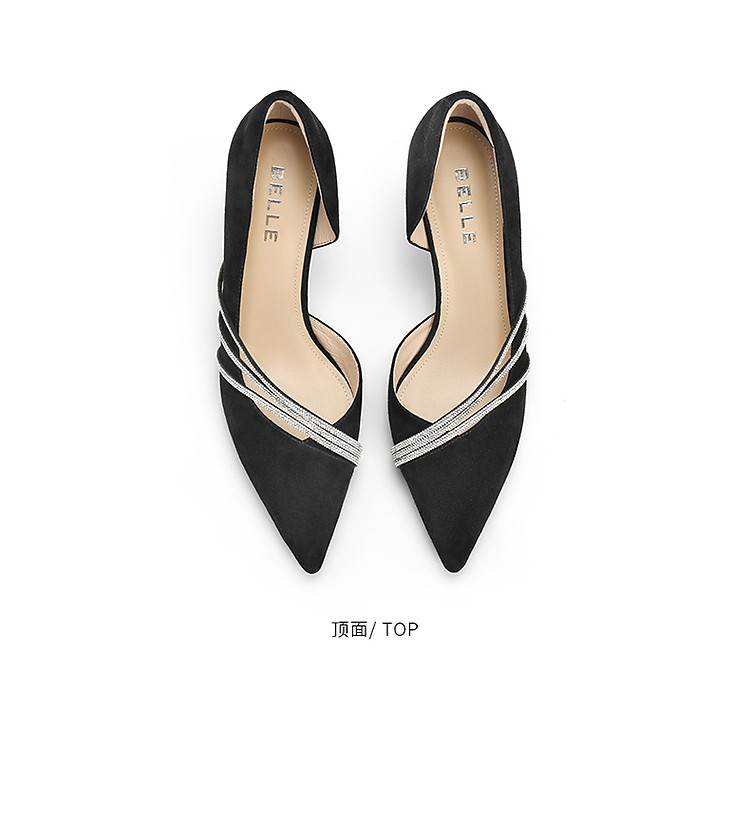 百丽婚鞋晚会细高跟鞋女鞋鞋子水钻上班穿单鞋 916954