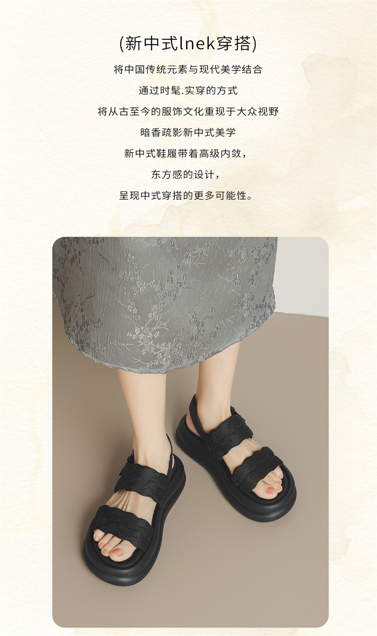 商品名称:夏季新中式国风女鞋一字带运动凉鞋百搭时尚通勤鞋透气凉拖鞋 677527