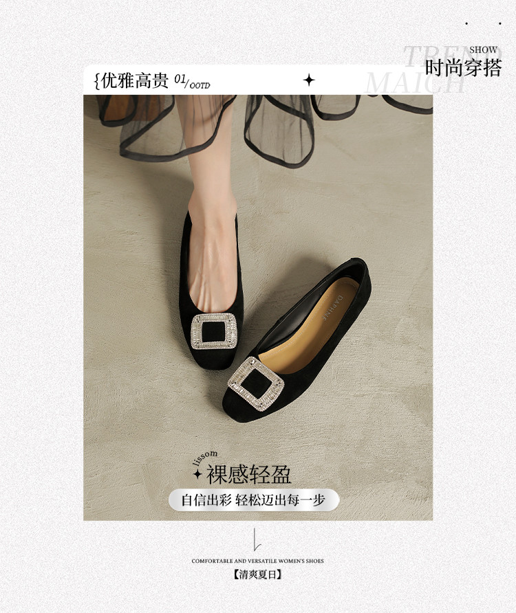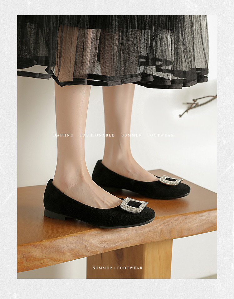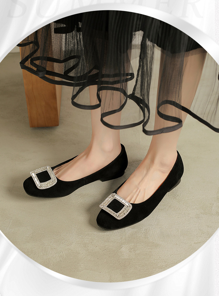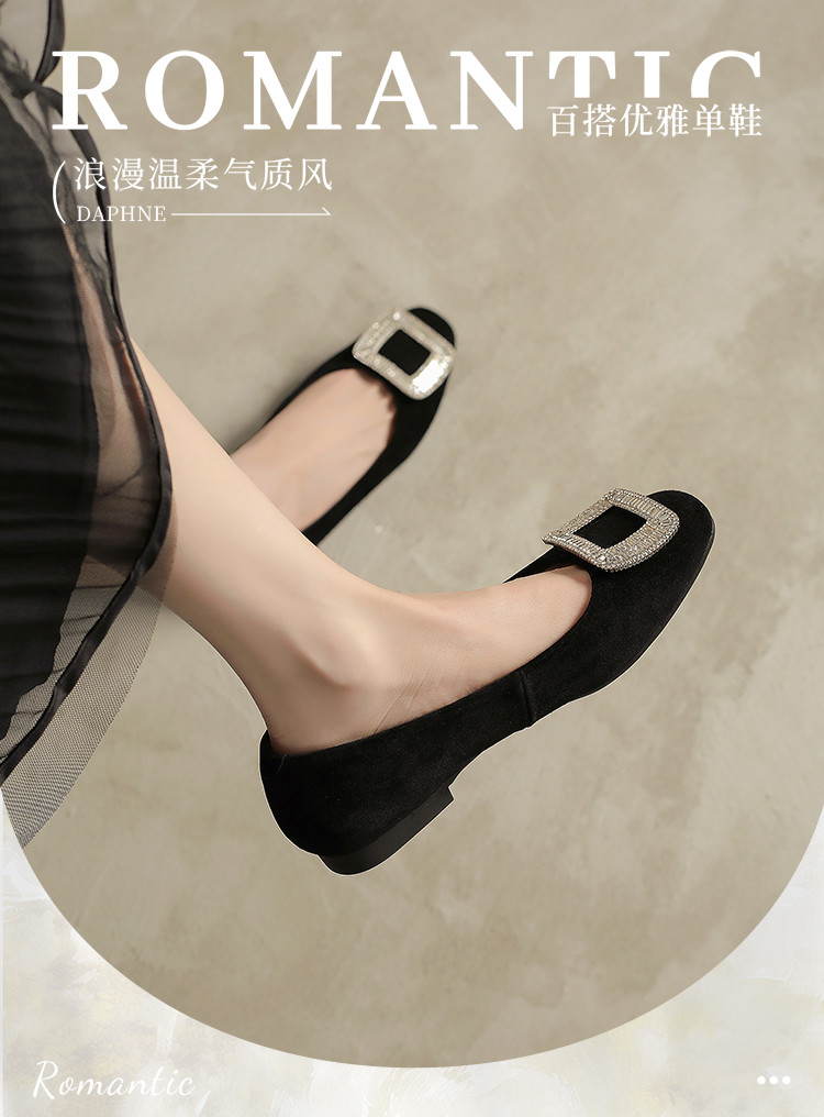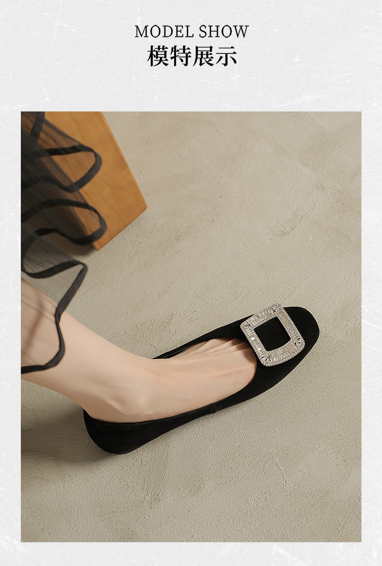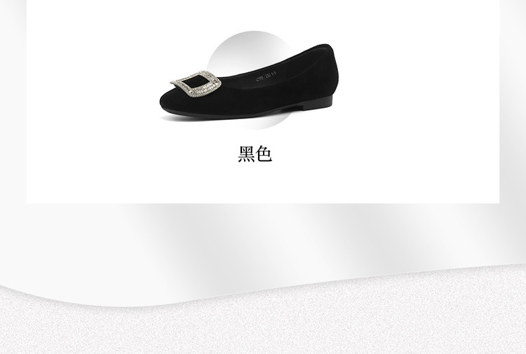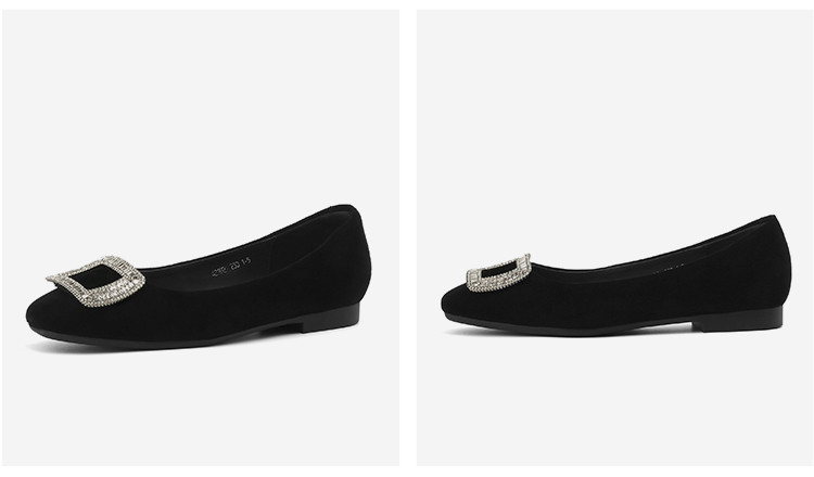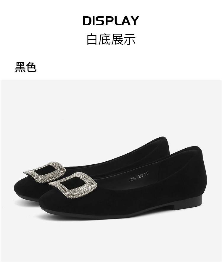 商品名称:羊绒平底单鞋女四季款浅口平底鞋女水钻黑色通勤职业女鞋 042074