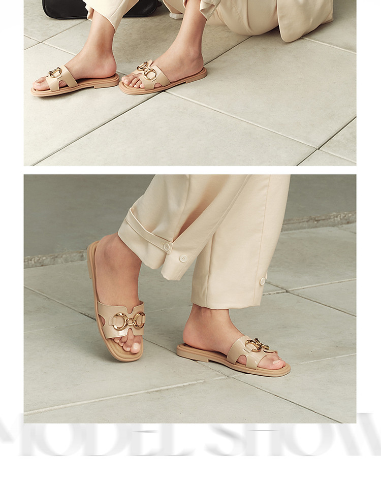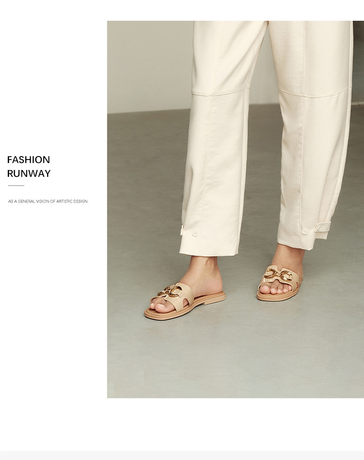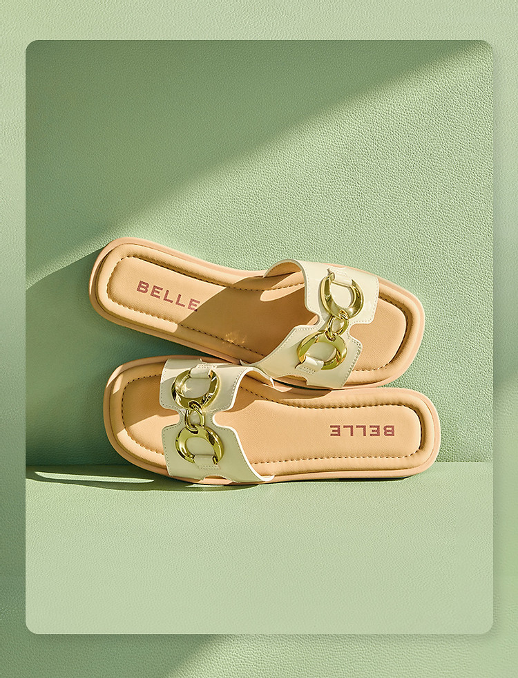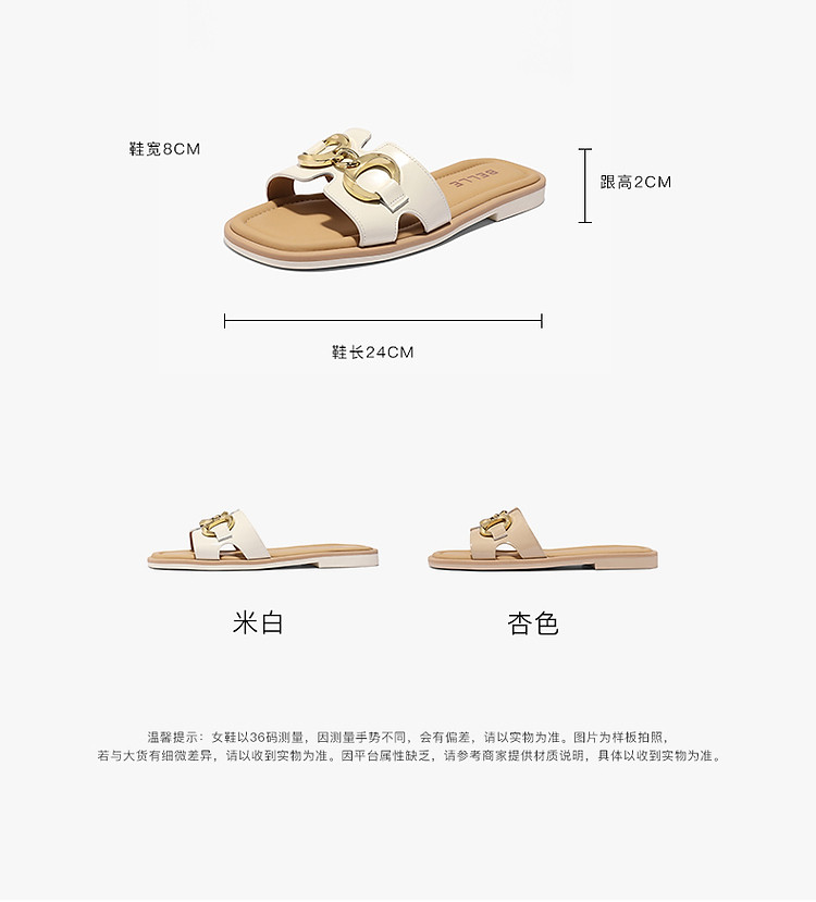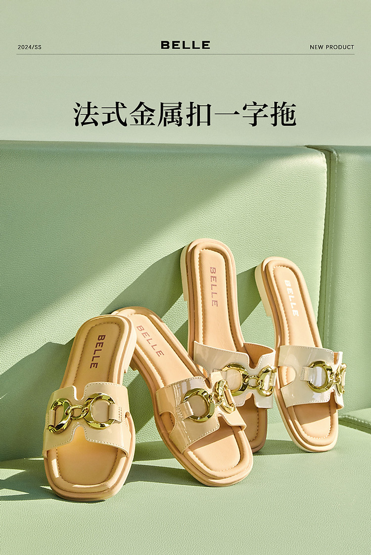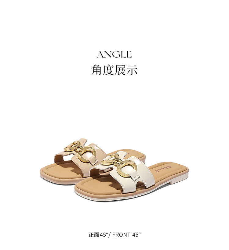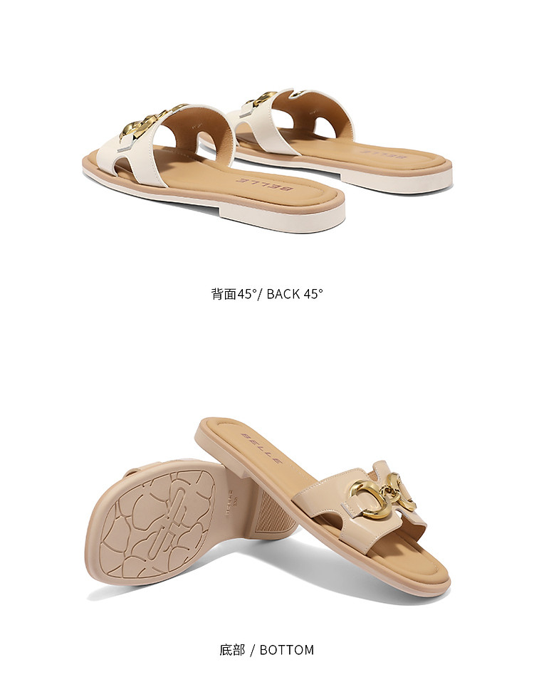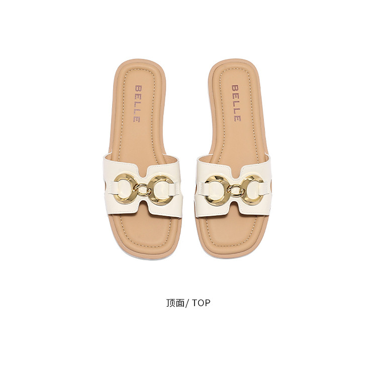 商品名称:【爆款推荐】百丽金属扣一字拖女春夏鞋子法式可外穿平底拖鞋 924890