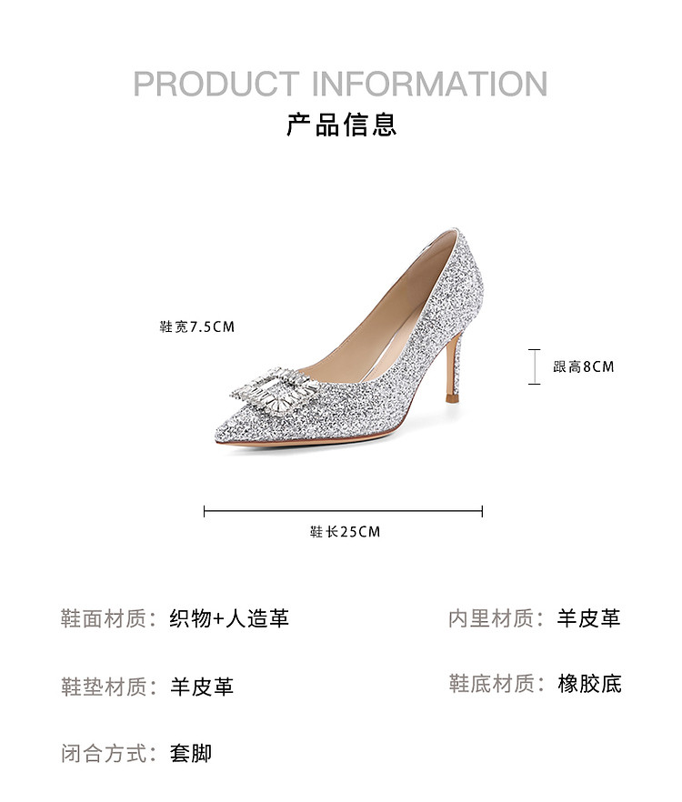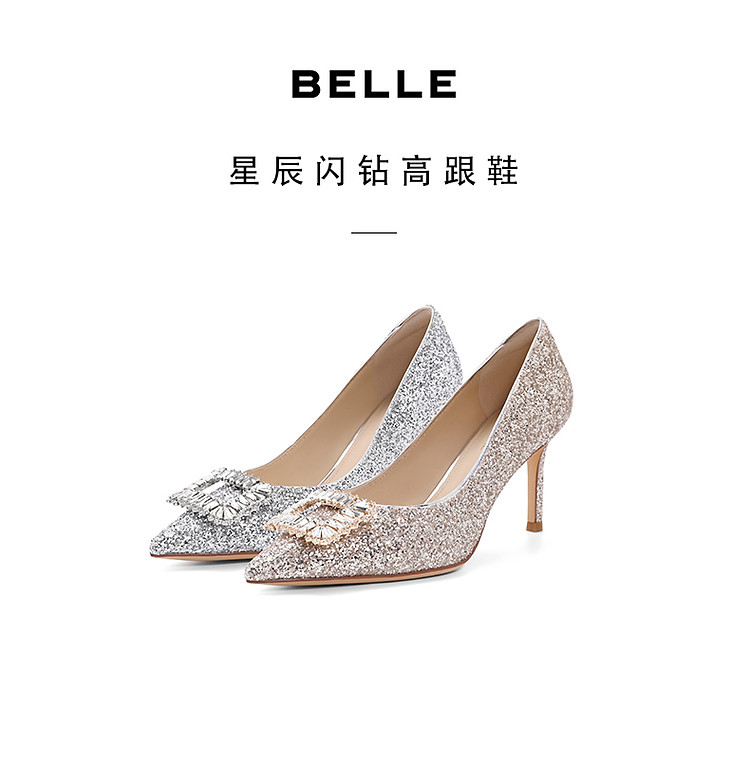 商品名称:百丽细高跟鞋秀禾婚鞋女鞋水钻舞会鞋子上班穿单鞋 795674