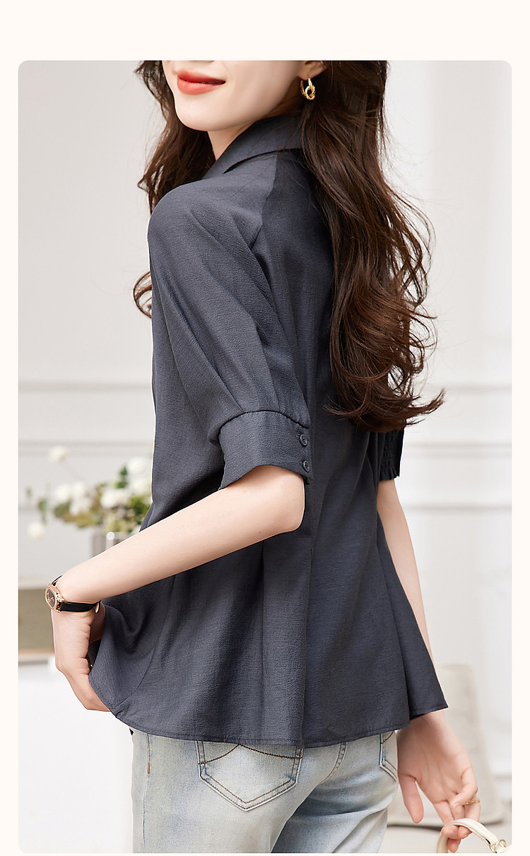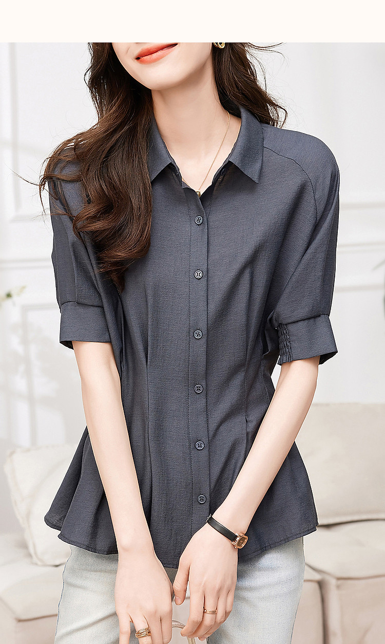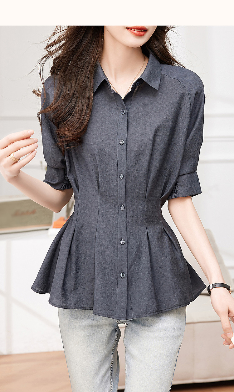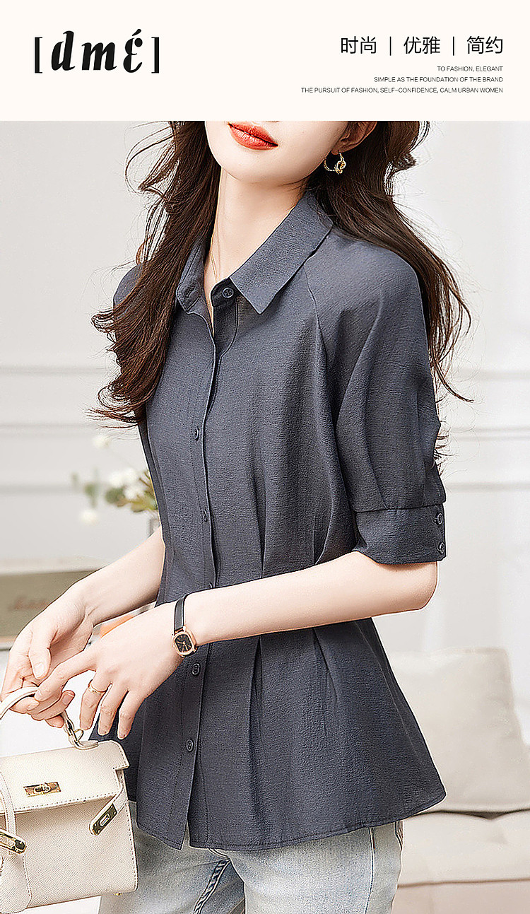 商品名称:【日杂OOTD】夏轻熟风醋酸涤泡泡纱衬衫收腰藏肉衬衣女装上衣 943681