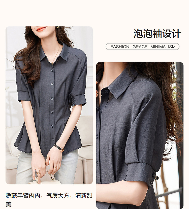 【日杂OOTD】夏轻熟风醋酸涤泡泡纱衬衫收腰藏肉衬衣女装上衣 943681