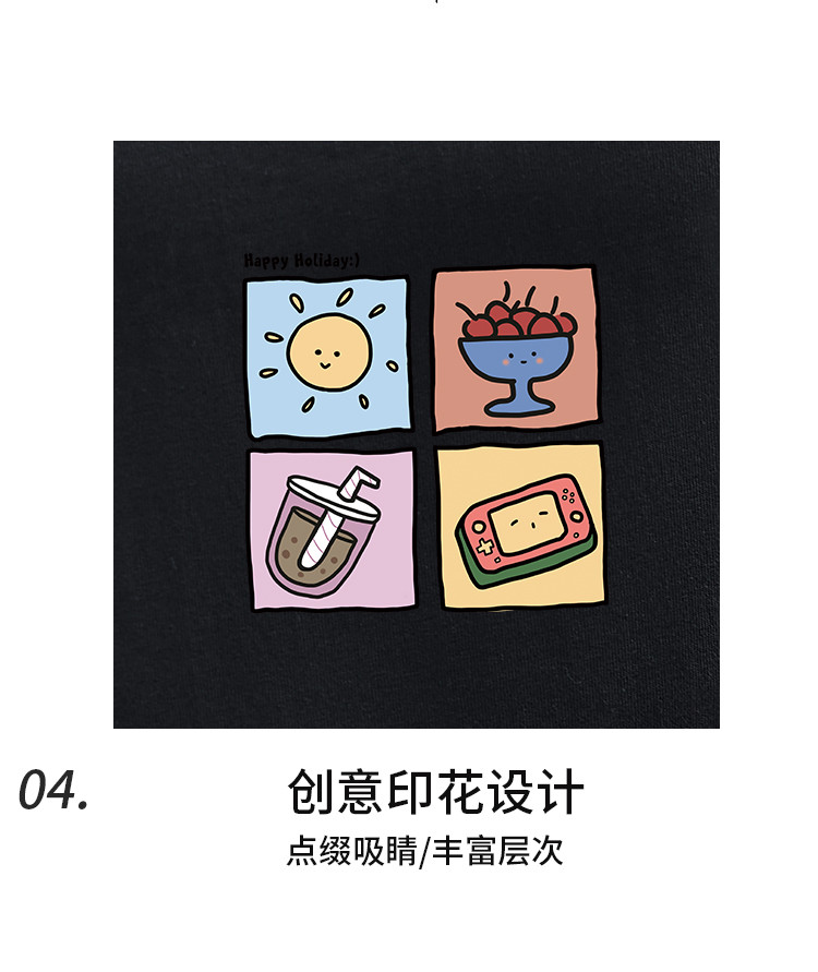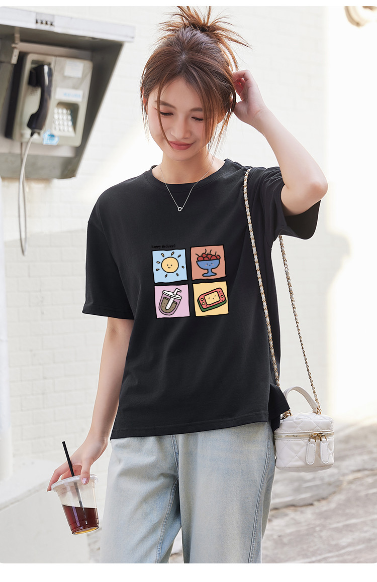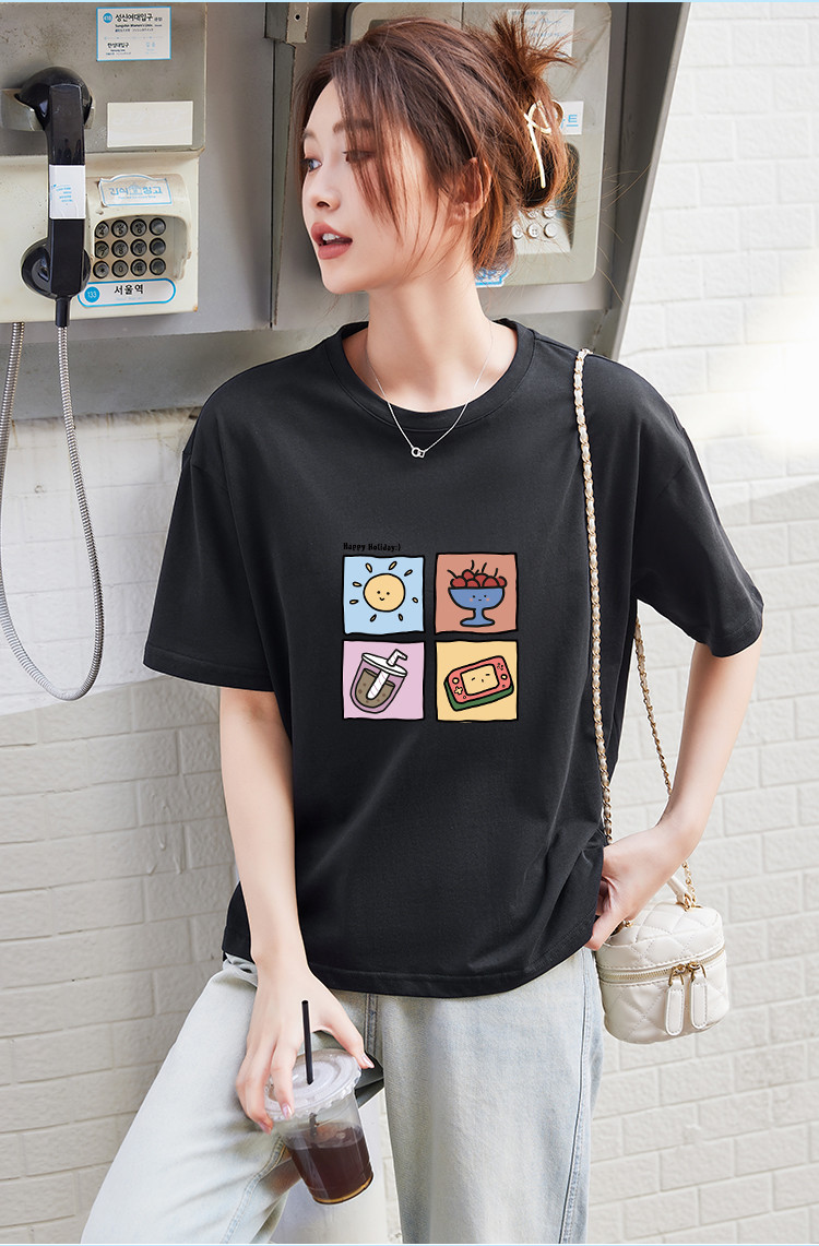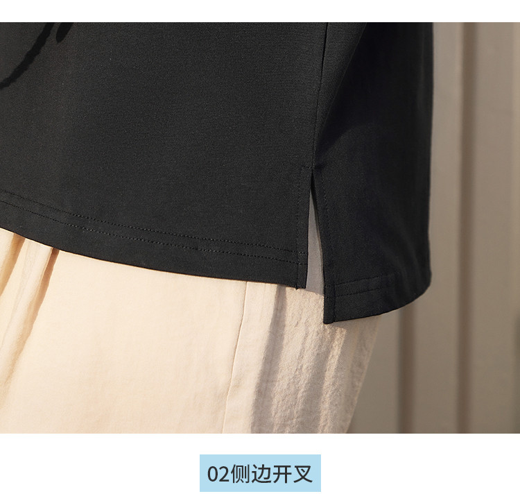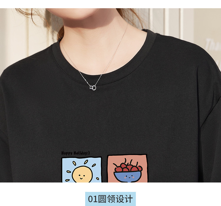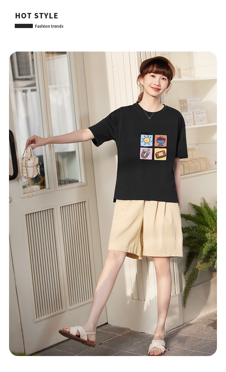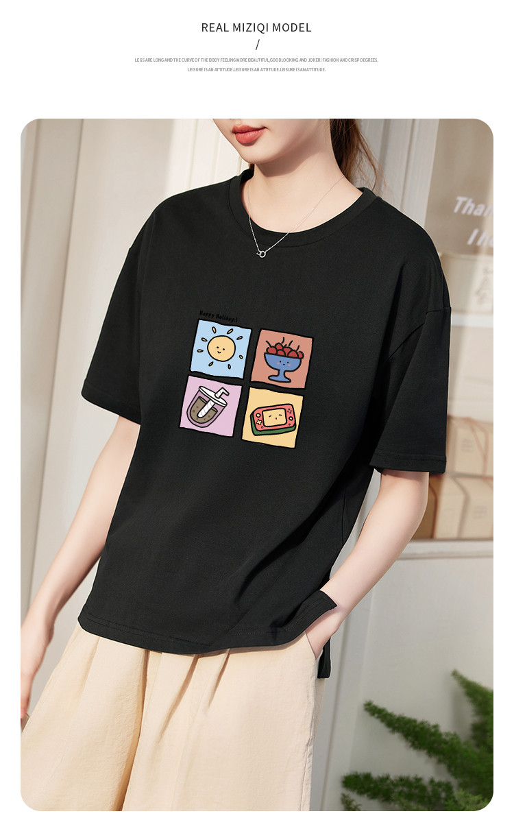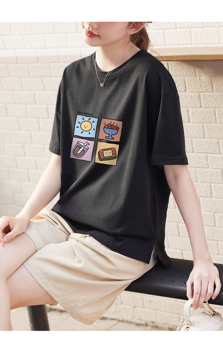 米子旗趣味卡通印花大码T恤夏季女通勤舒适侧边开叉短袖上衣 225946