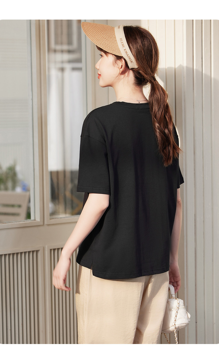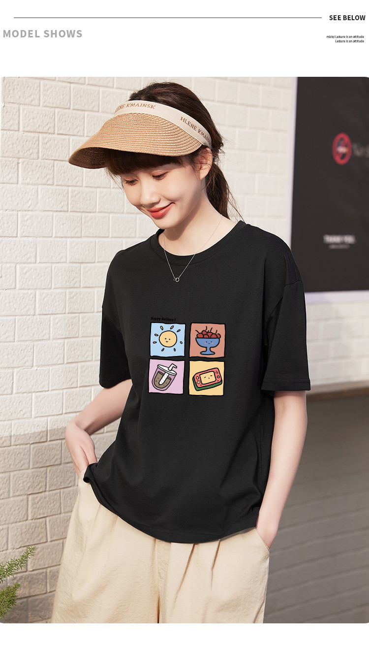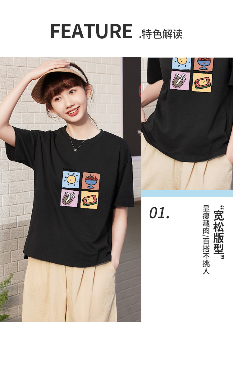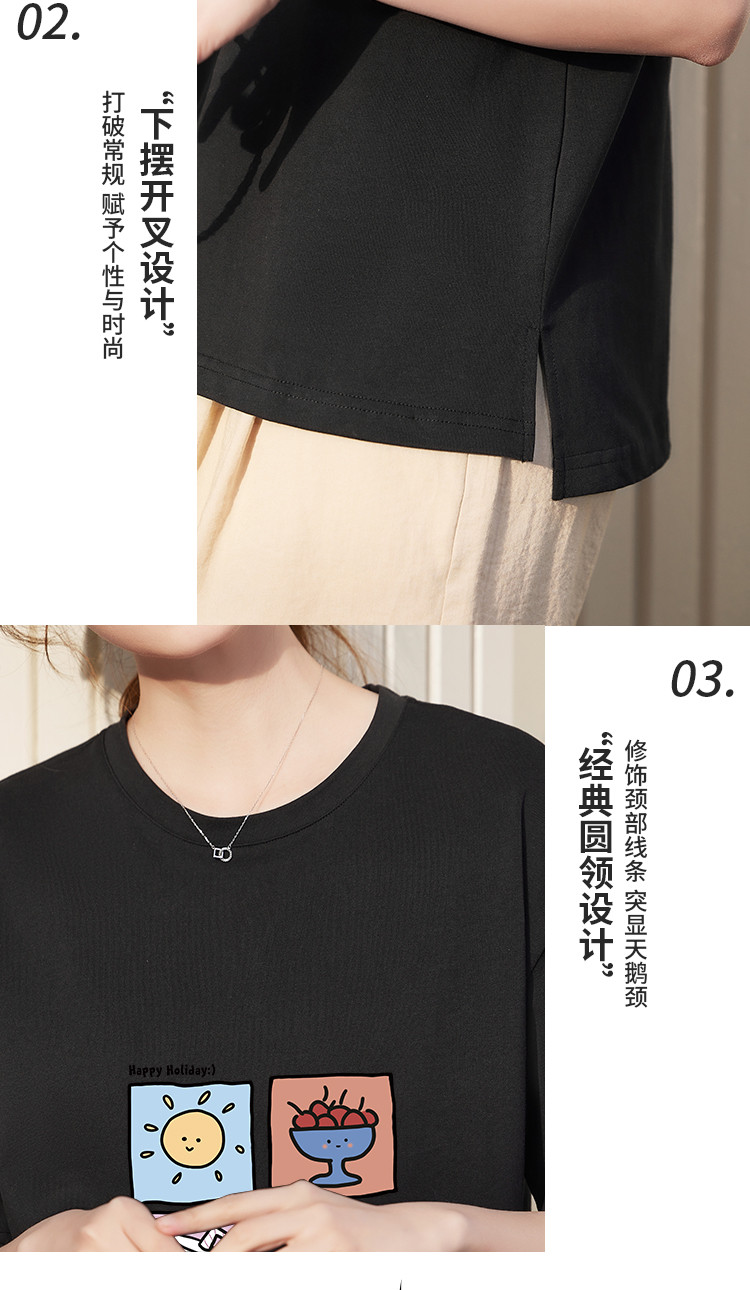 商品名称:米子旗趣味卡通印花大码T恤夏季女通勤舒适侧边开叉短袖上衣 225946