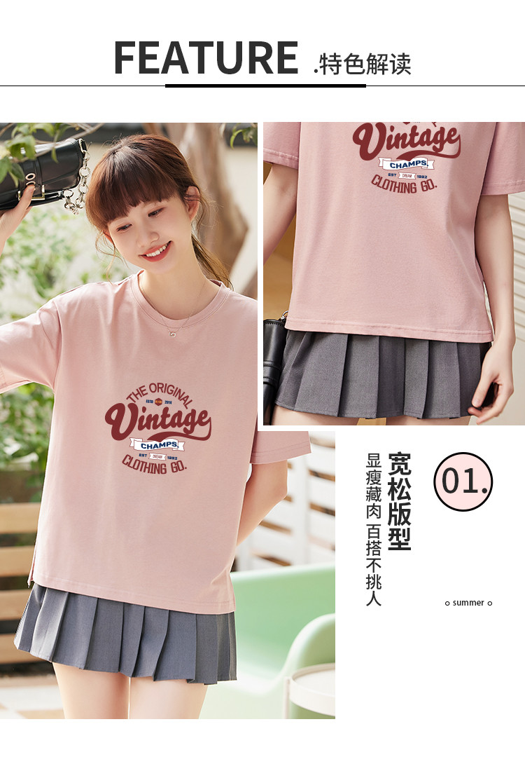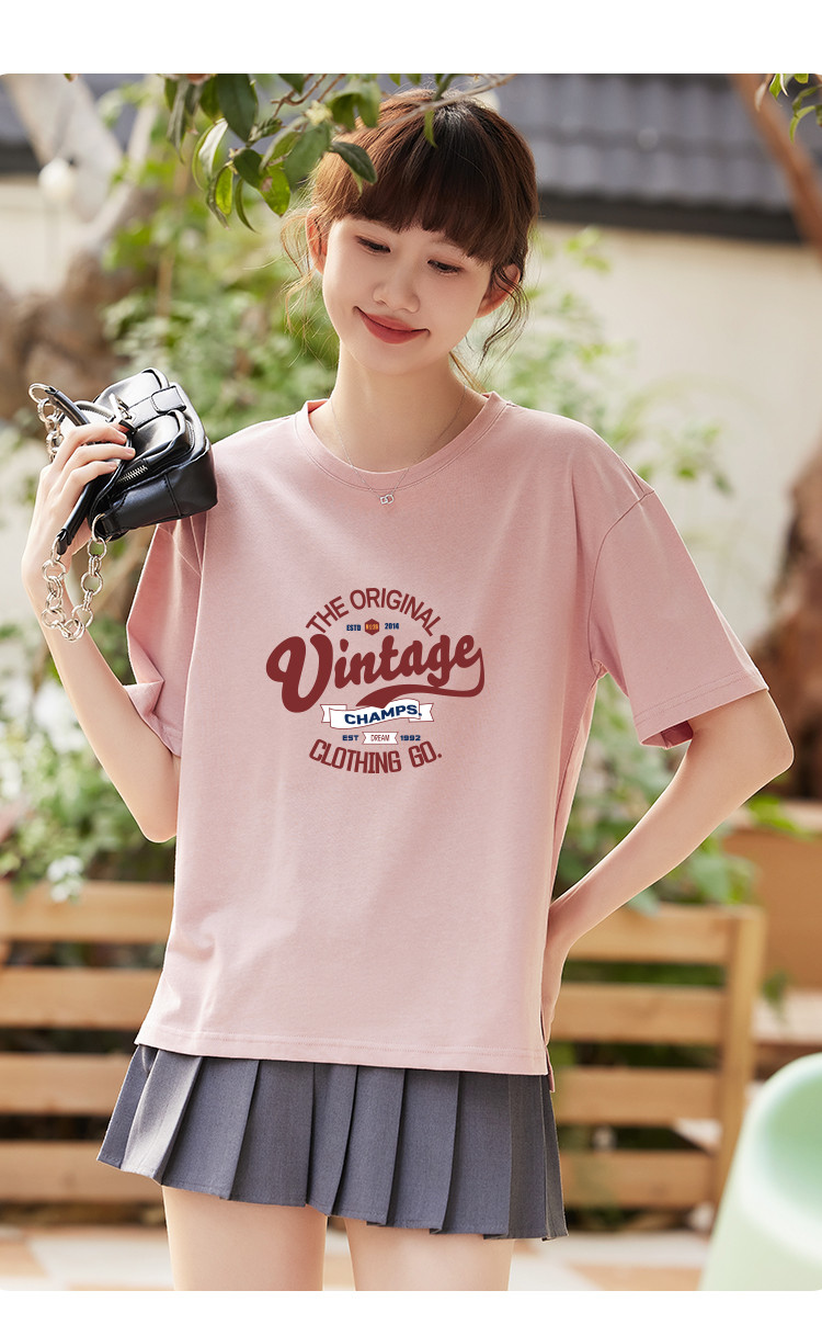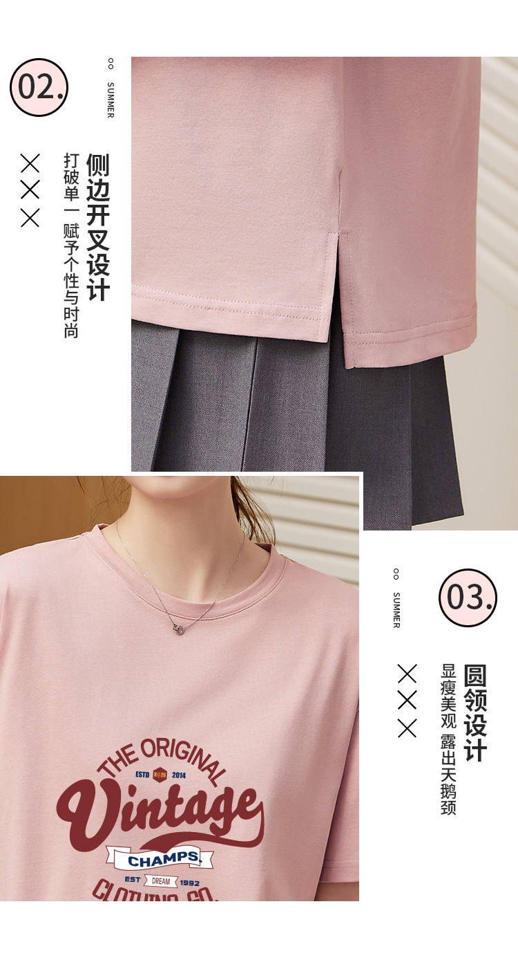 米子旗字母印花圆领女式大码T恤侧边开叉通勤舒适短袖上衣 230042
