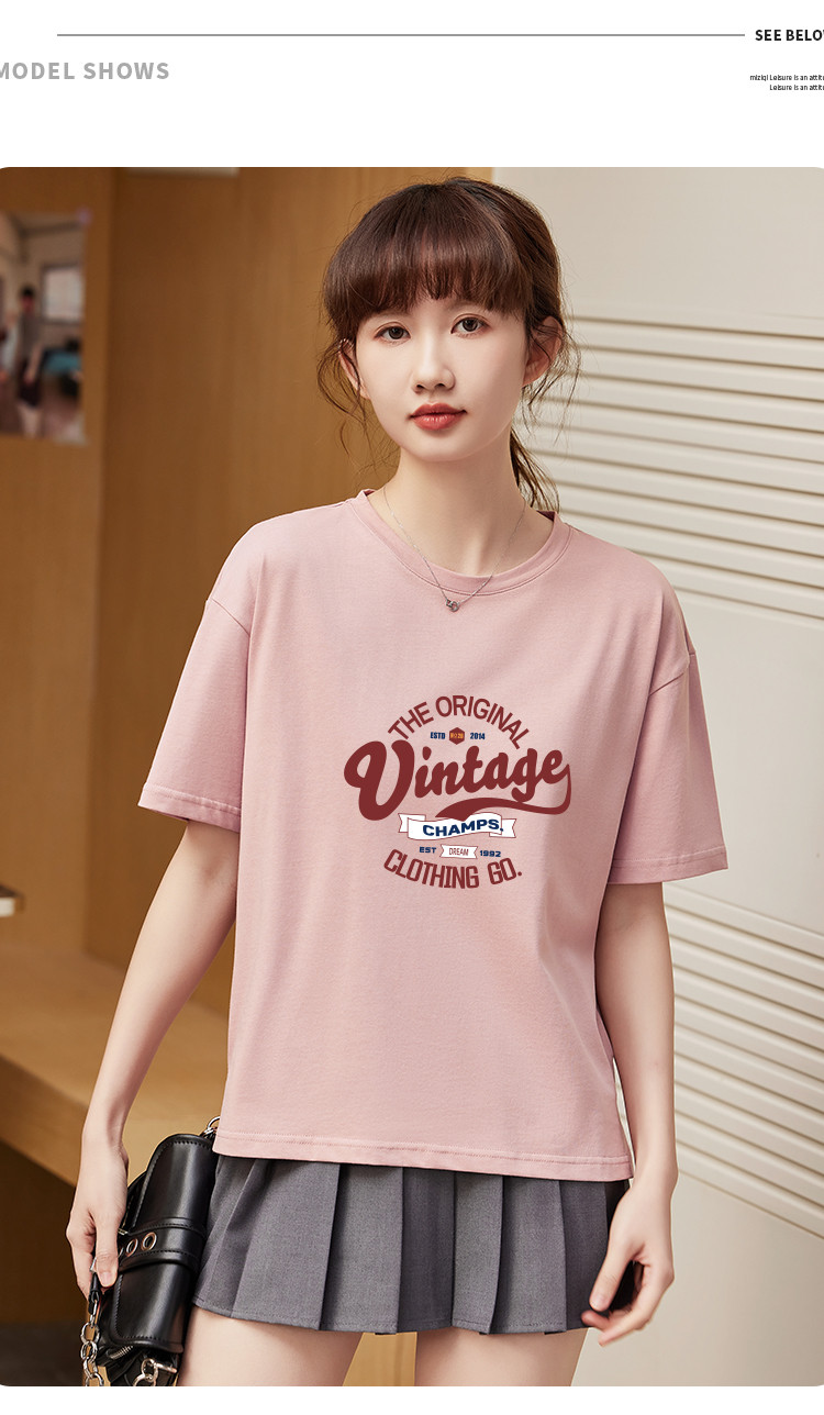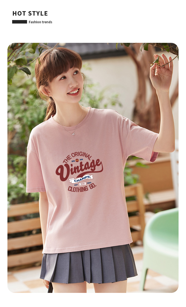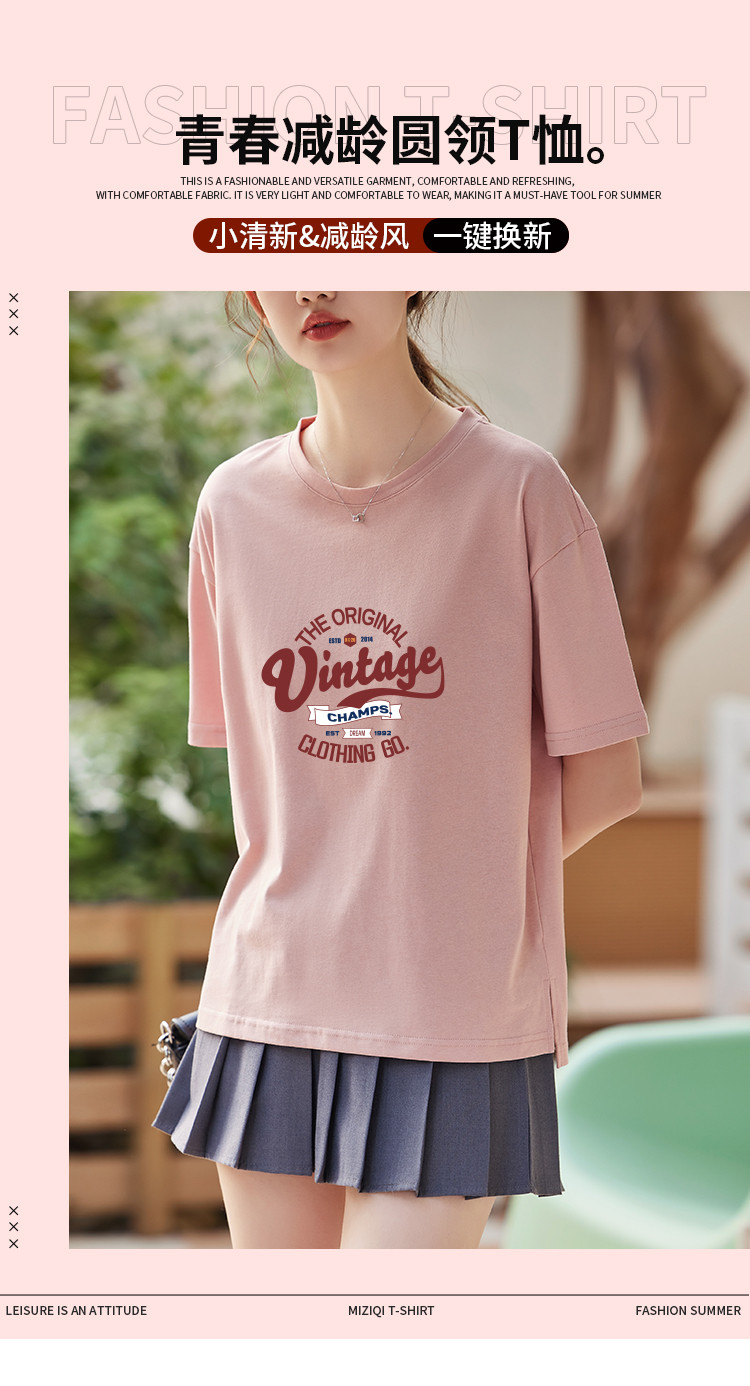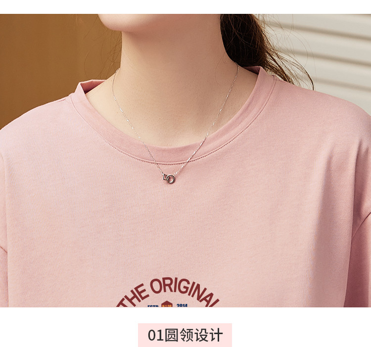 商品名称:米子旗字母印花圆领女式大码T恤侧边开叉通勤舒适短袖上衣 230042