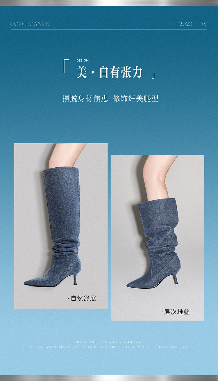 百丽女鞋子西部牛仔靴堆堆靴女靴子高筒靴长靴 967258