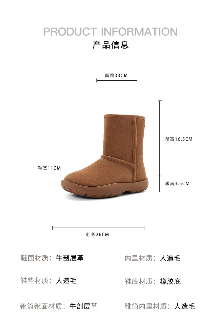 商品名称:百丽高帮棉鞋雪地靴冬季女靴真皮保暖加绒短靴 725146
