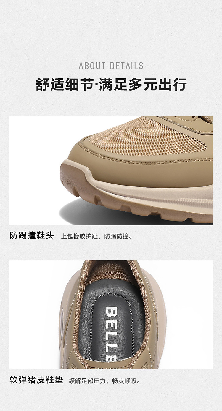 百丽男鞋夏季款网面透气休闲运动鞋轻便套脚跑步休闲鞋子 768986