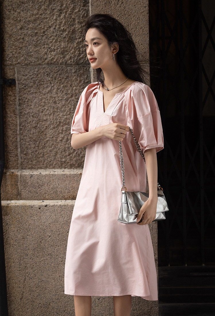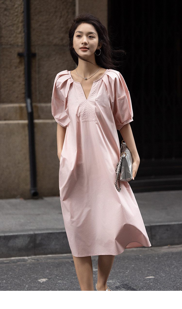 商品名称:【设计感v领中长裙】夏玫瑰碎梦插肩短袖中长款连衣裙 747202