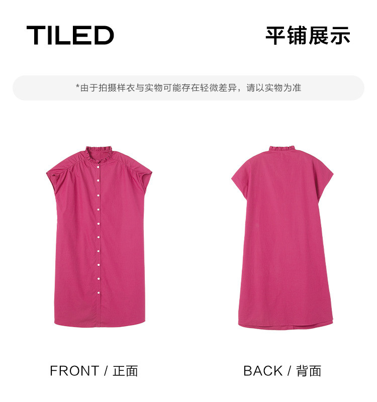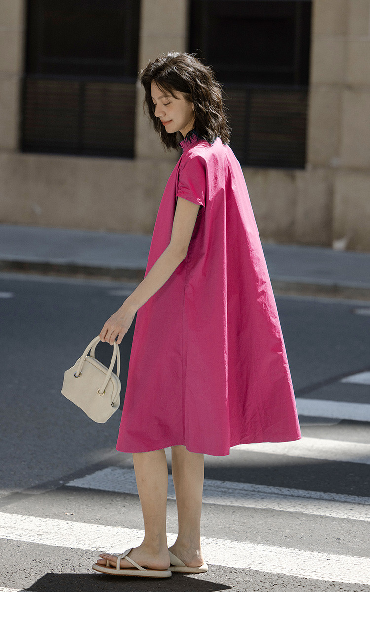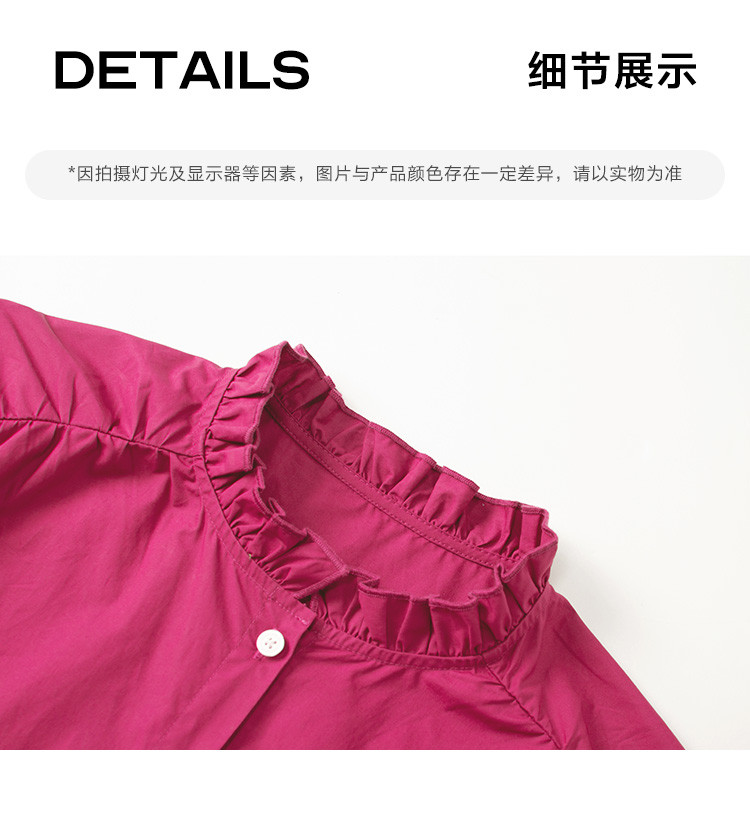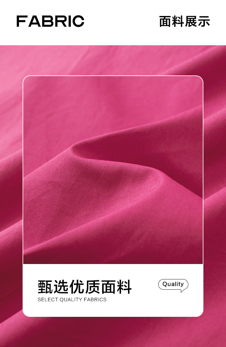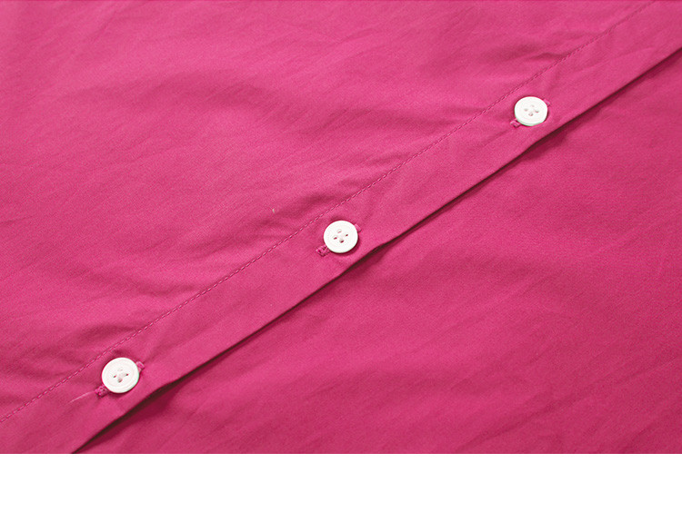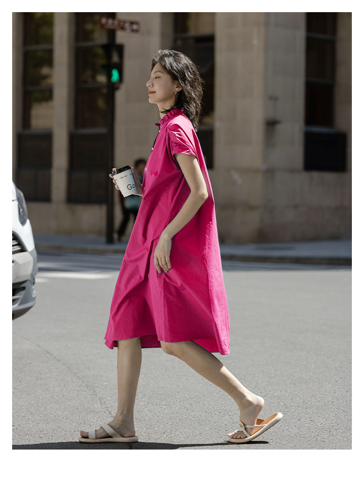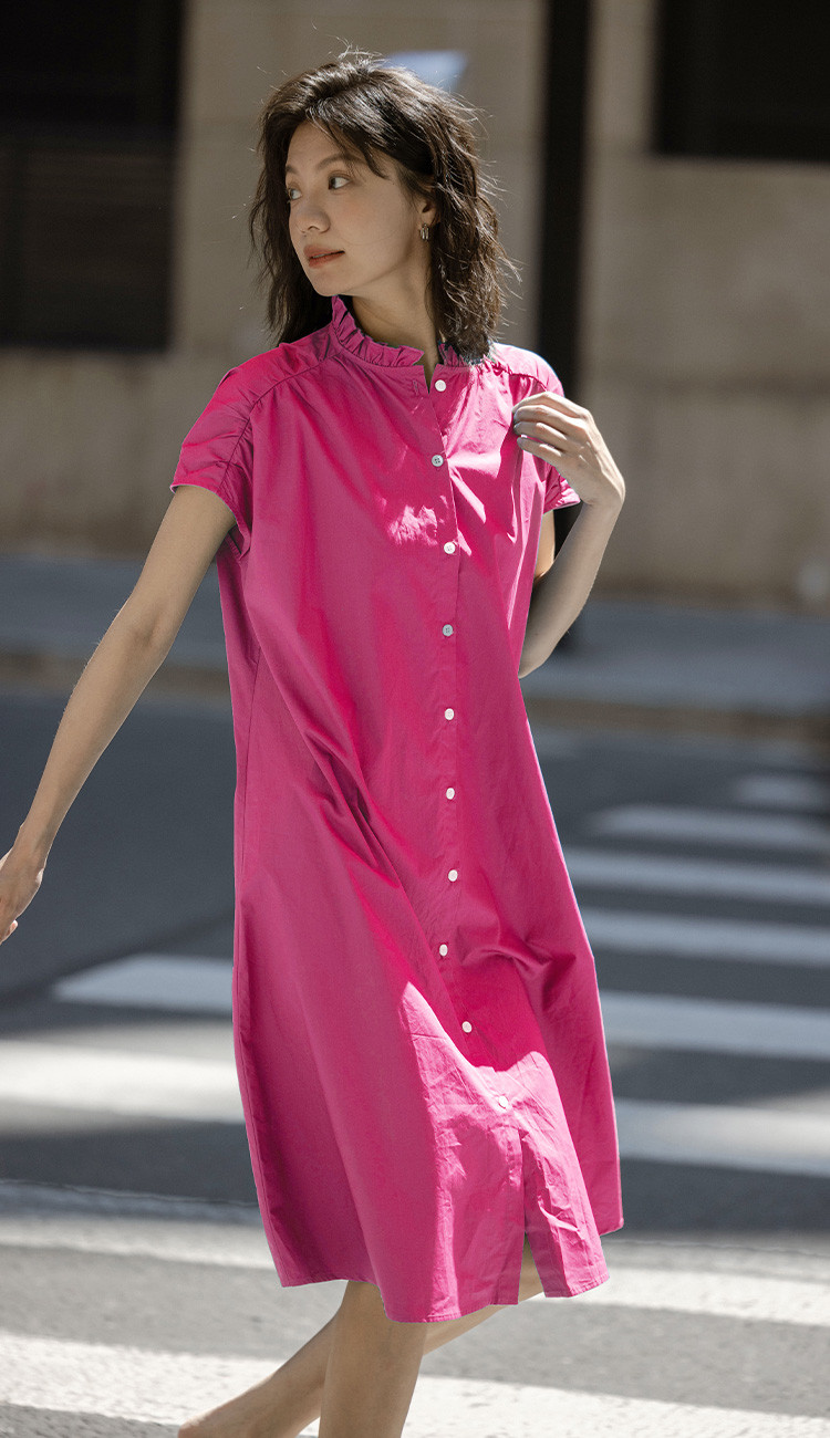 商品名称:【多巴胺玫红衬衫裙】夏肩部抽褶设计长短袖中长款连衣裙 149378