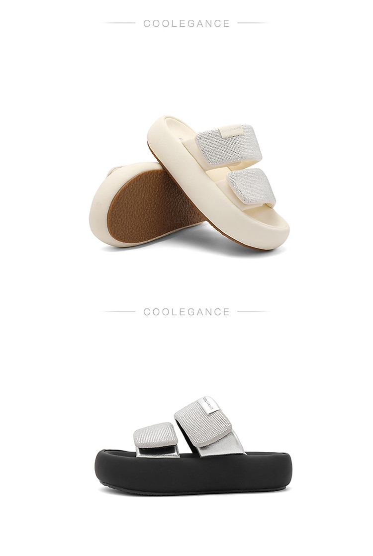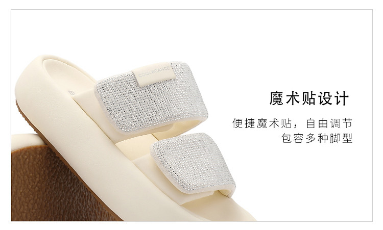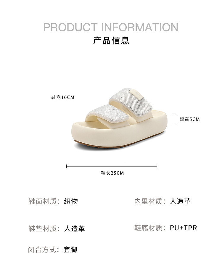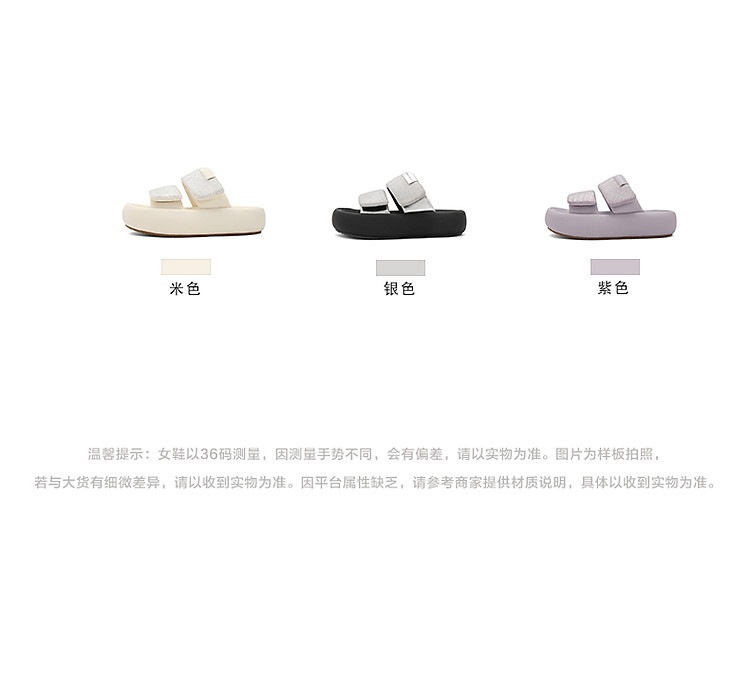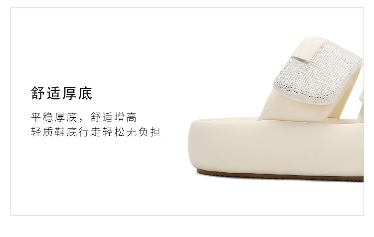 商品名称:百丽女鞋子膨膨一字带水钻凉拖鞋厚底沙滩拖鞋女夏外穿 986202