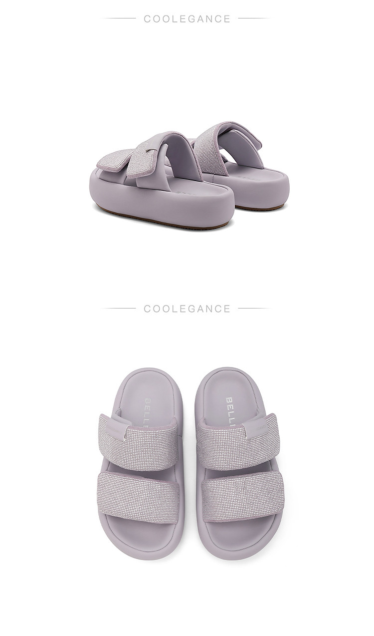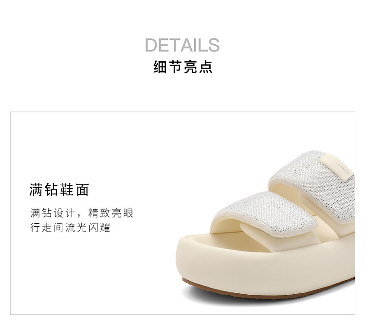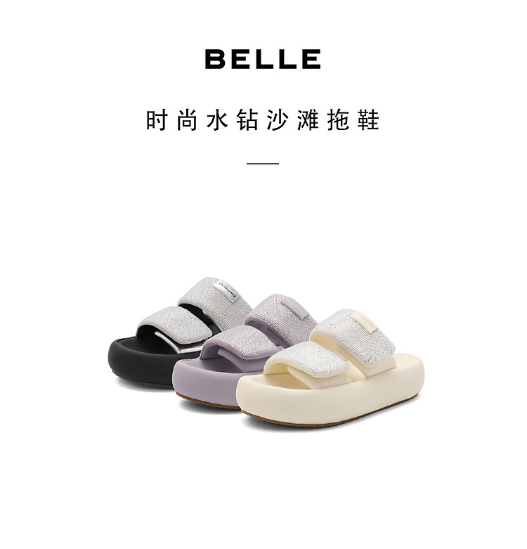 百丽女鞋子膨膨一字带水钻凉拖鞋厚底沙滩拖鞋女夏外穿 986202