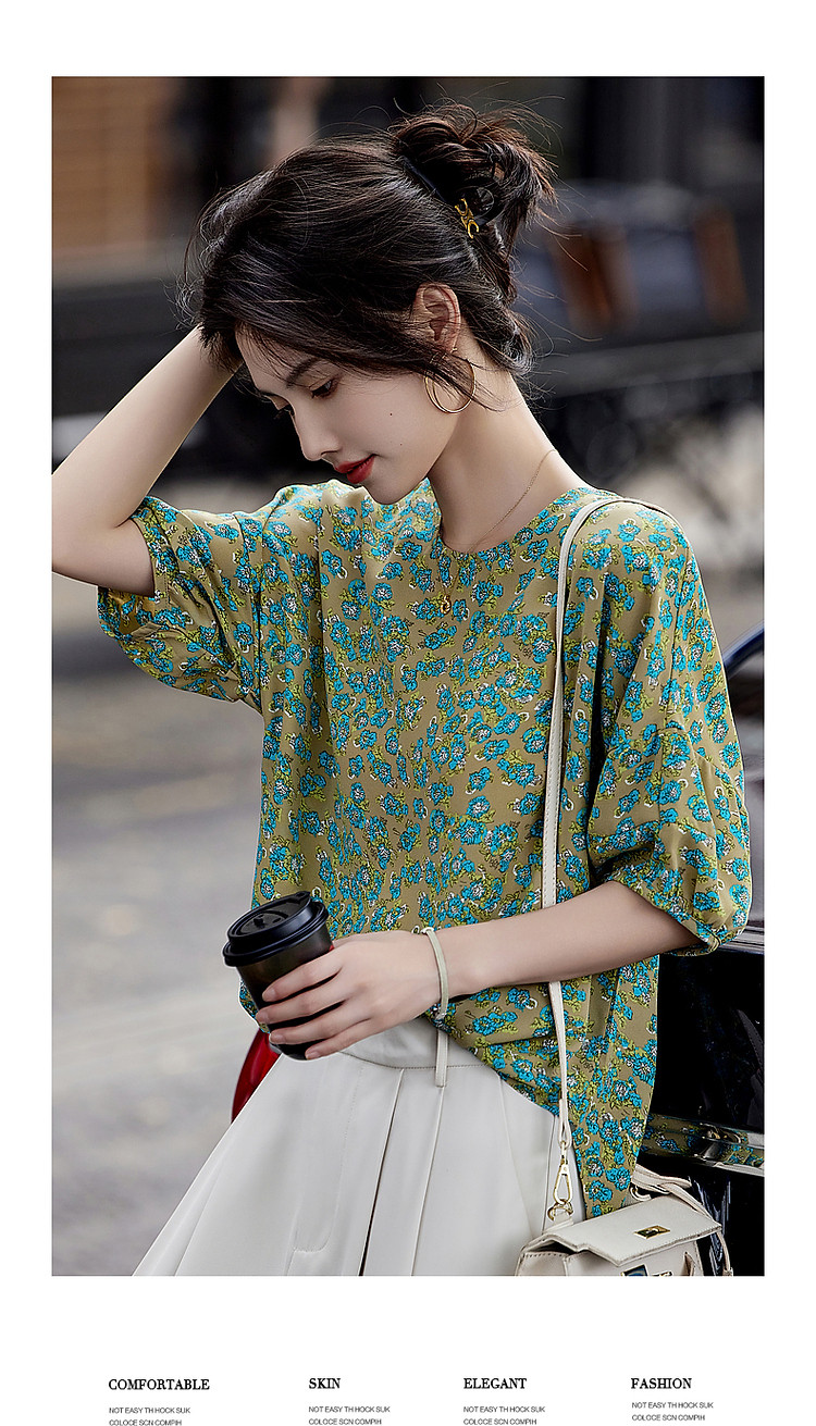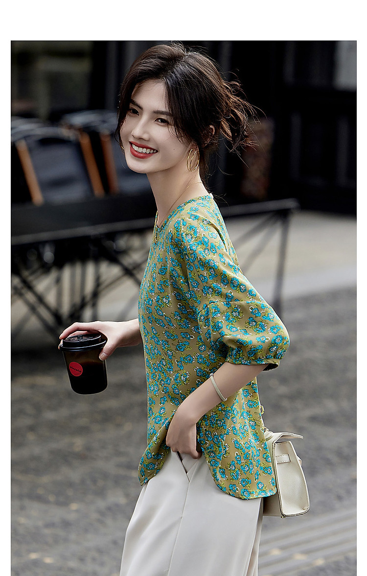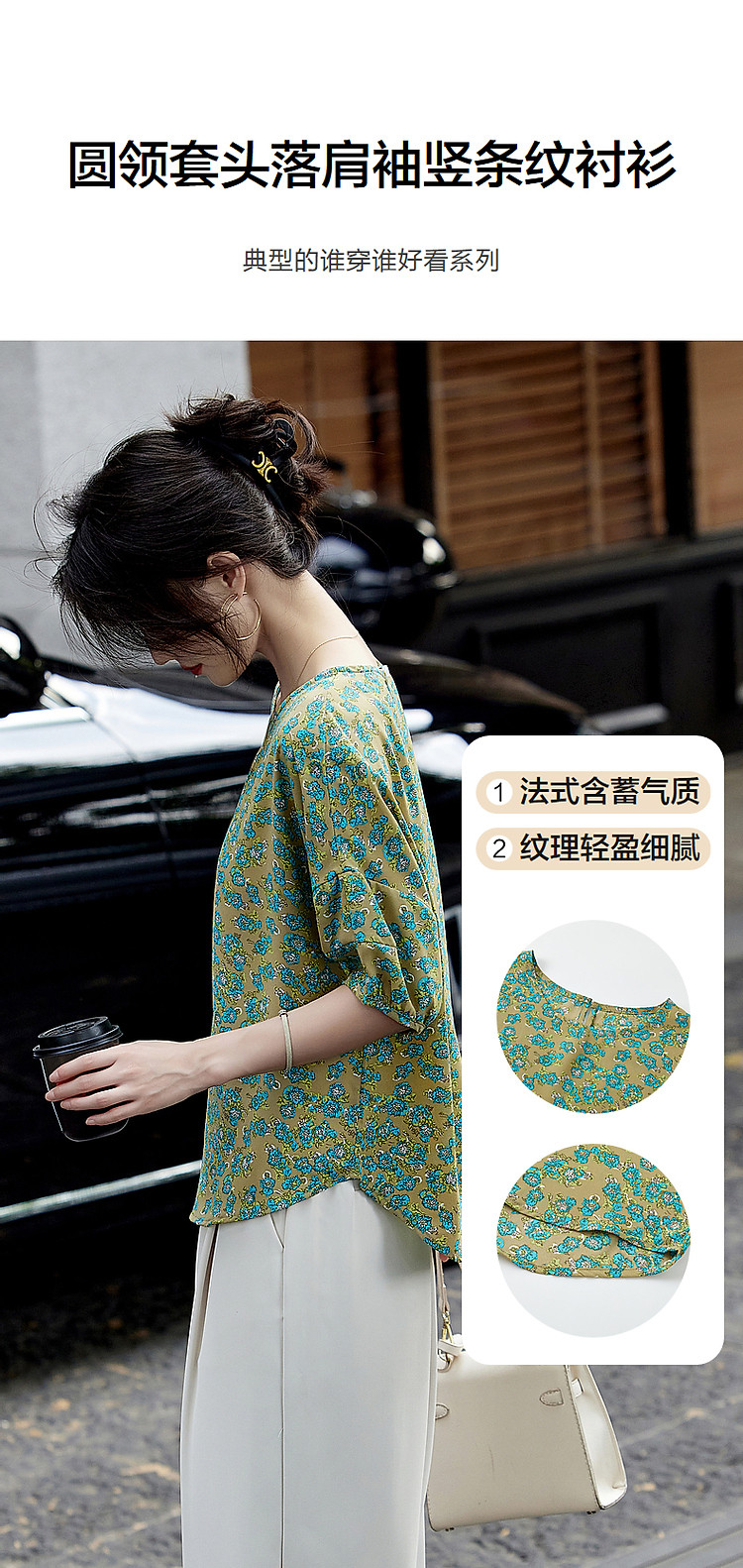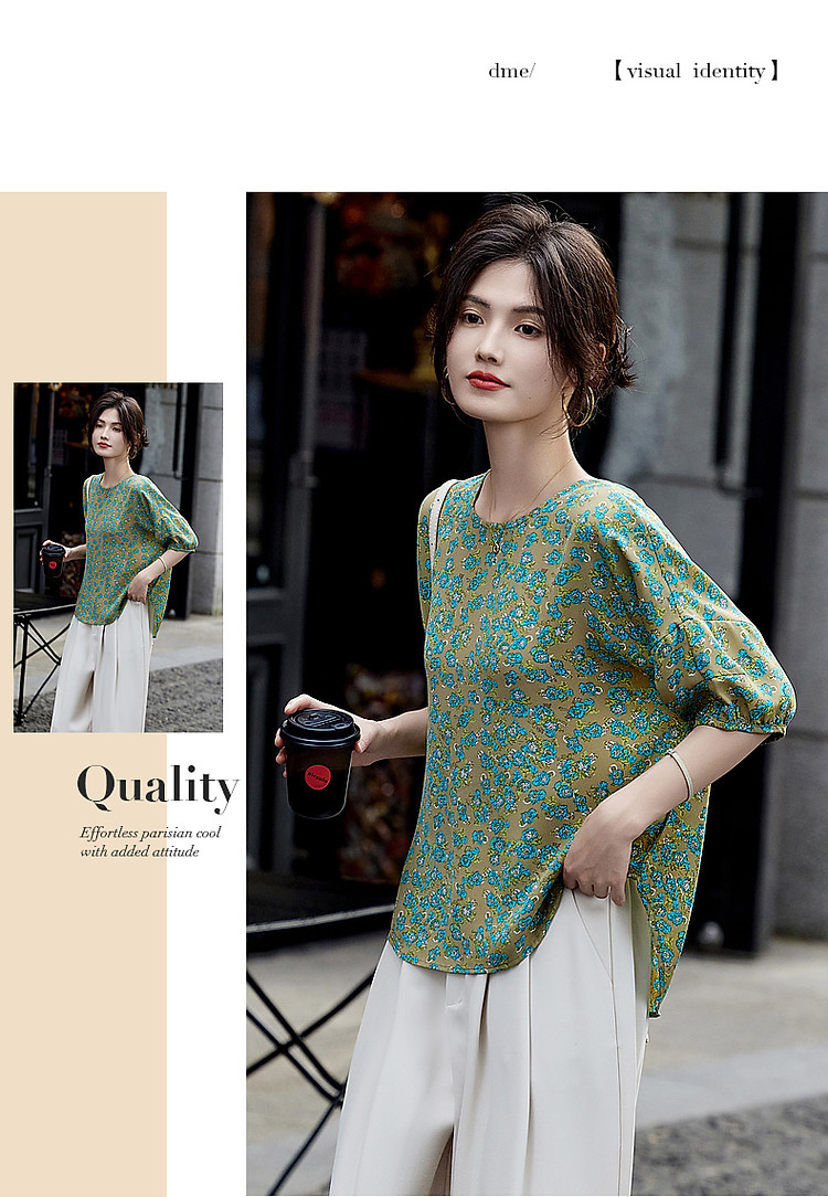 商品名称:【线条美学】夏法式复古条纹衬衫丝滑柔润舒适雪纺藏肉衬衣女上衣 703809