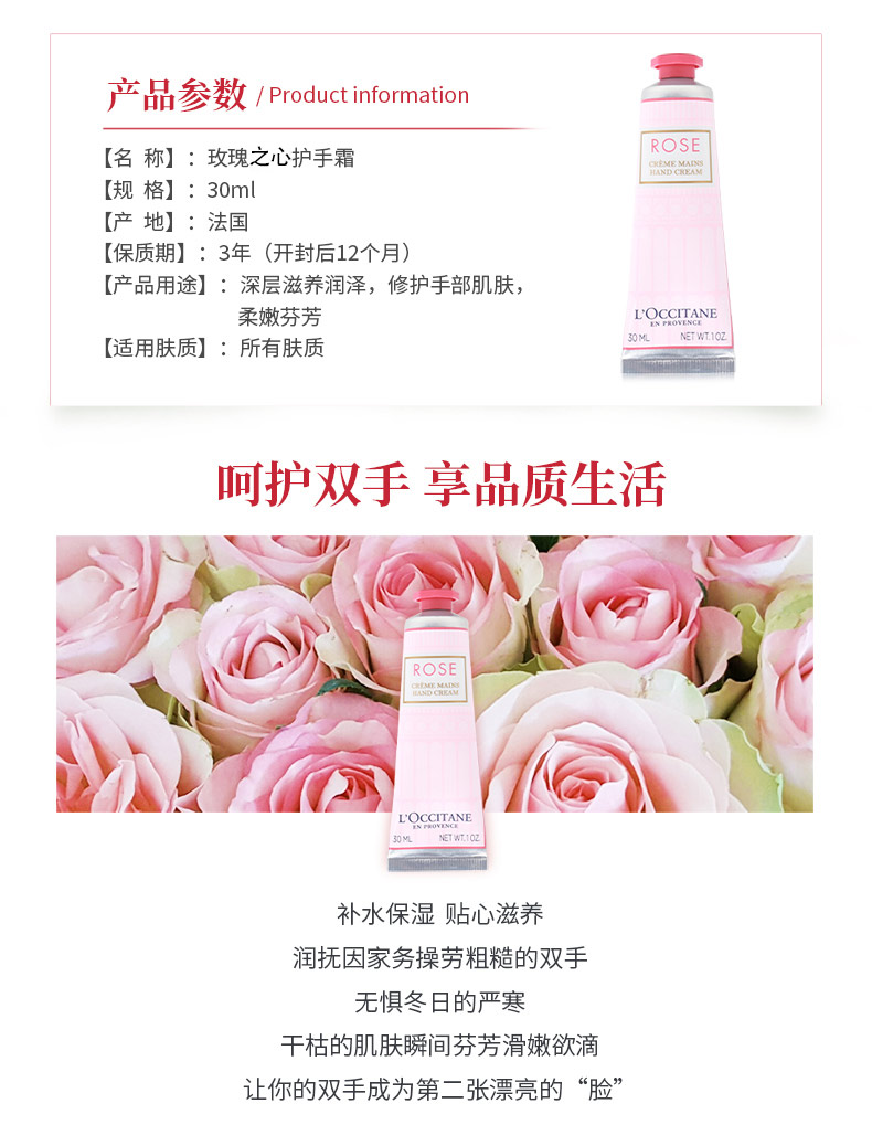 商品名称:L'Occitane/欧舒丹 玫瑰护手霜 30ml/75ml 新老款随机发