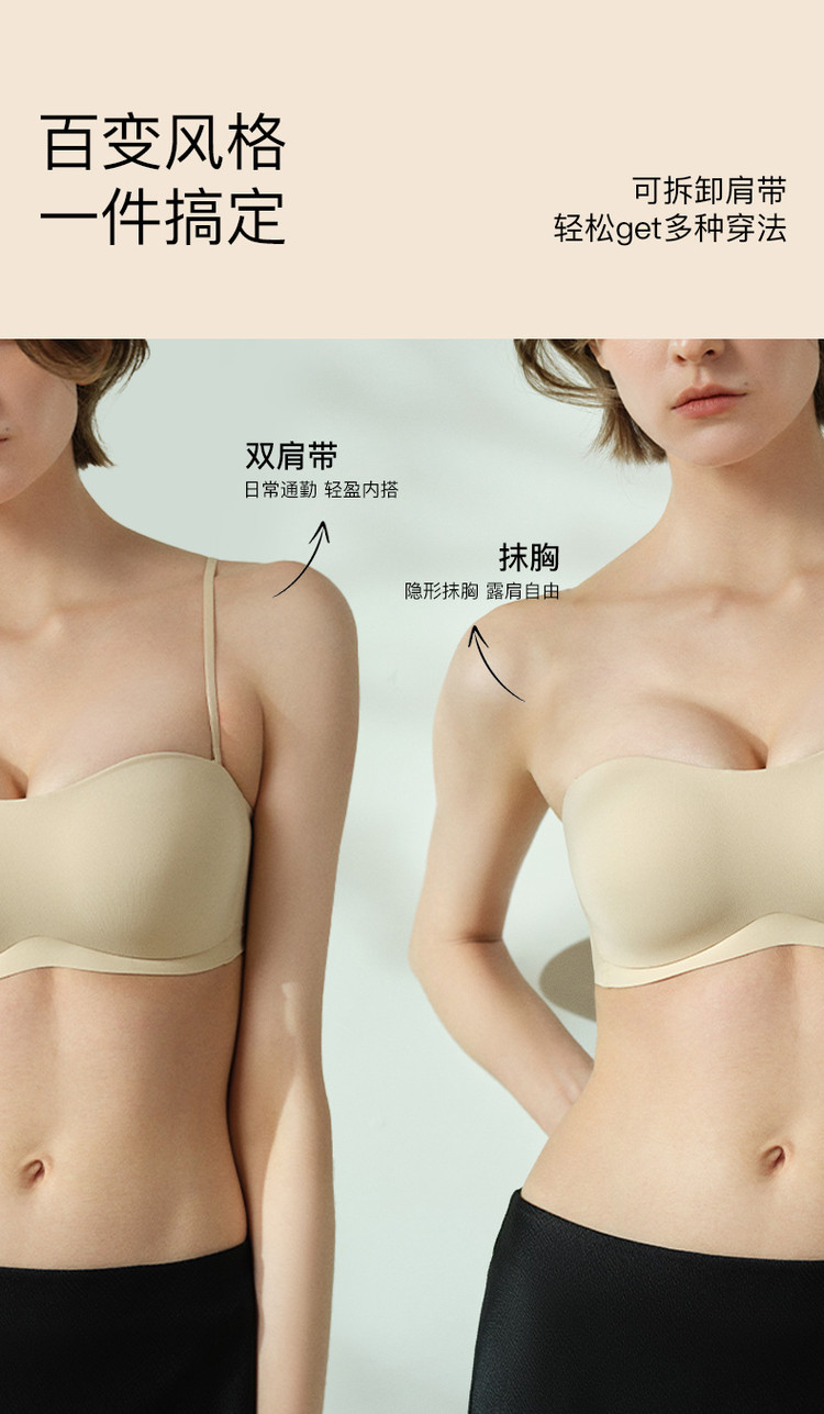 商品名称:【防滑抹胸】粉底液隐形内衣可拆肩带无痕聚拢文胸夏季薄款女 357888