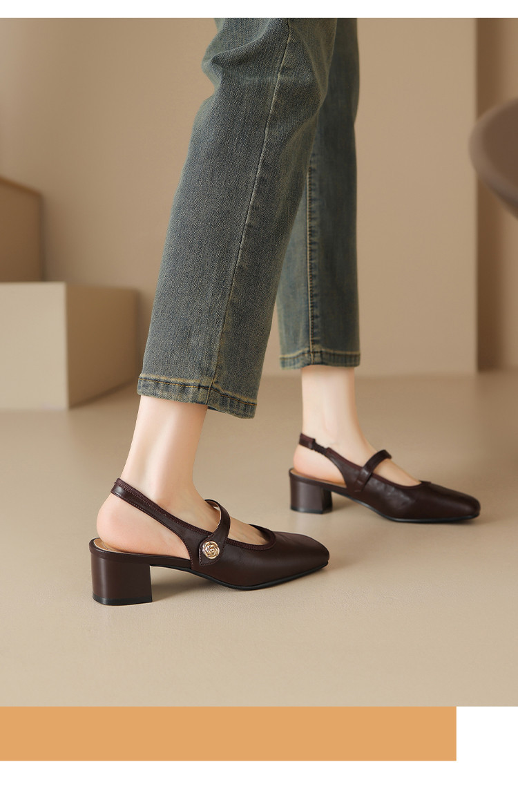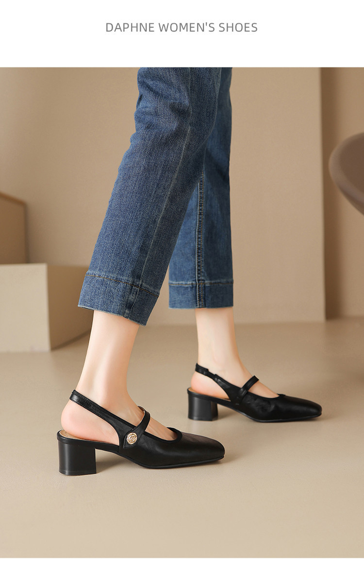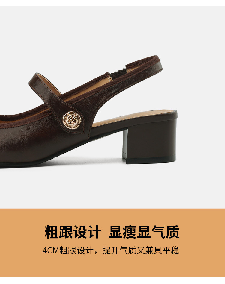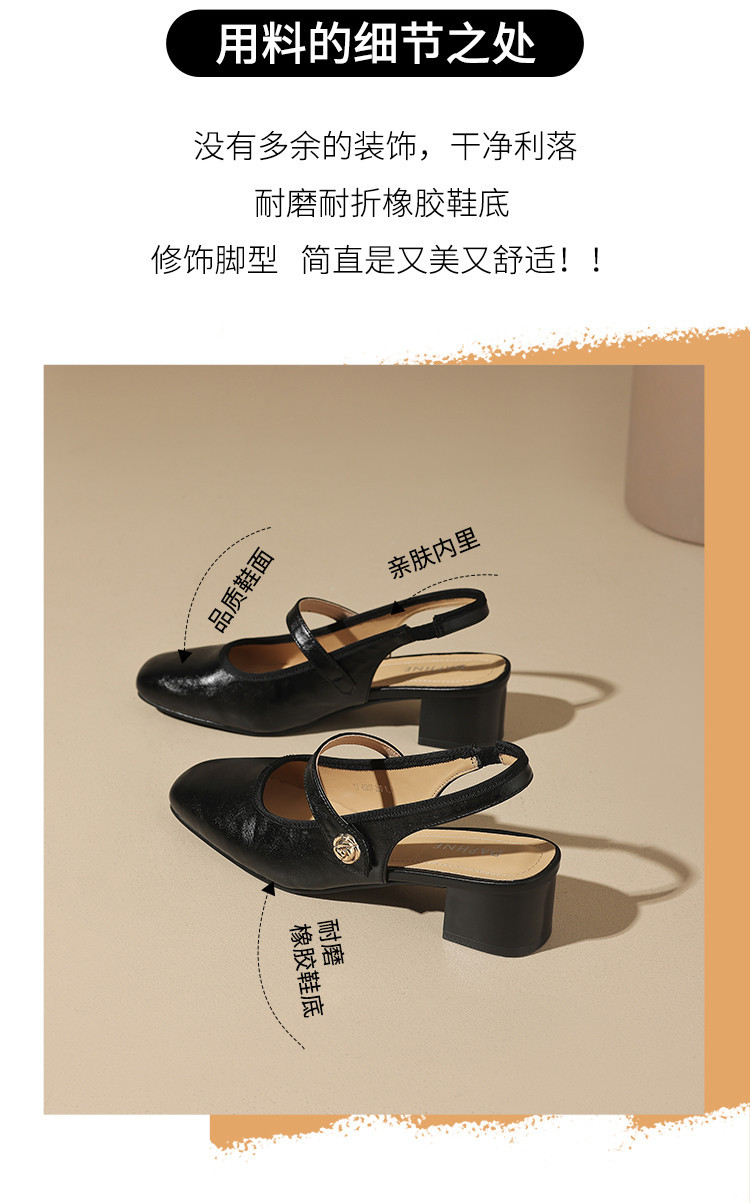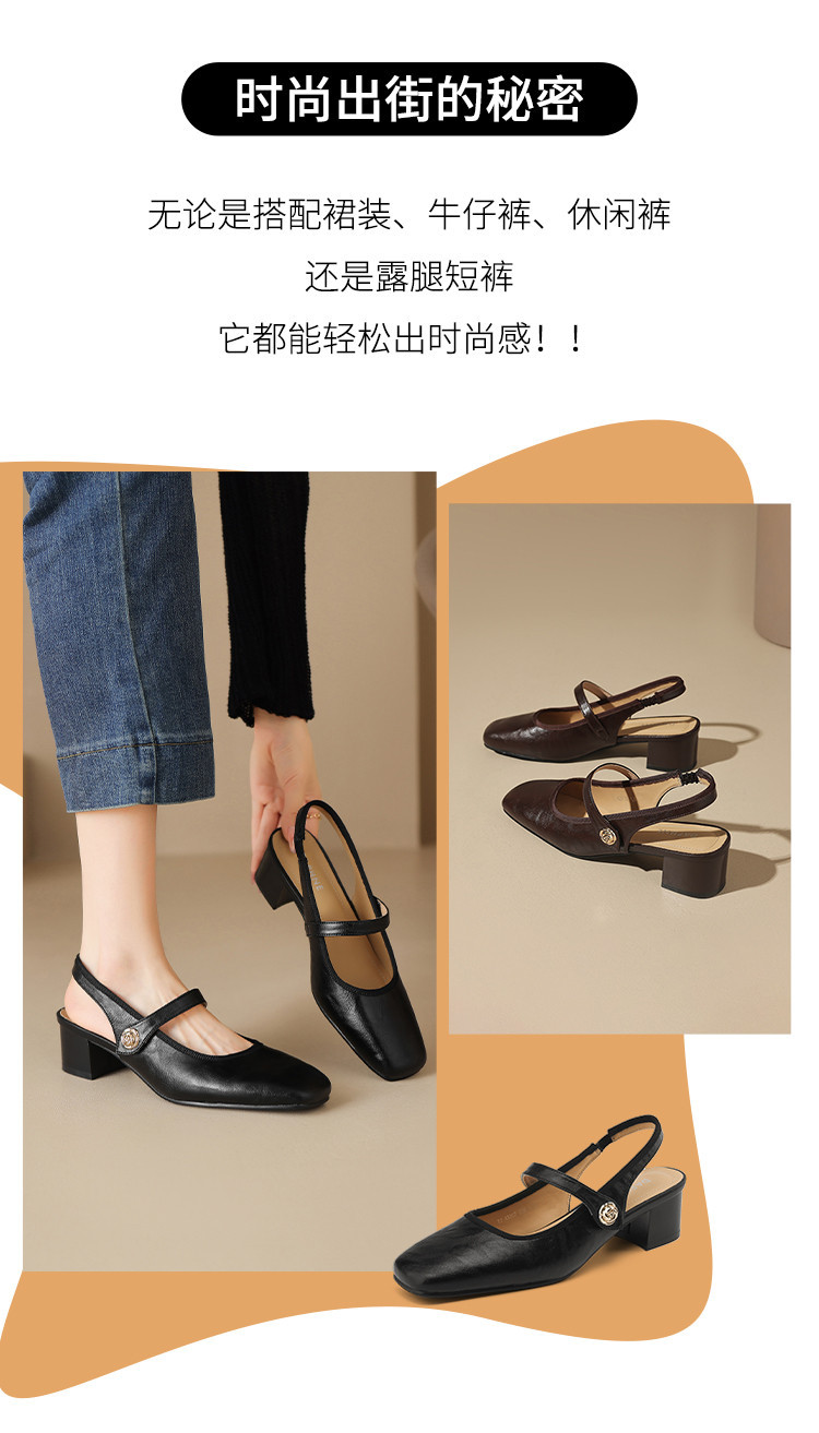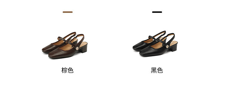 商品名称:粗跟方头后空凉鞋女时尚饰扣法式气质百搭女凉鞋 496090