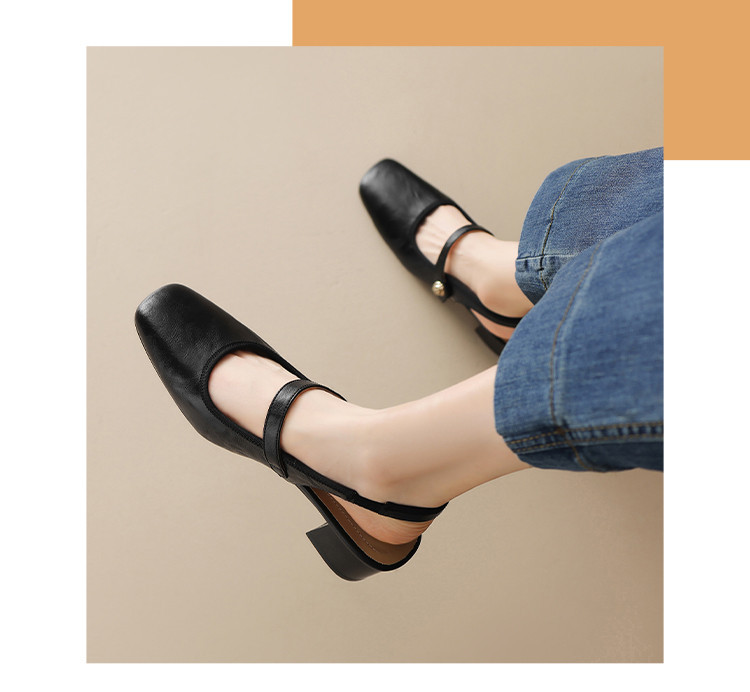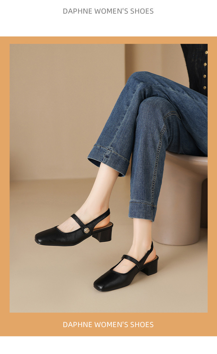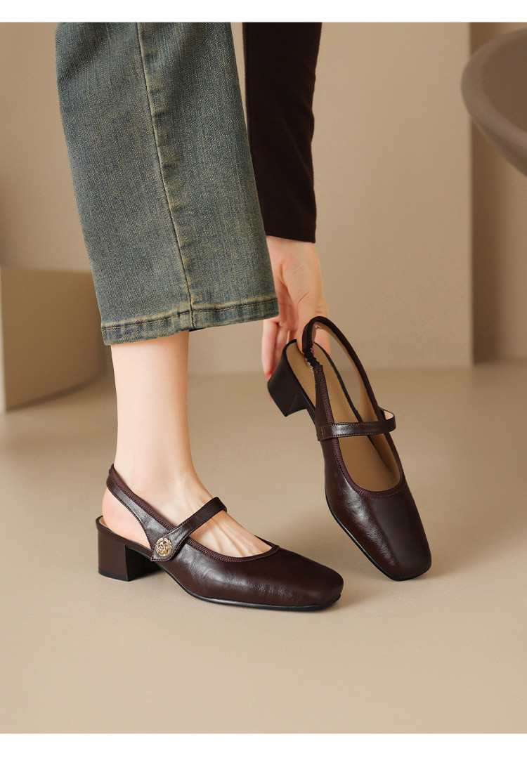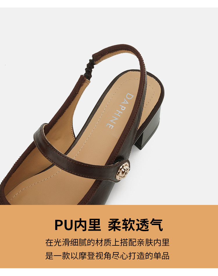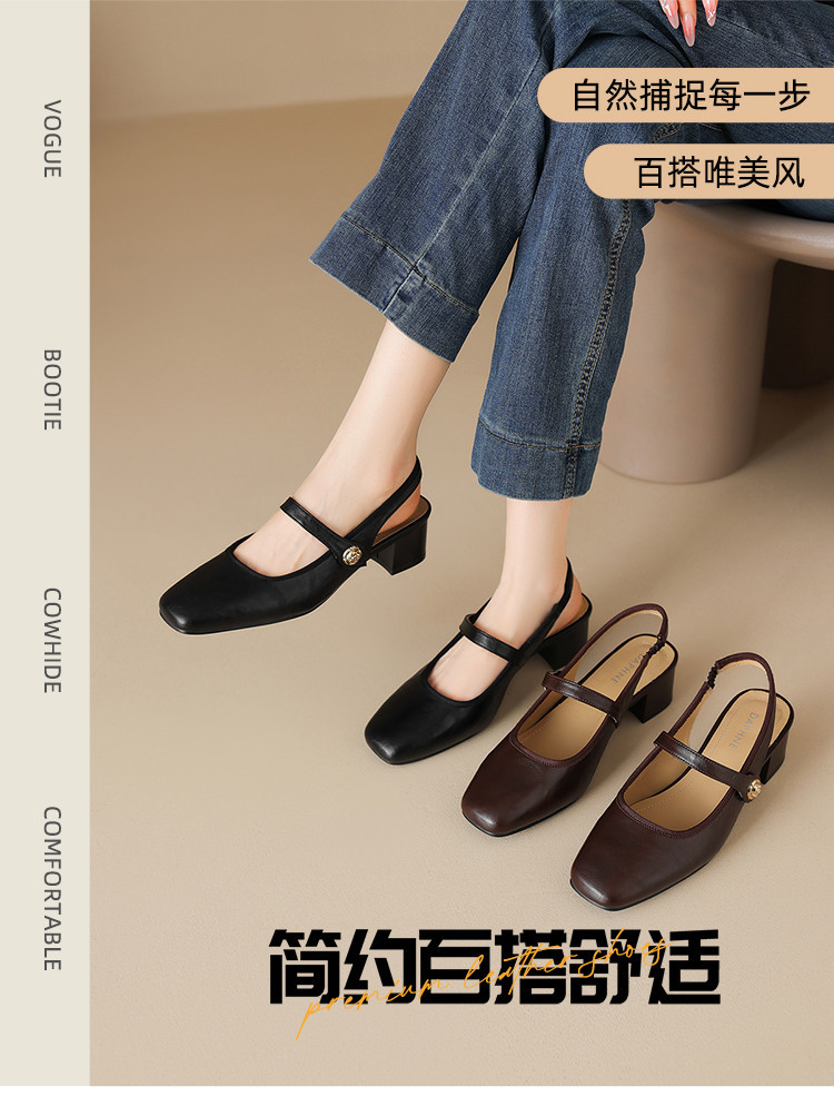 商品名称:粗跟方头后空凉鞋女时尚饰扣法式气质百搭女凉鞋 496090