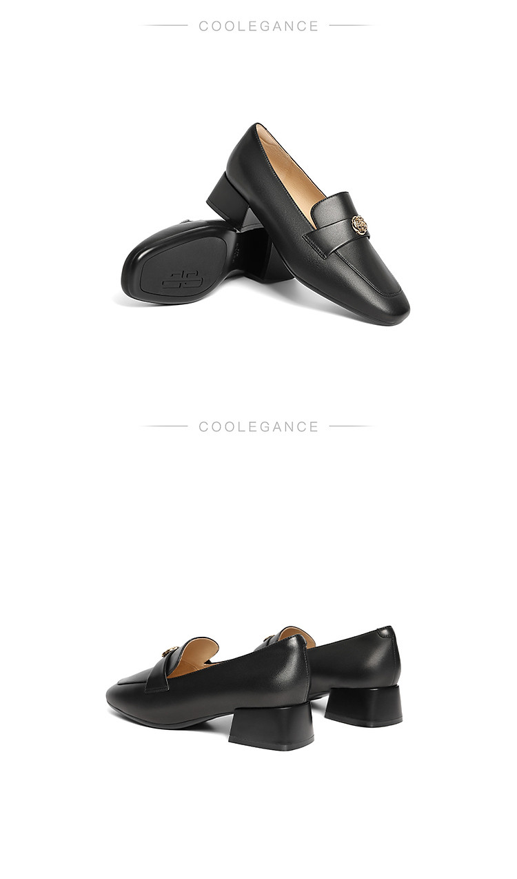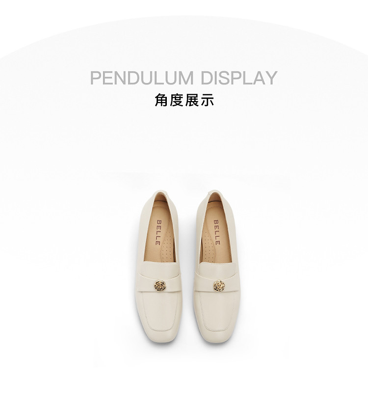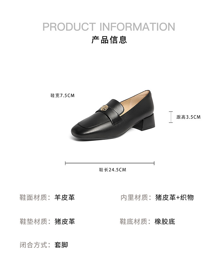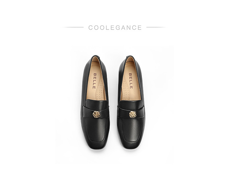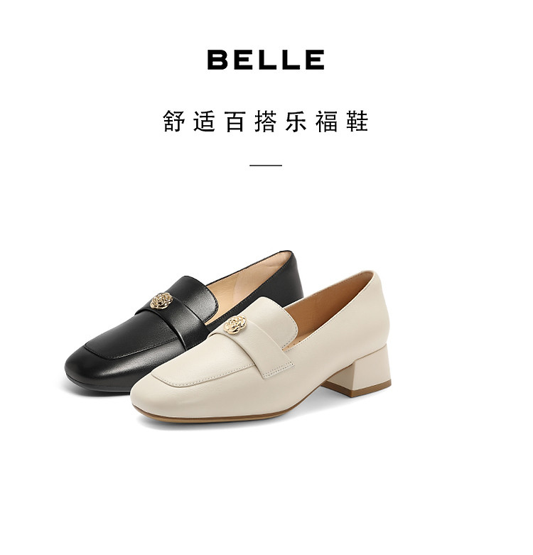 商品名称:百丽女鞋子黑色小皮鞋单鞋高跟一脚蹬上班穿不累脚乐福鞋 583386