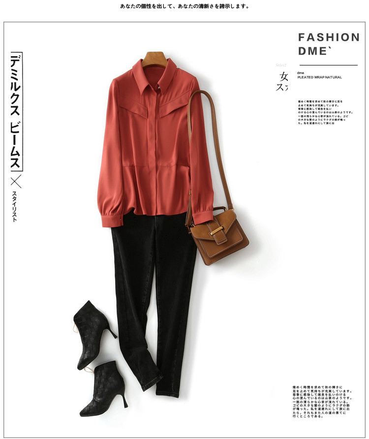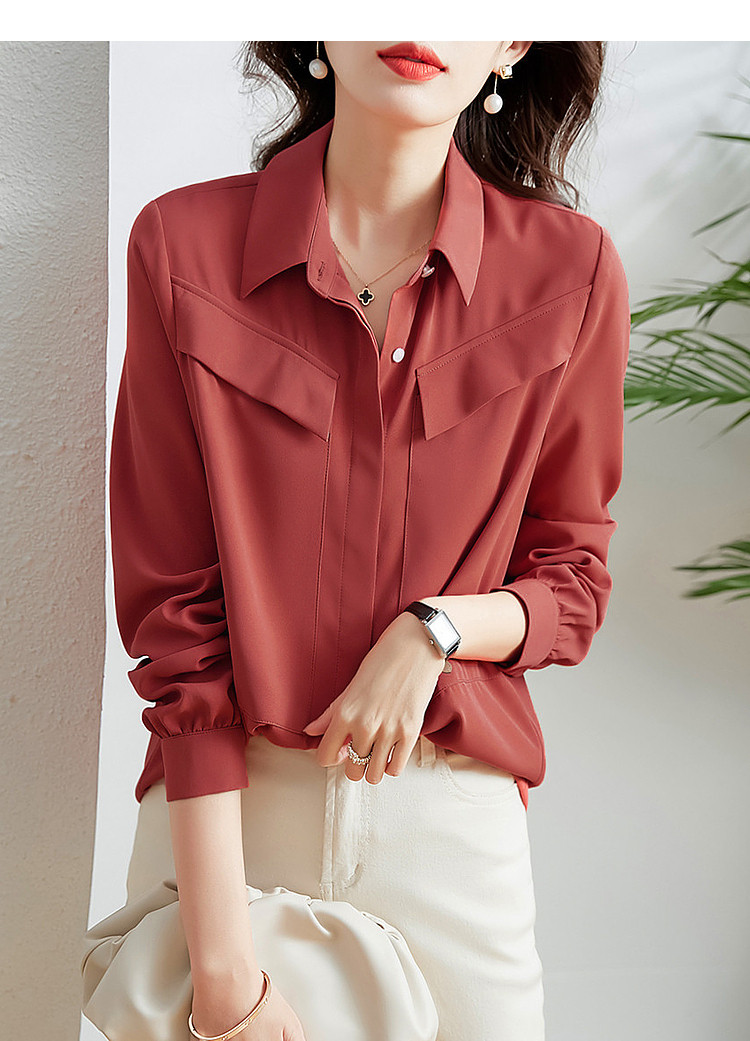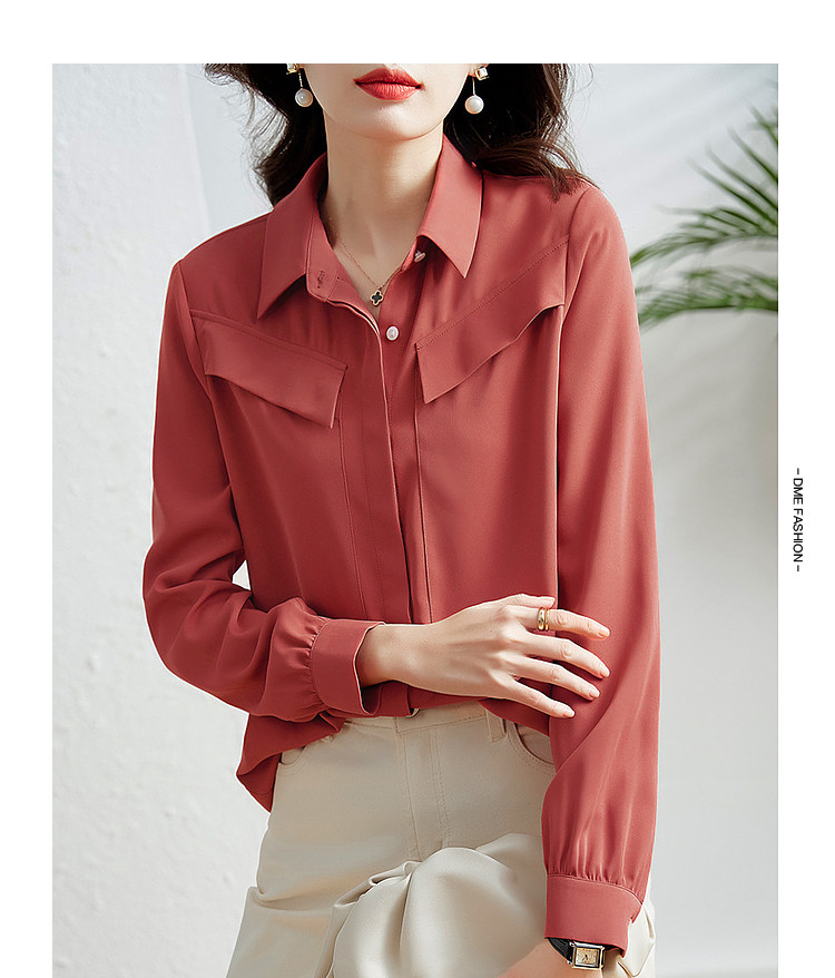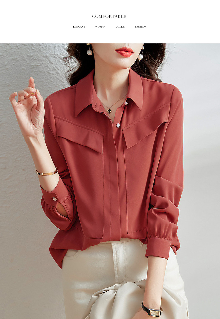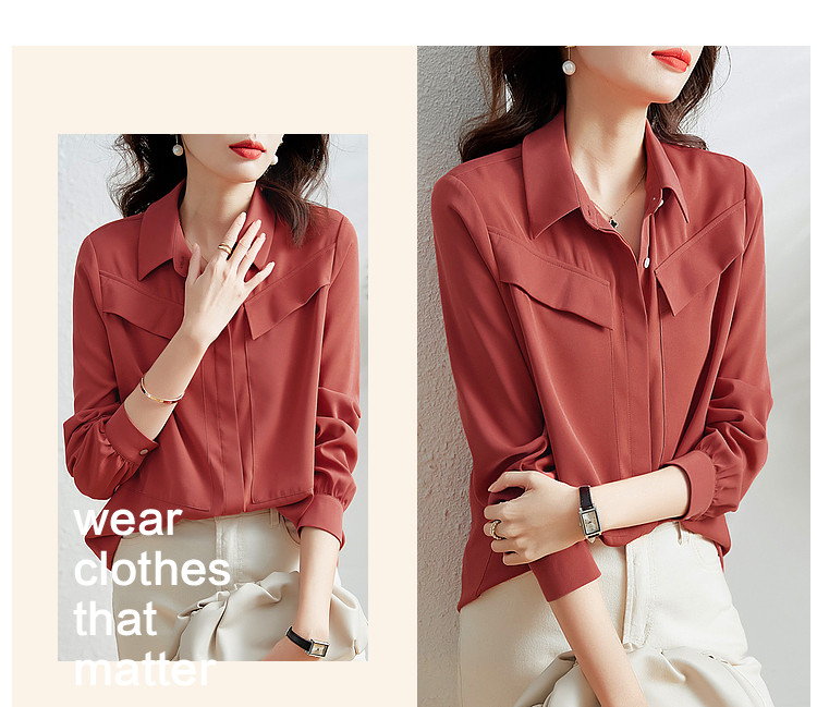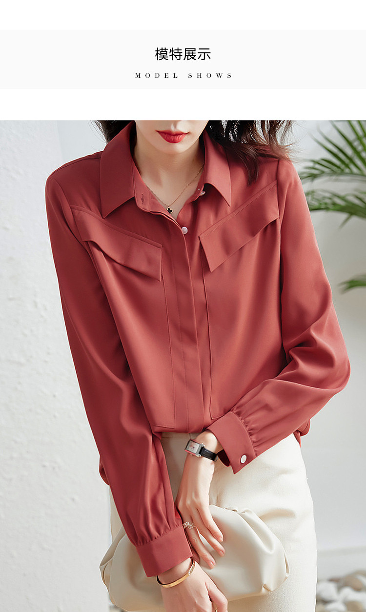 【麻纱雪纺】春秋法式通勤翻领贴袋长袖衬衣女上衣 384193
