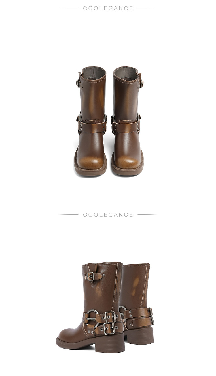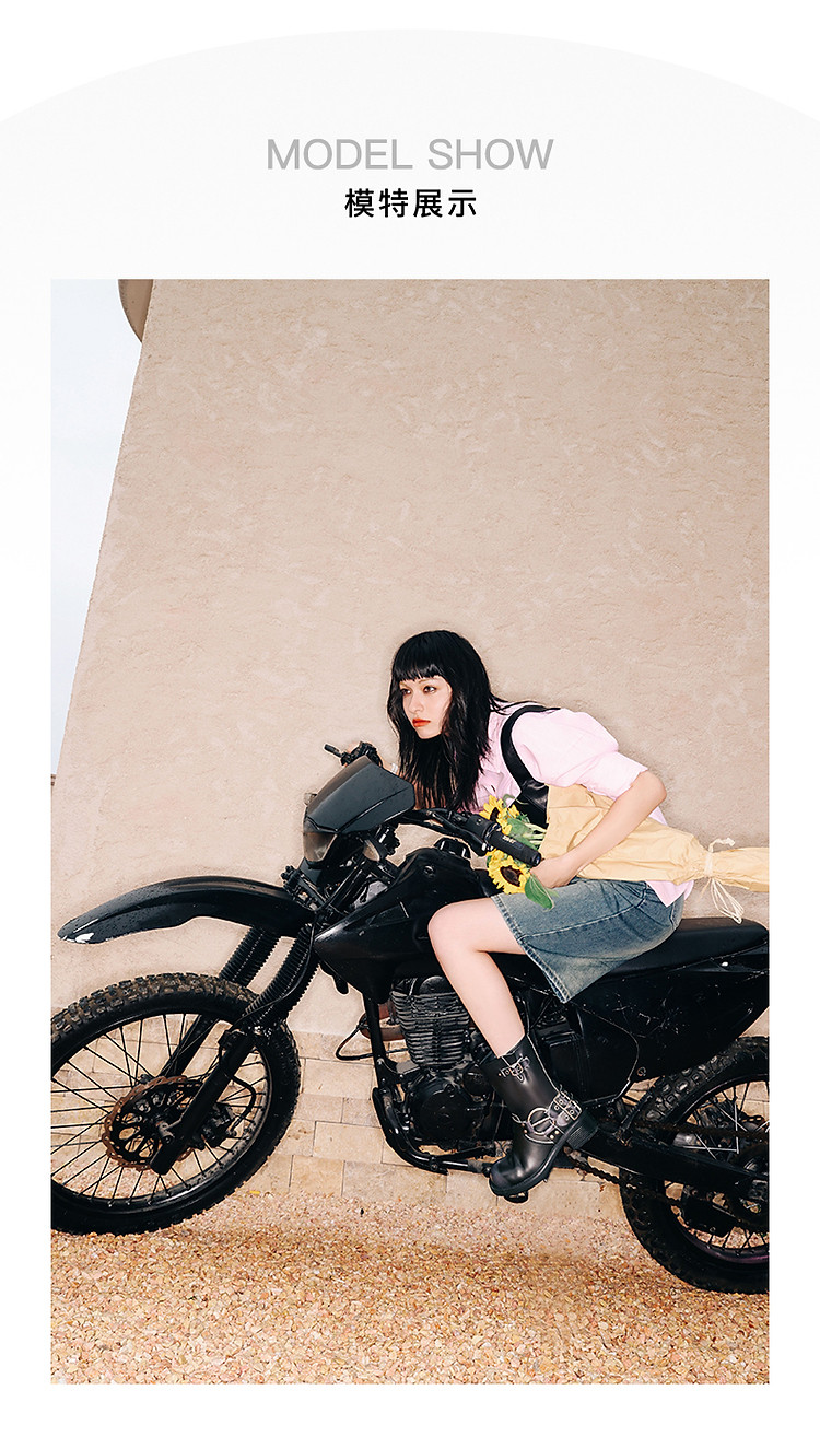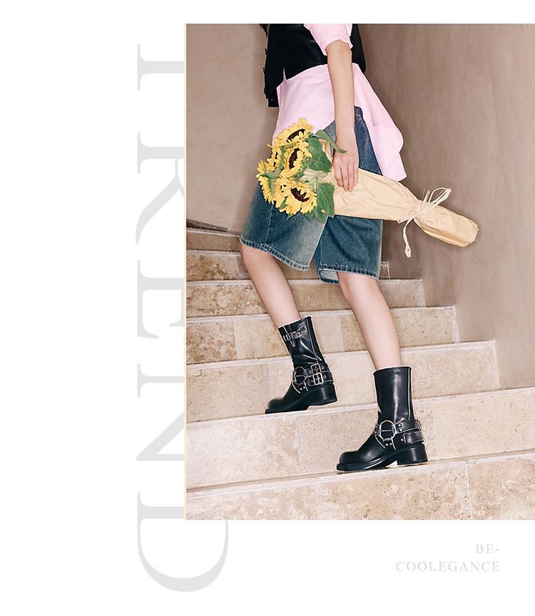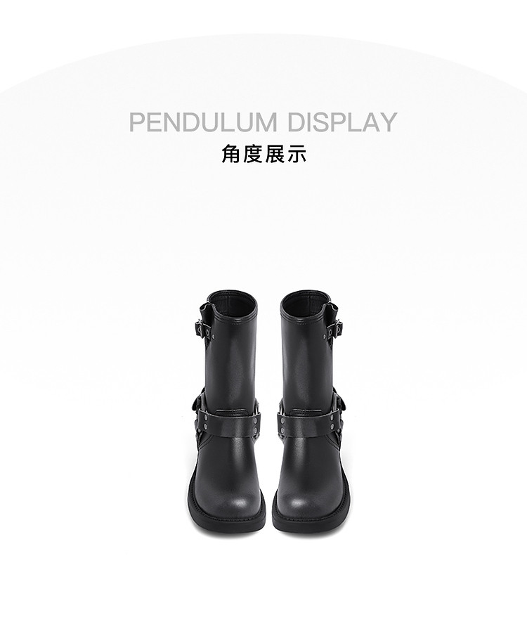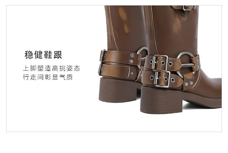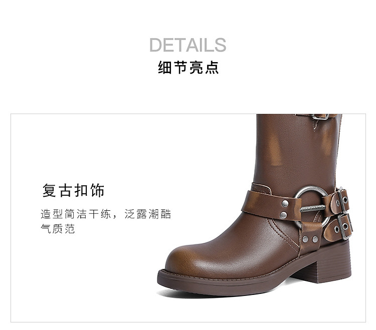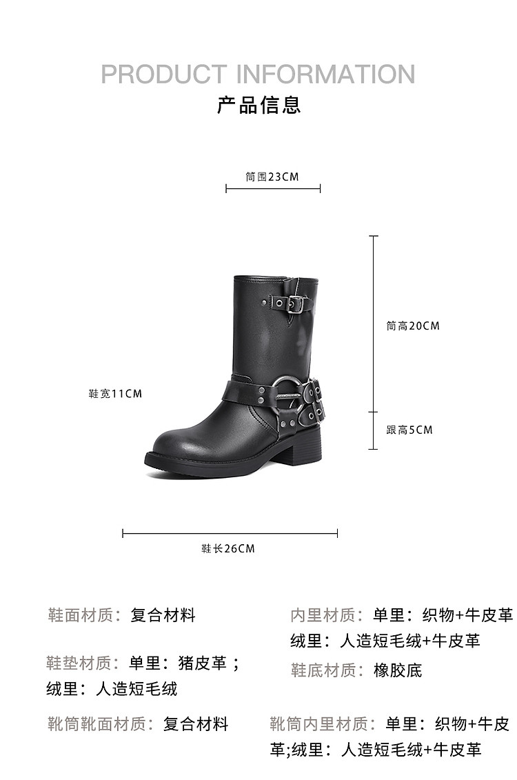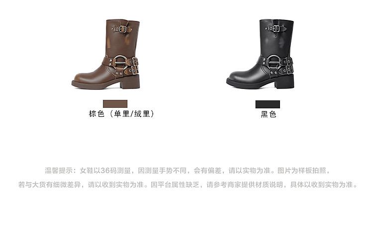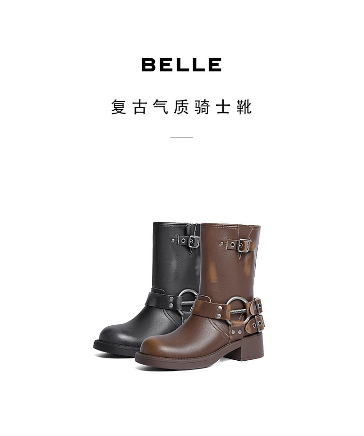 商品名称:百丽机车靴中筒女靴子女冬款加绒美拉德骑士靴西部靴 721946