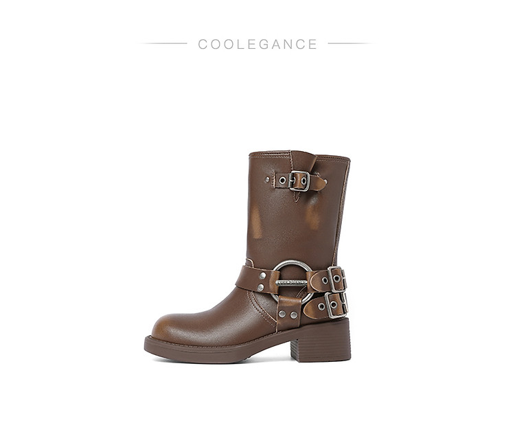 百丽机车靴中筒女靴子女冬款加绒美拉德骑士靴西部靴 721946