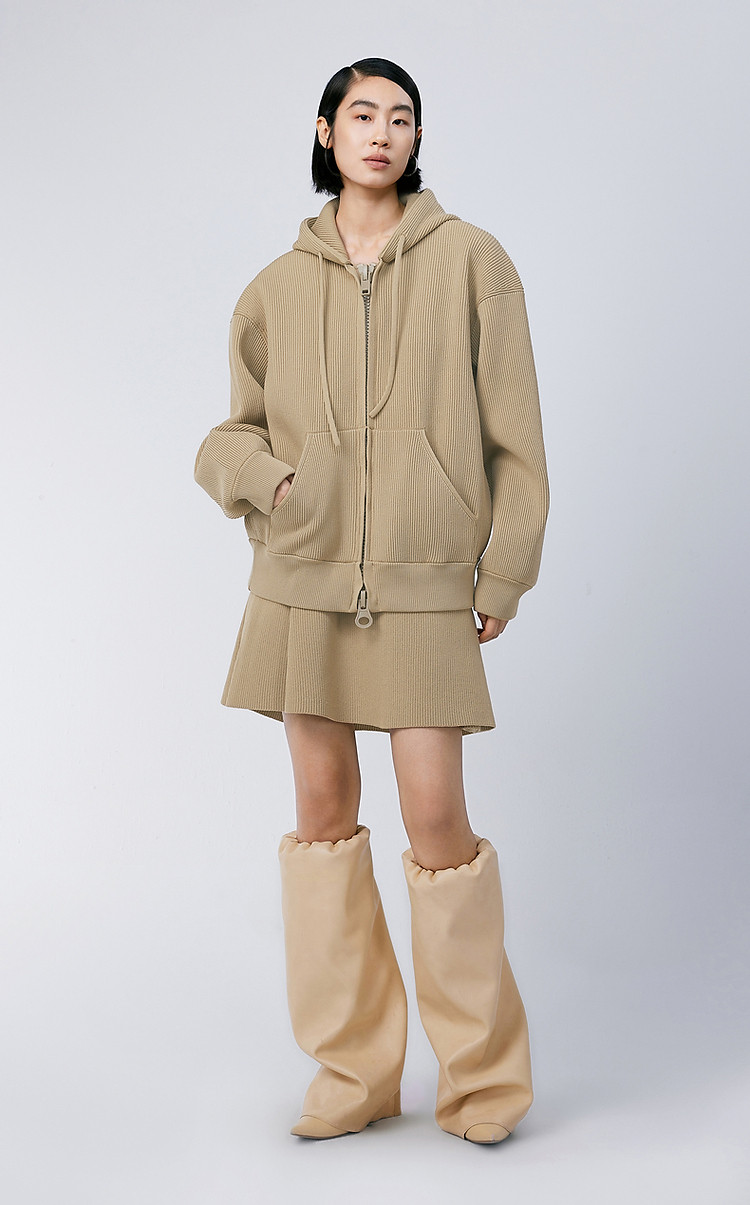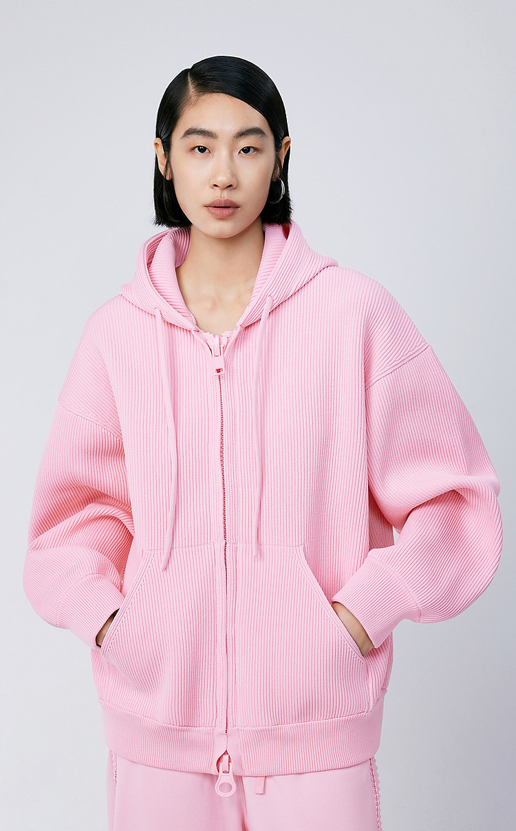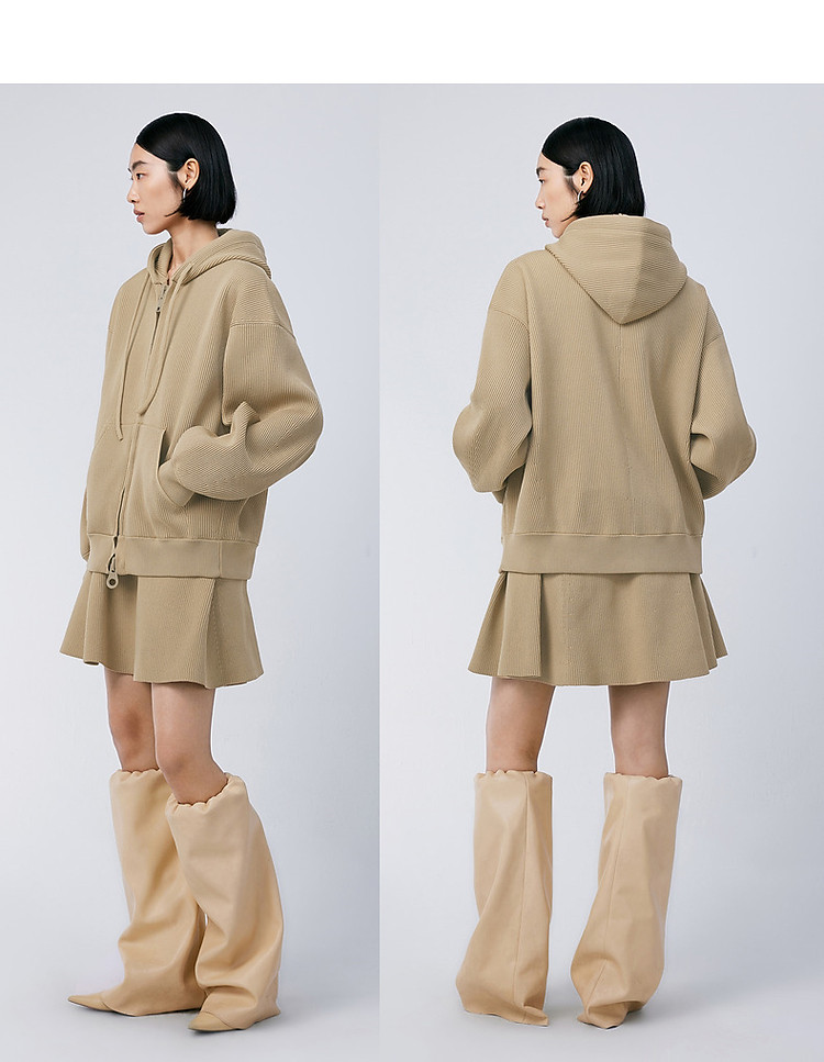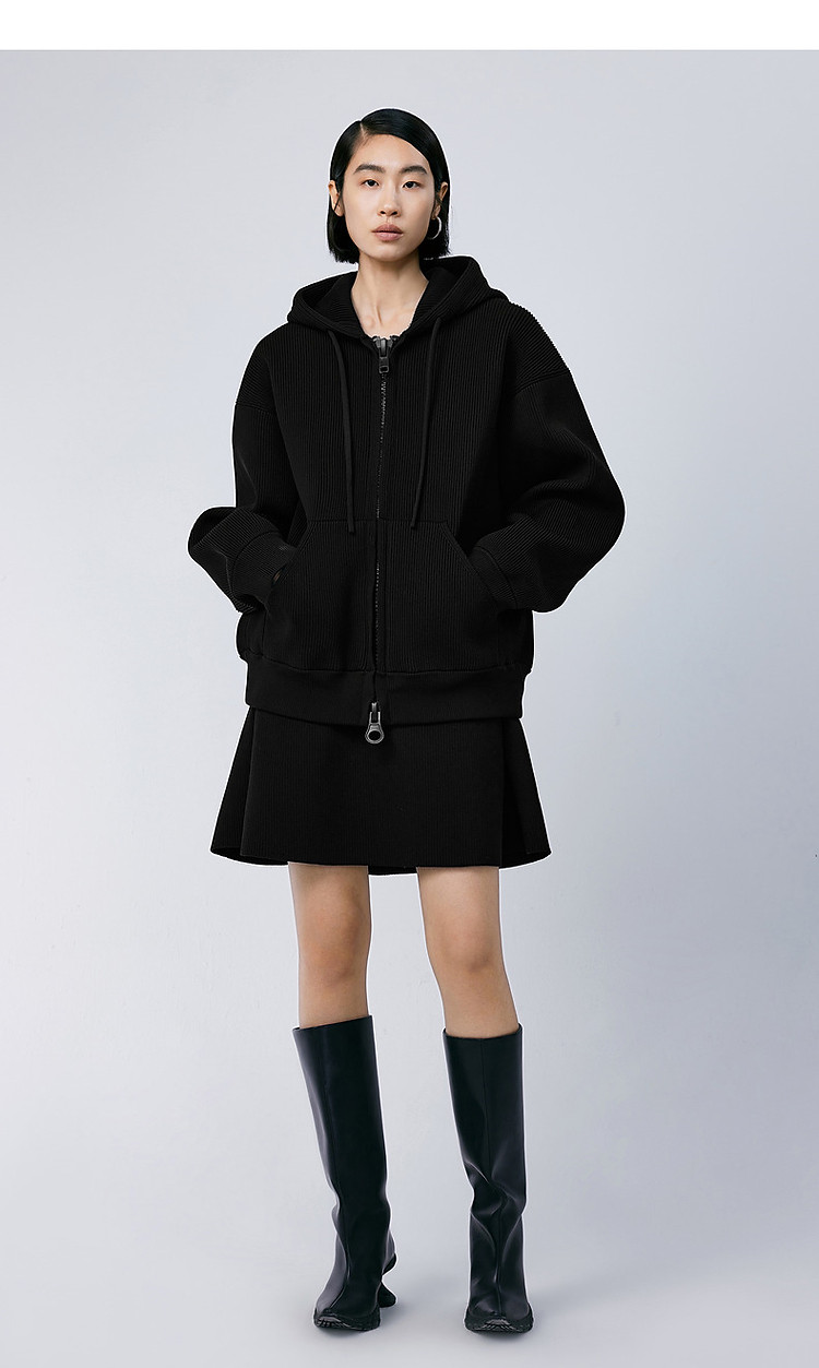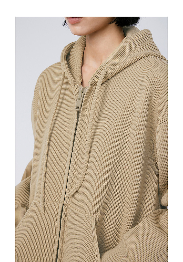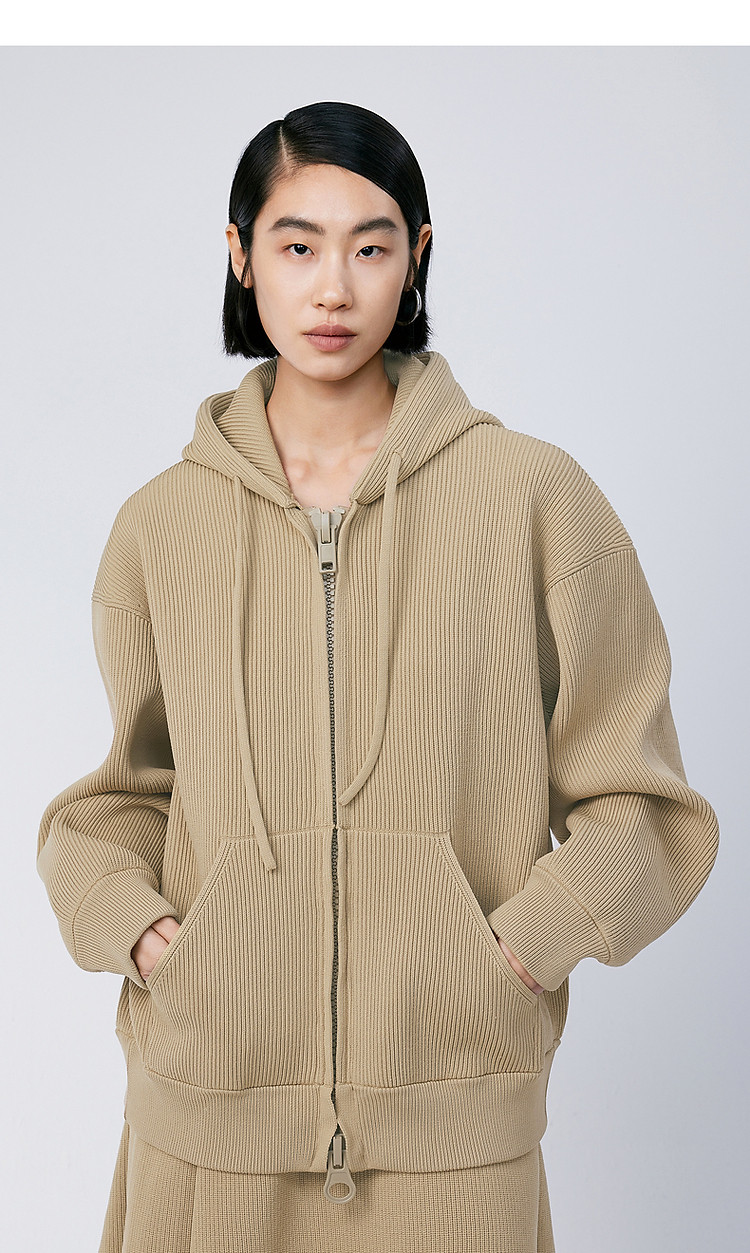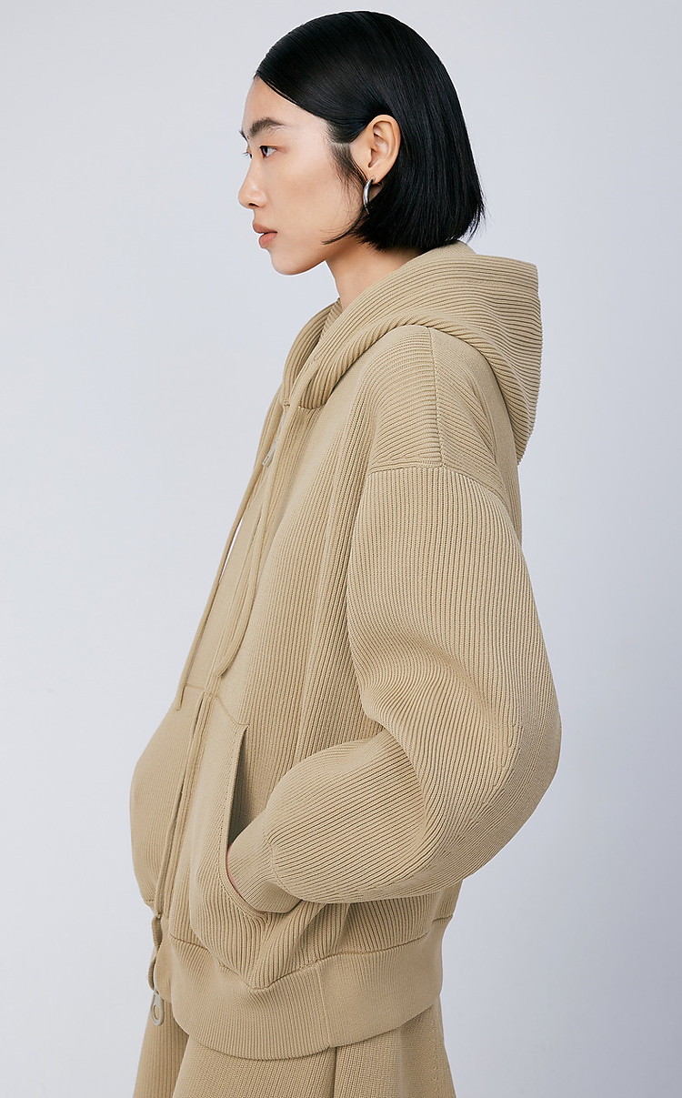 春毛针织衫宽松连帽开襟毛衫女 215499