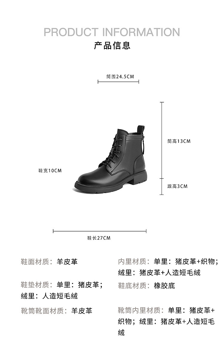 商品名称:百丽美拉德马丁靴女款女靴子显瘦妈妈鞋加绒可选短筒靴子 498522