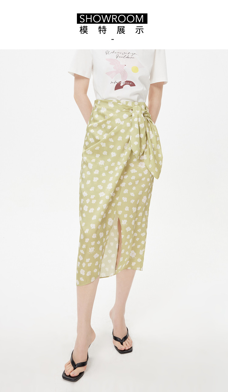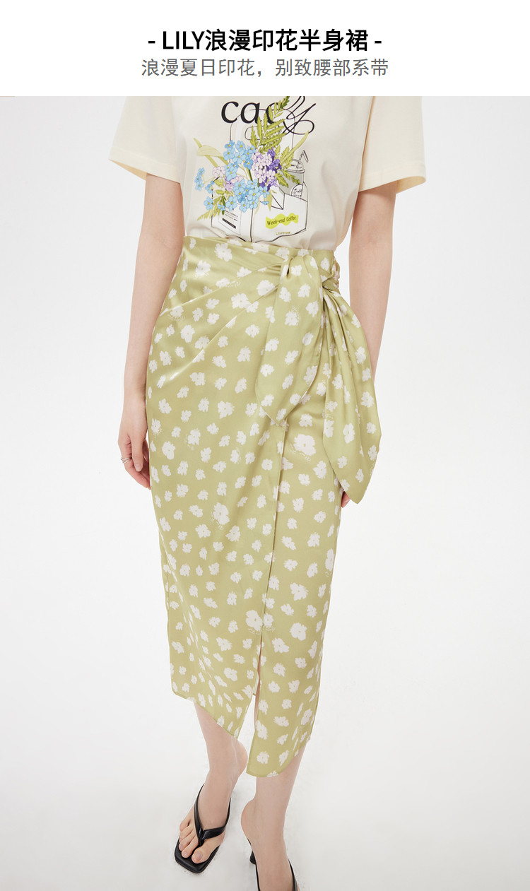 【薄荷曼波】夏季浪漫印花时尚通勤优雅一片式高腰款包臀半身裙 792411