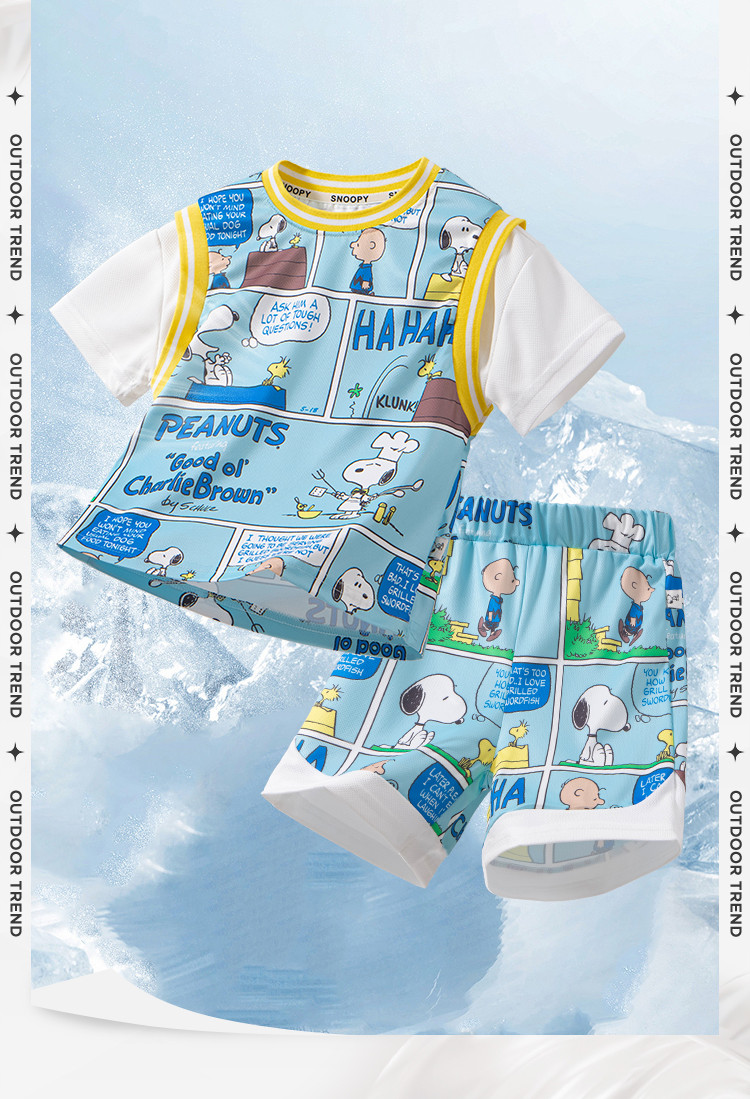 【运动透气短袖套装】儿童夏日轻薄动漫满印短袖短裤套装男童套装 039640