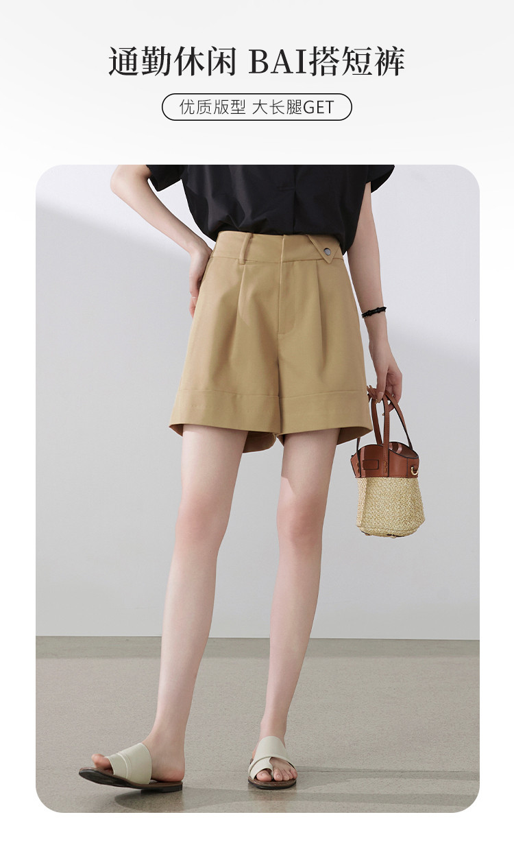 【日常通勤】小众设计感高腰a字宽裤脚显瘦美拉德风西装短裤 947201